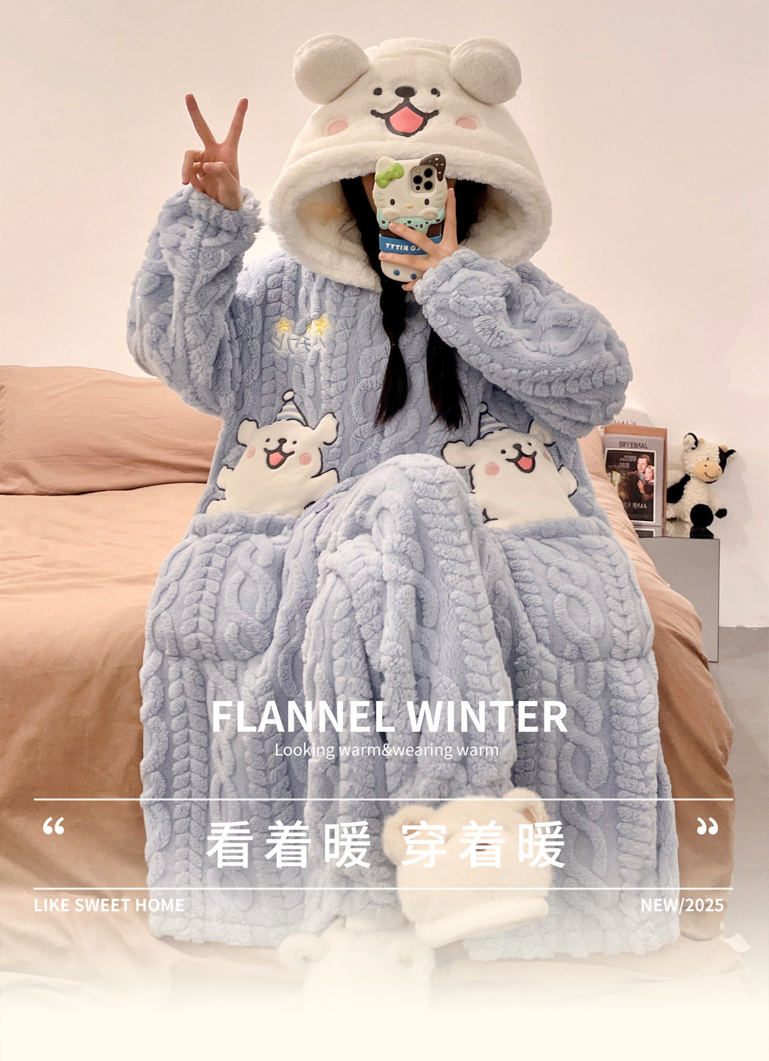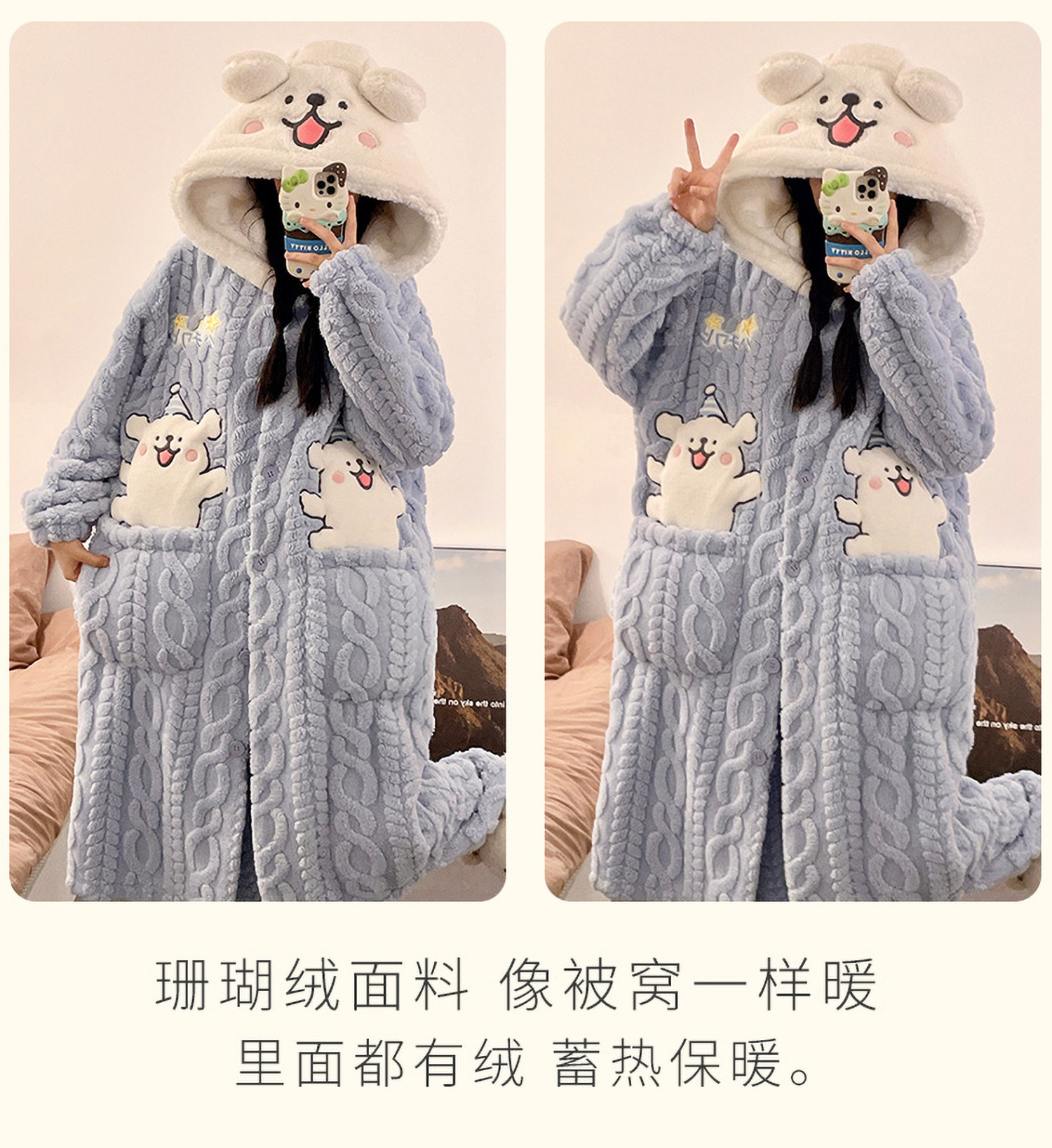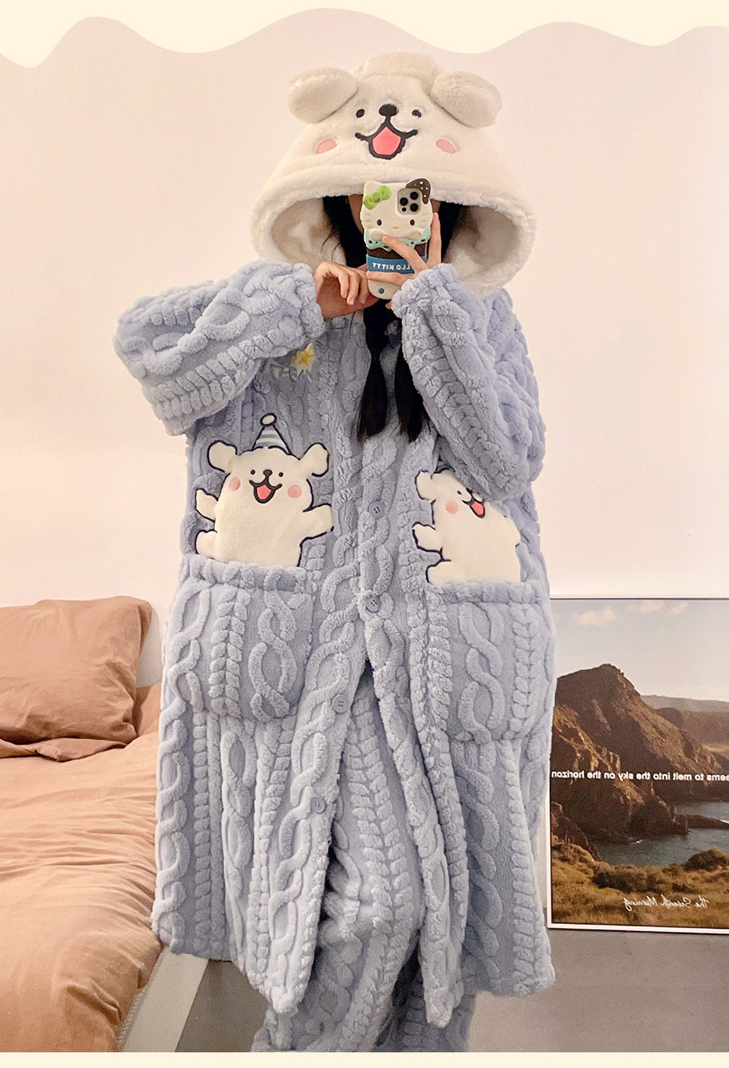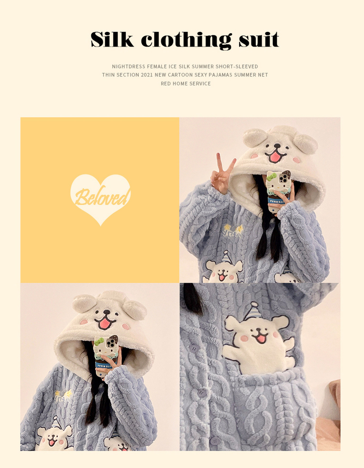 2025 neue Pyjamas Linie Welpen Pyjamas Abdeckung frauen Korallen Fleece Verdickt Cartoon Flanell Hause Kleidung Winter