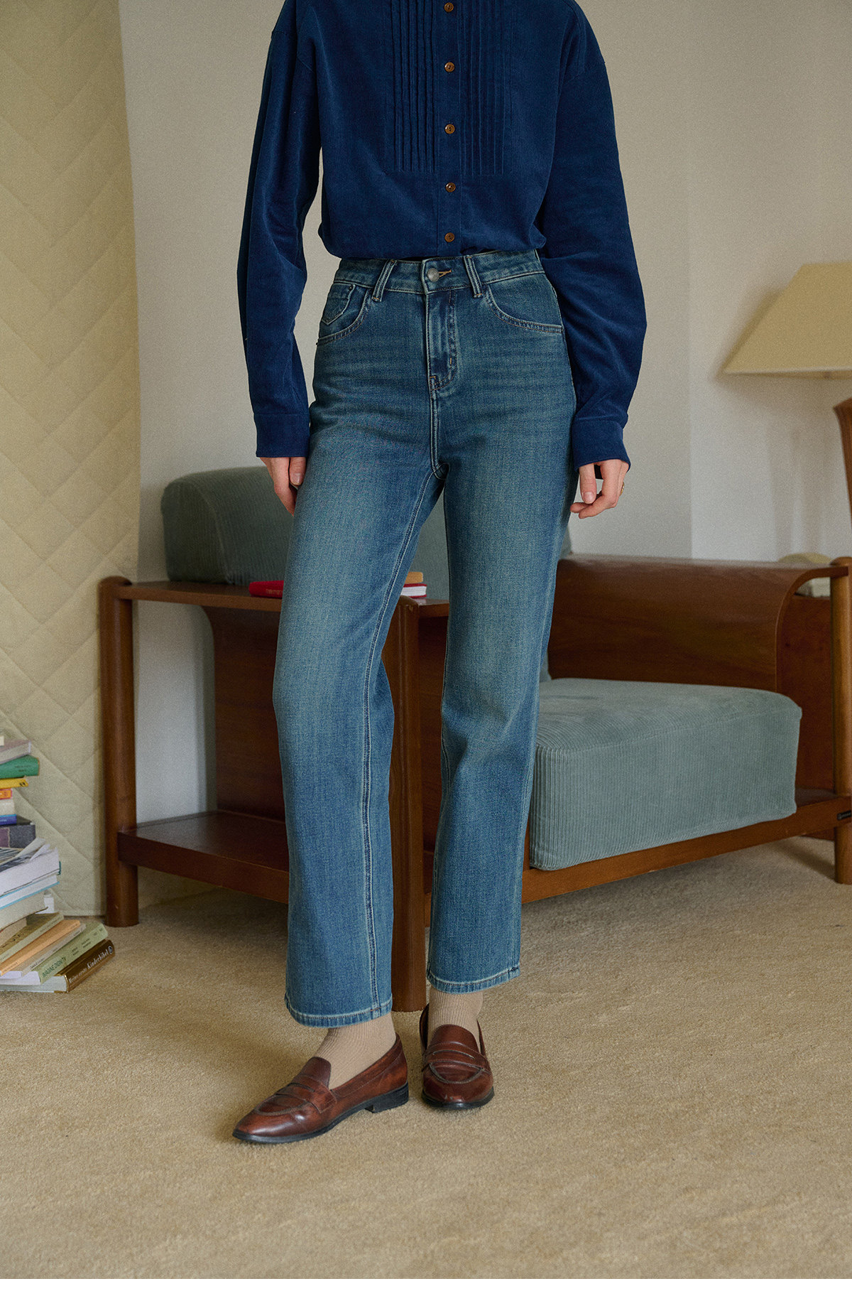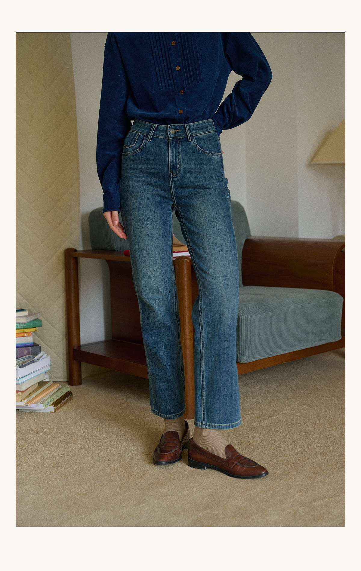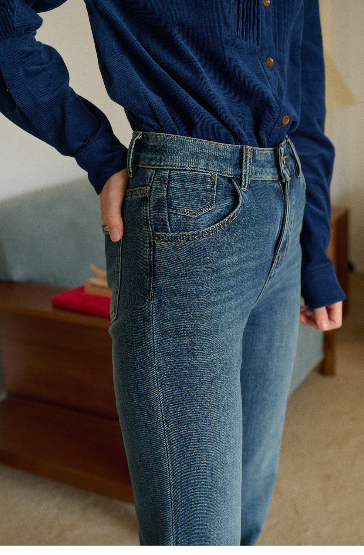 SimpleRetro Moonlight Terrace American Retro Leicht elastische Neun-Punkt-Jeans Damen Small Foot Zigarettenhose Lange Hose