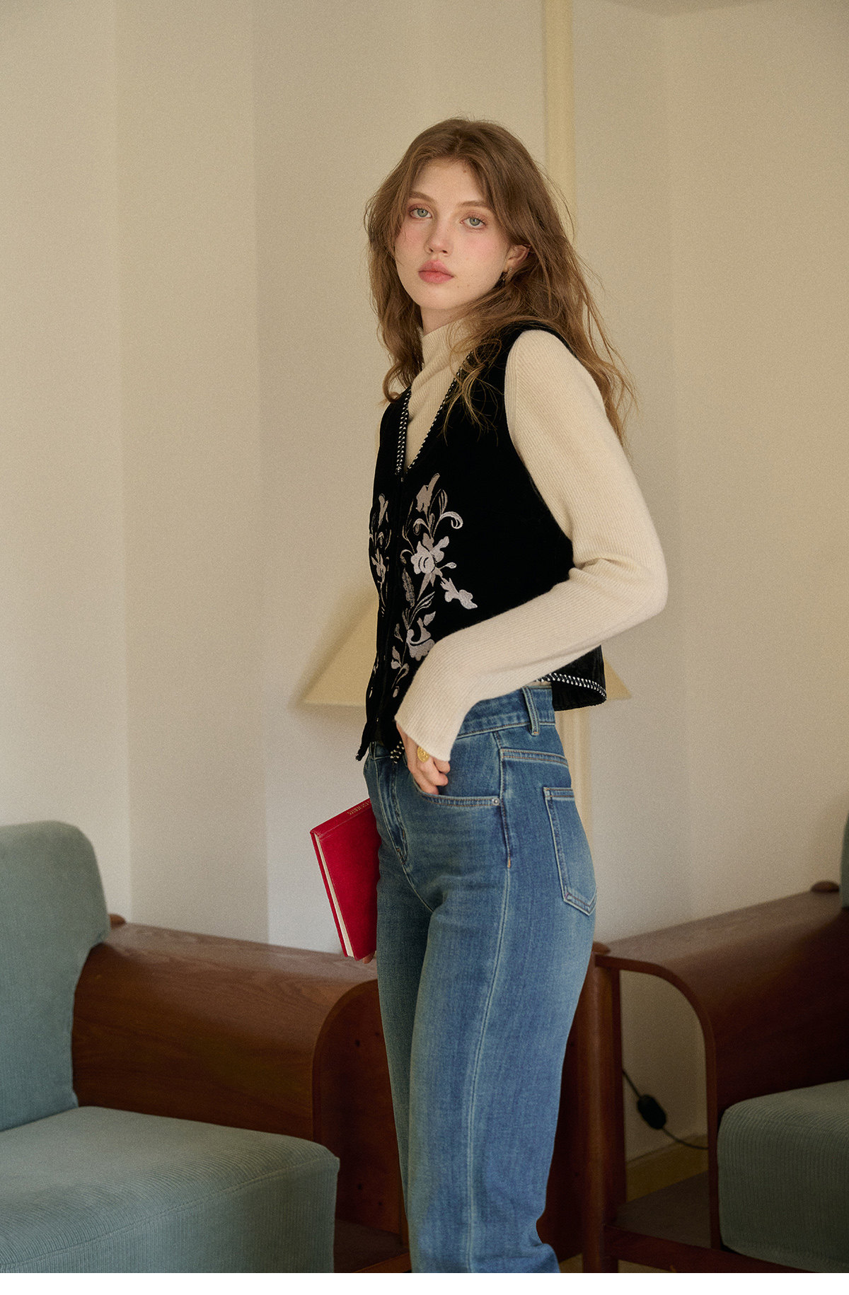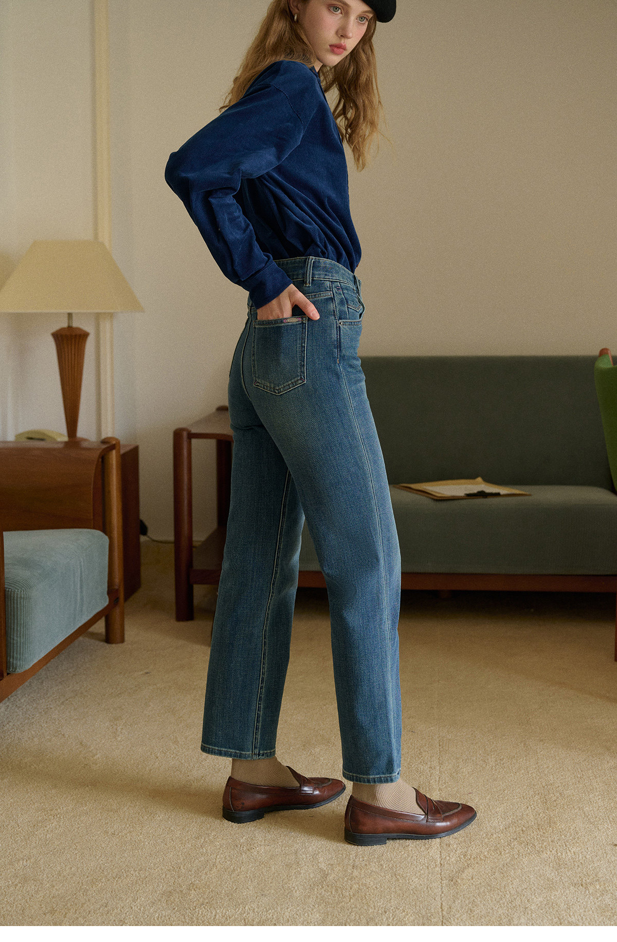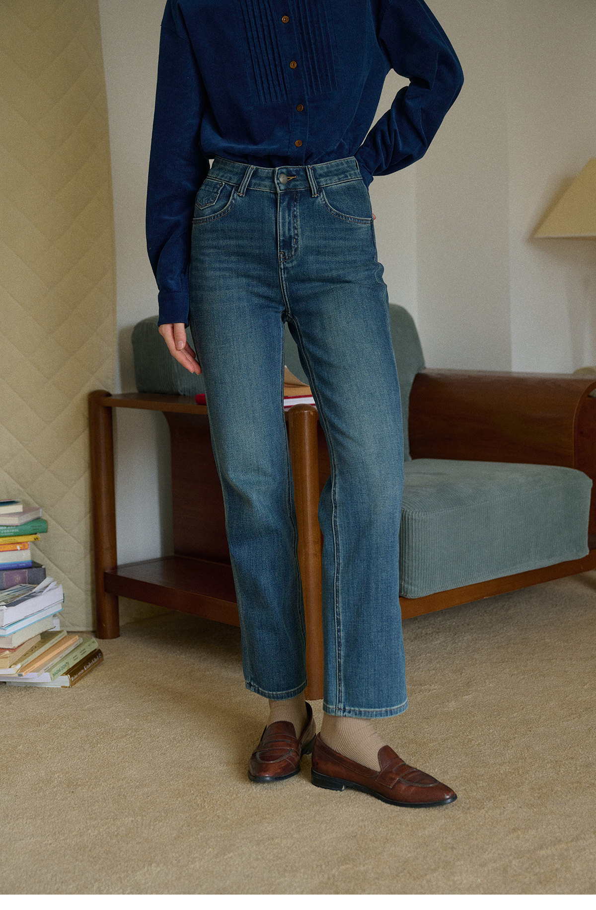 SimpleRetro Moonlight Terrace American Retro Leicht elastische Neun-Punkt-Jeans Damen Small Foot Zigarettenhose Lange Hose