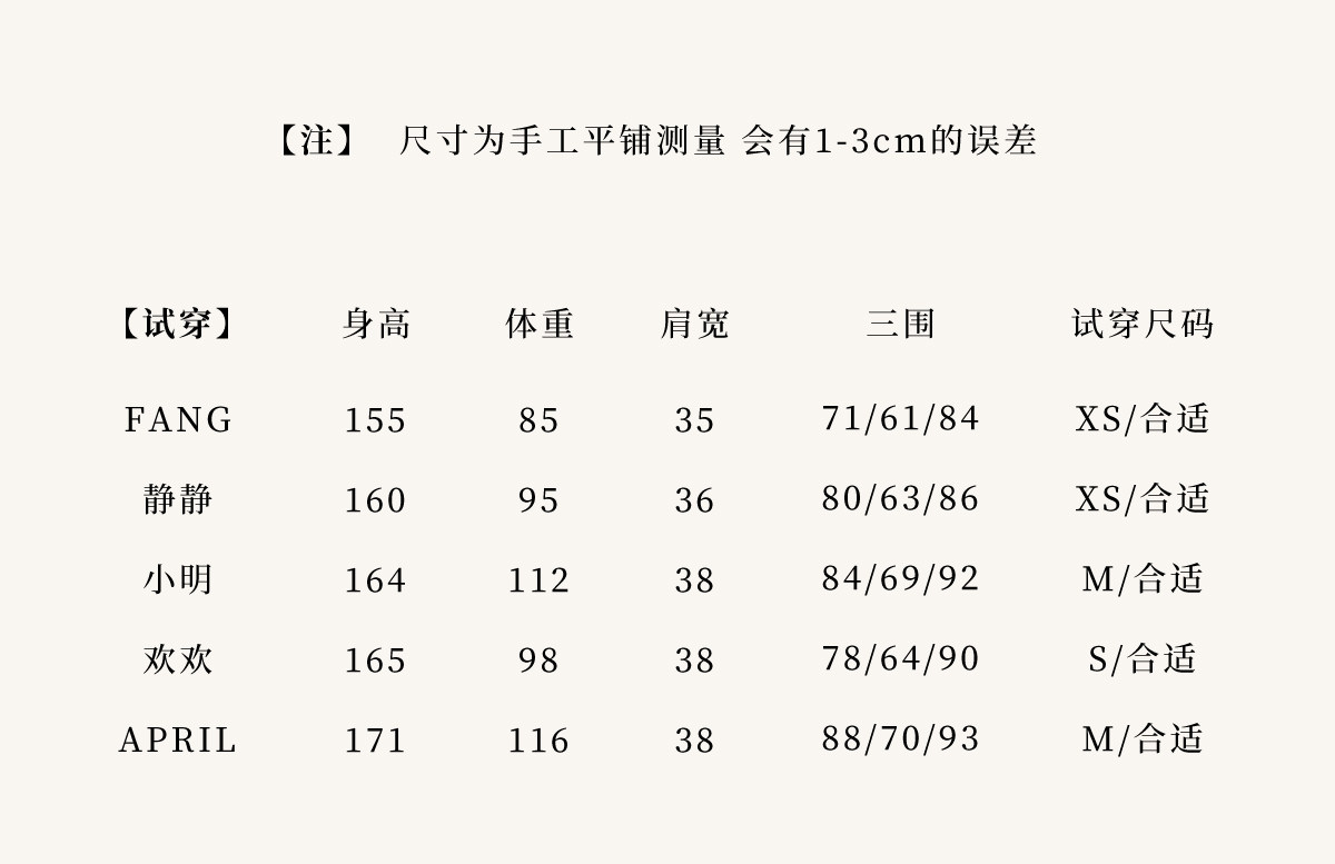 China (cm) 160-165/84-86 165-170 / 88-90 167-172 / 92-96 168-173 / 98-102 170-176 / 106-110