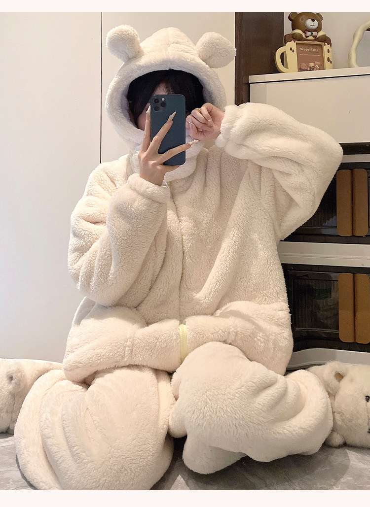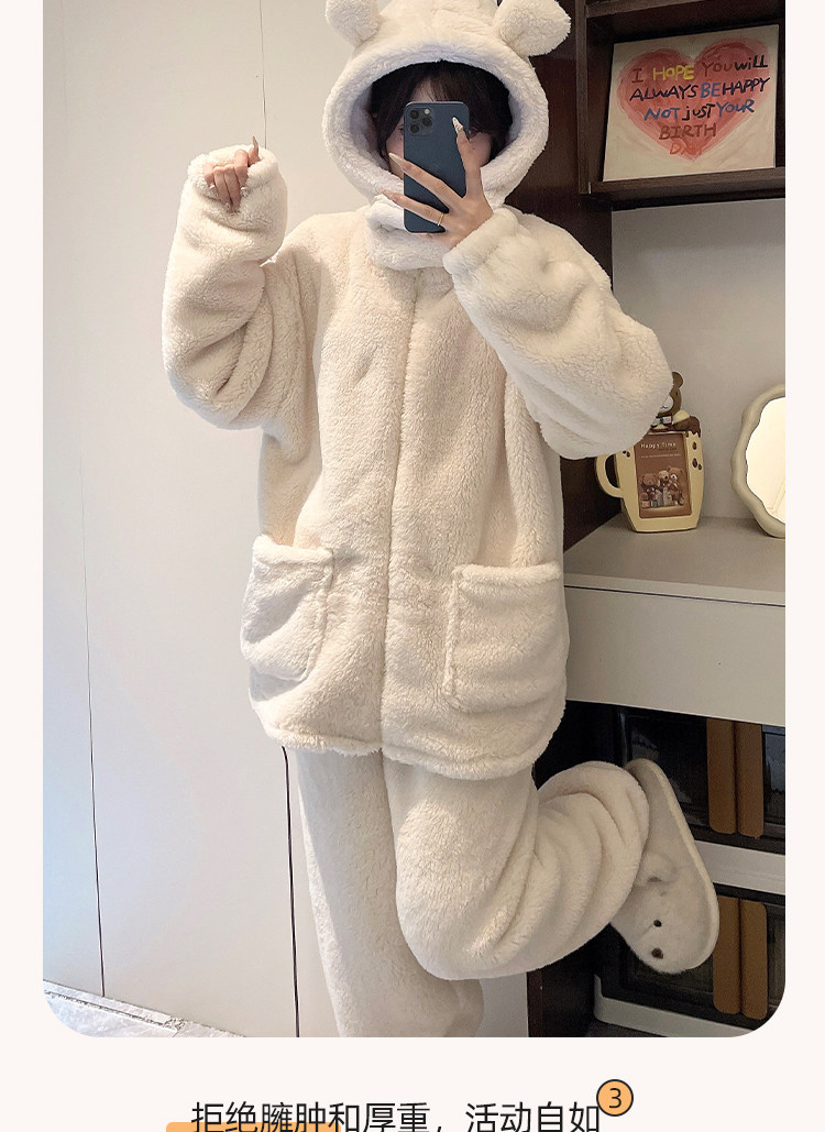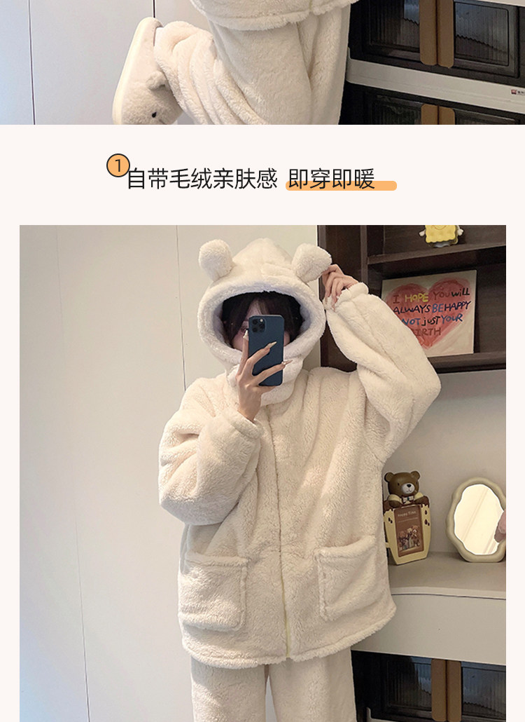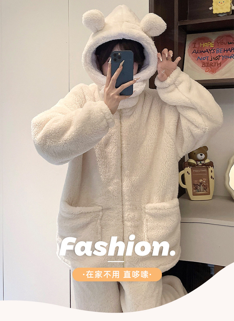 Niedliche Pyjamas aus Korallensamt mit Kapuze für Damen im Herbst und Winter sowie Samt und verdicktes Flanell können außerhalb des Heimkleidungssets im Winter getragen werden