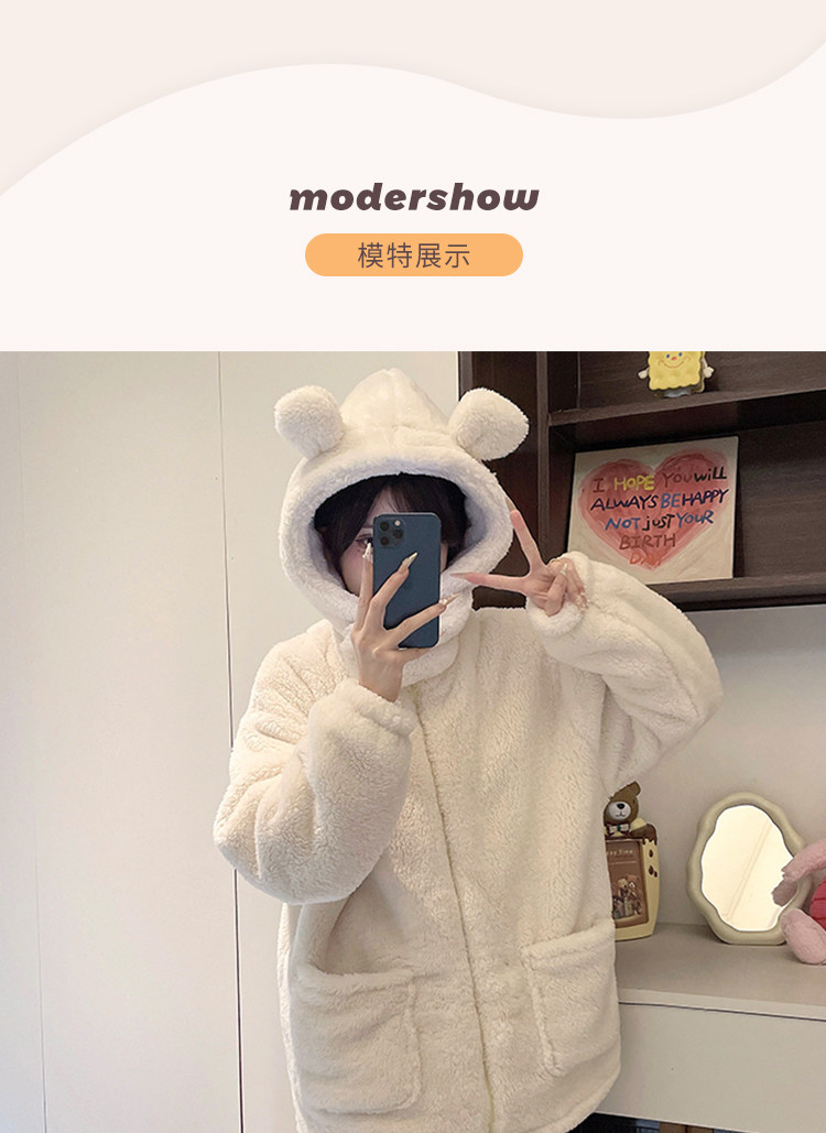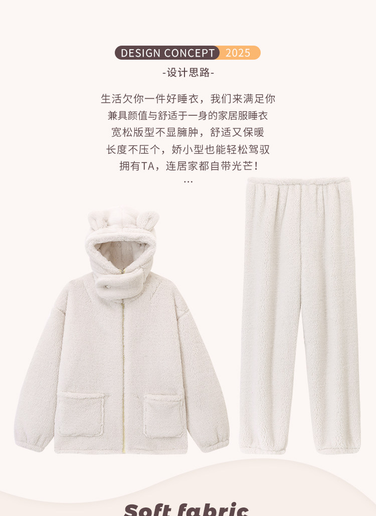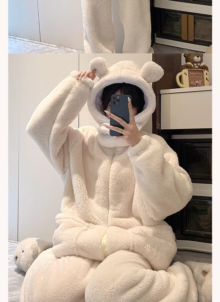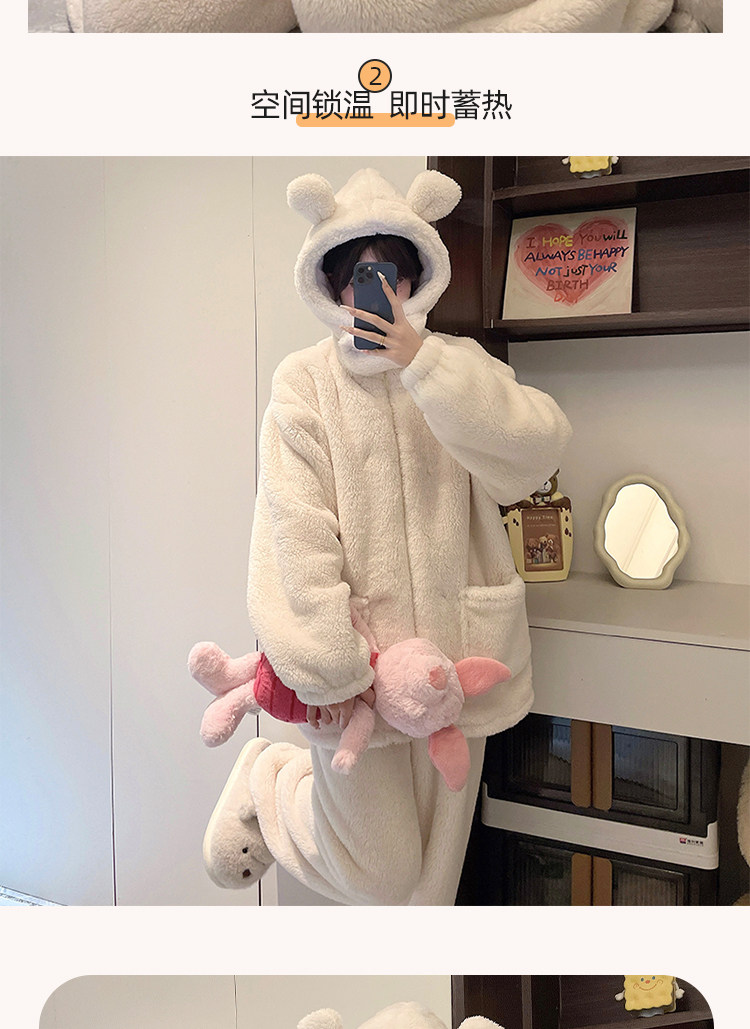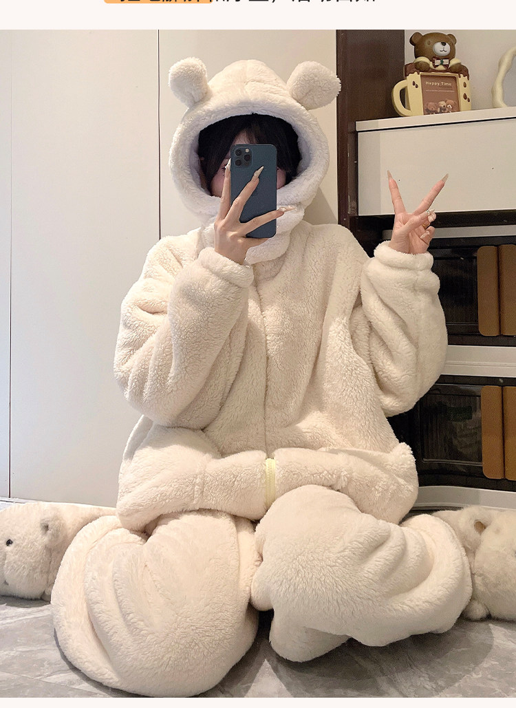 Niedliche Pyjamas aus Korallensamt mit Kapuze für Damen im Herbst und Winter sowie Samt und verdicktes Flanell können außerhalb des Heimkleidungssets im Winter getragen werden
