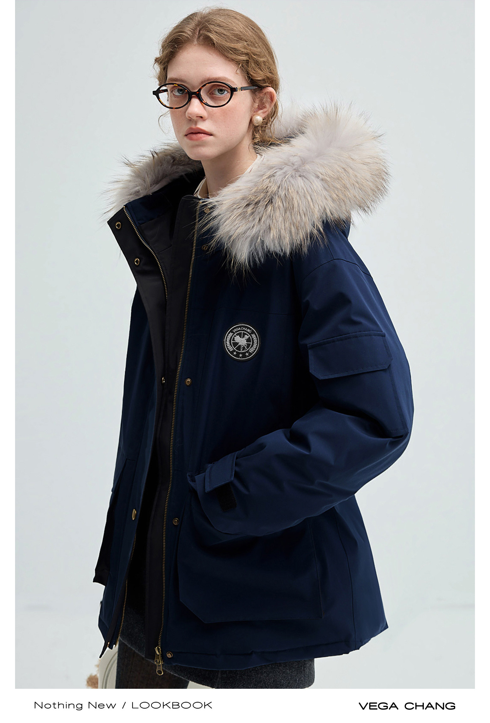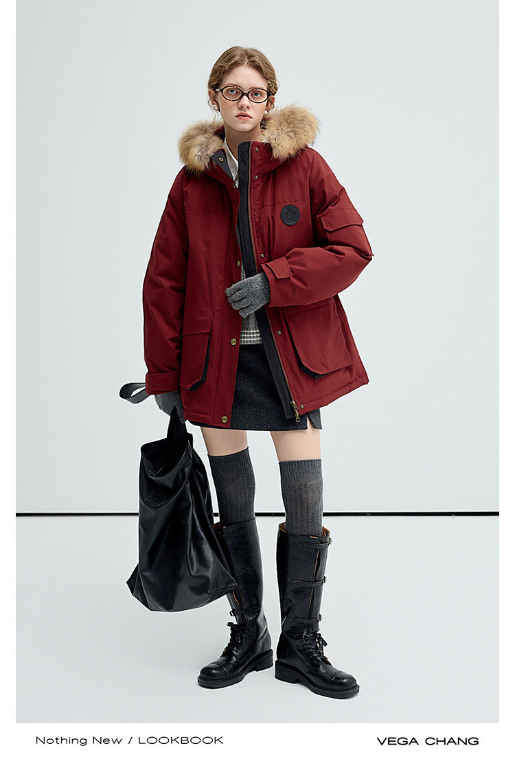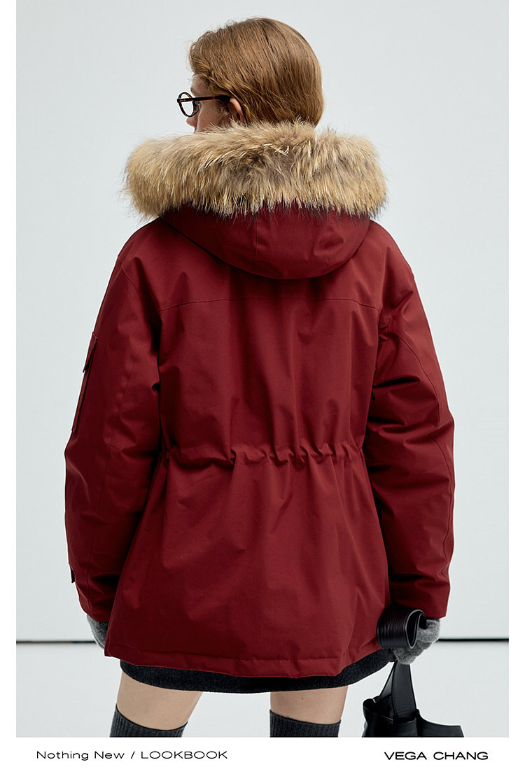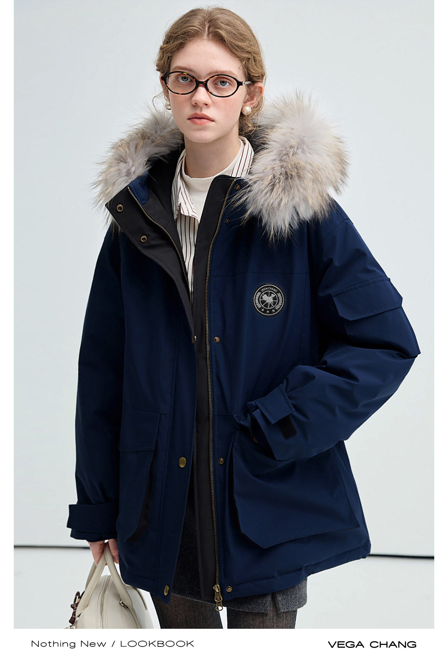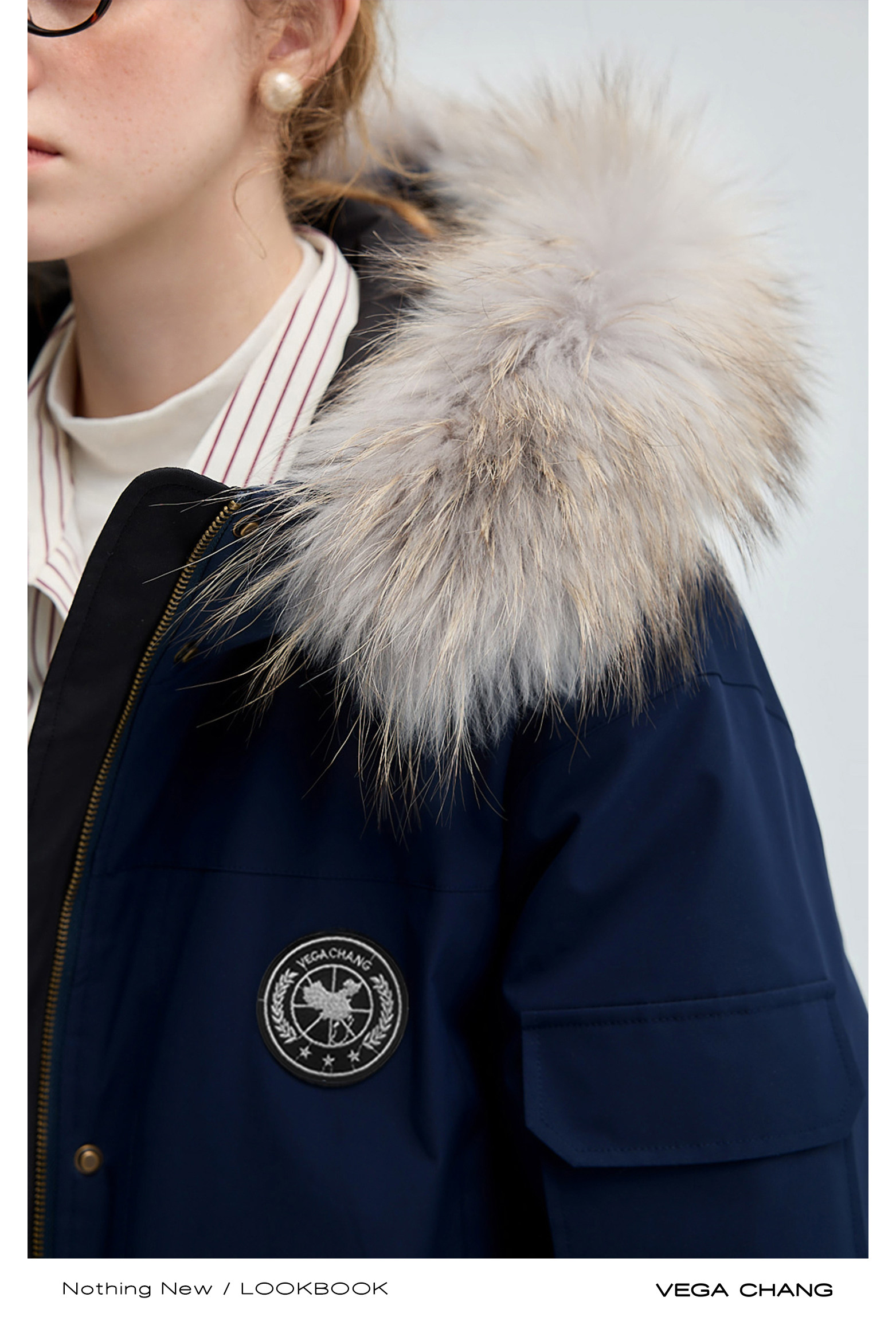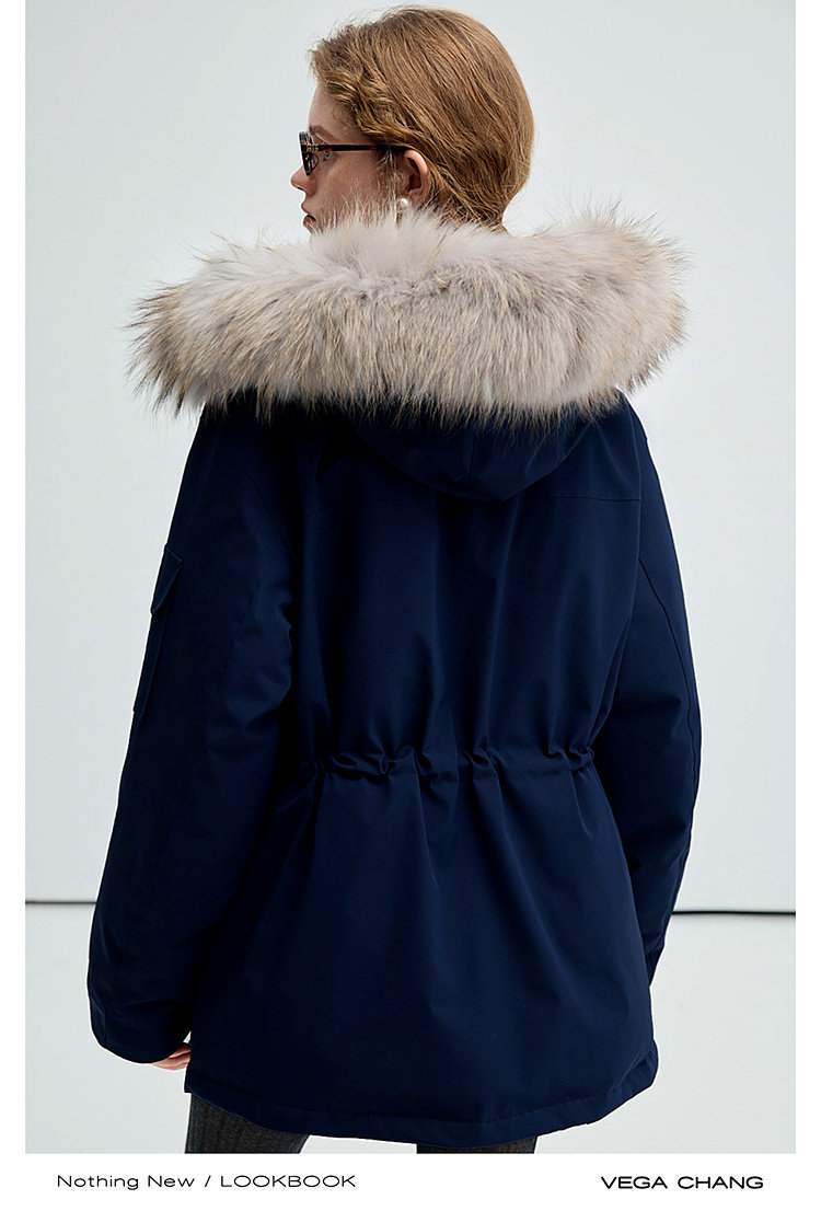 VEGA CHANG Anxin Velvet Workwear Parka Down Jacket Mujer Pelo De Mapache Chaqueta De Tela De Tres Pruebas