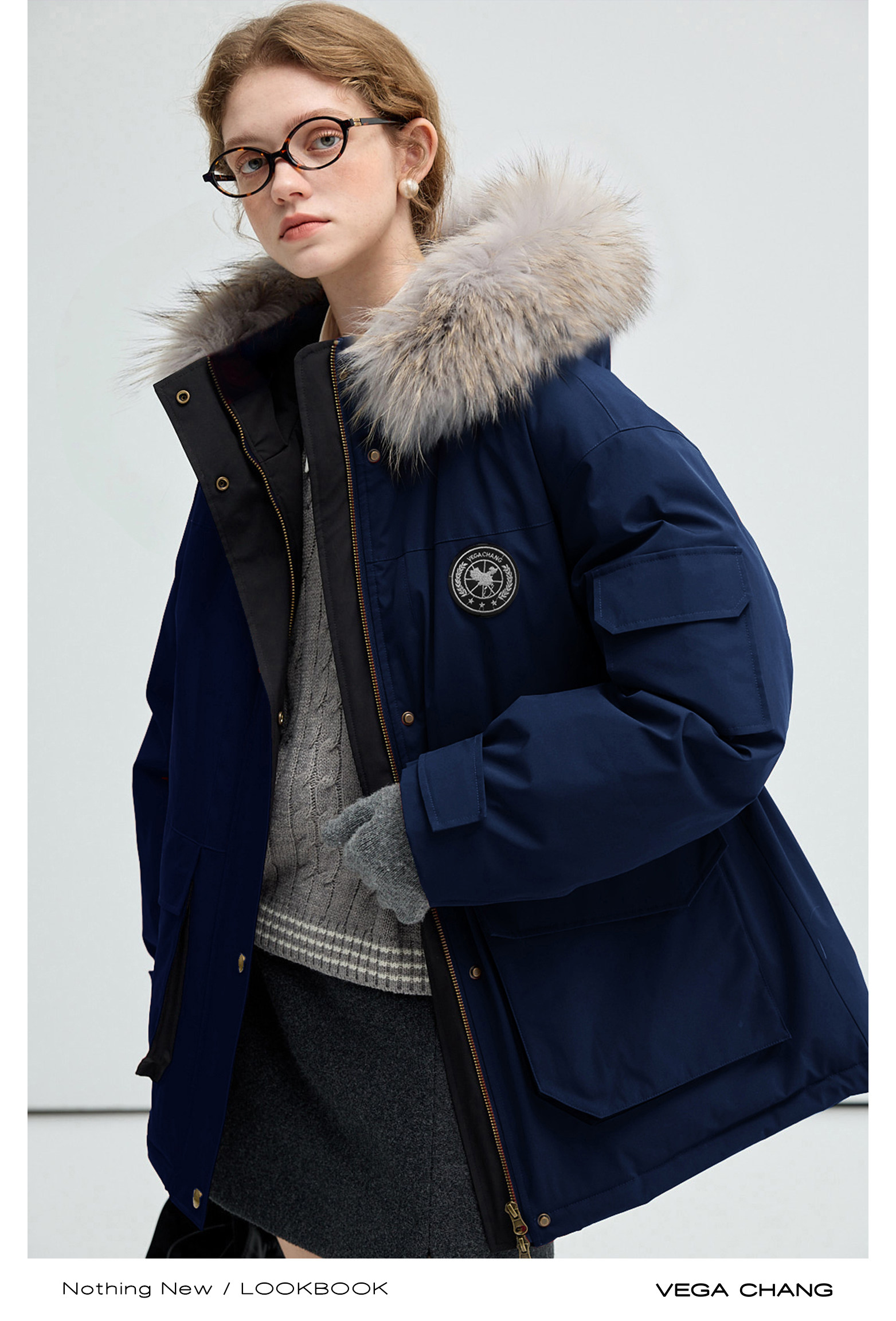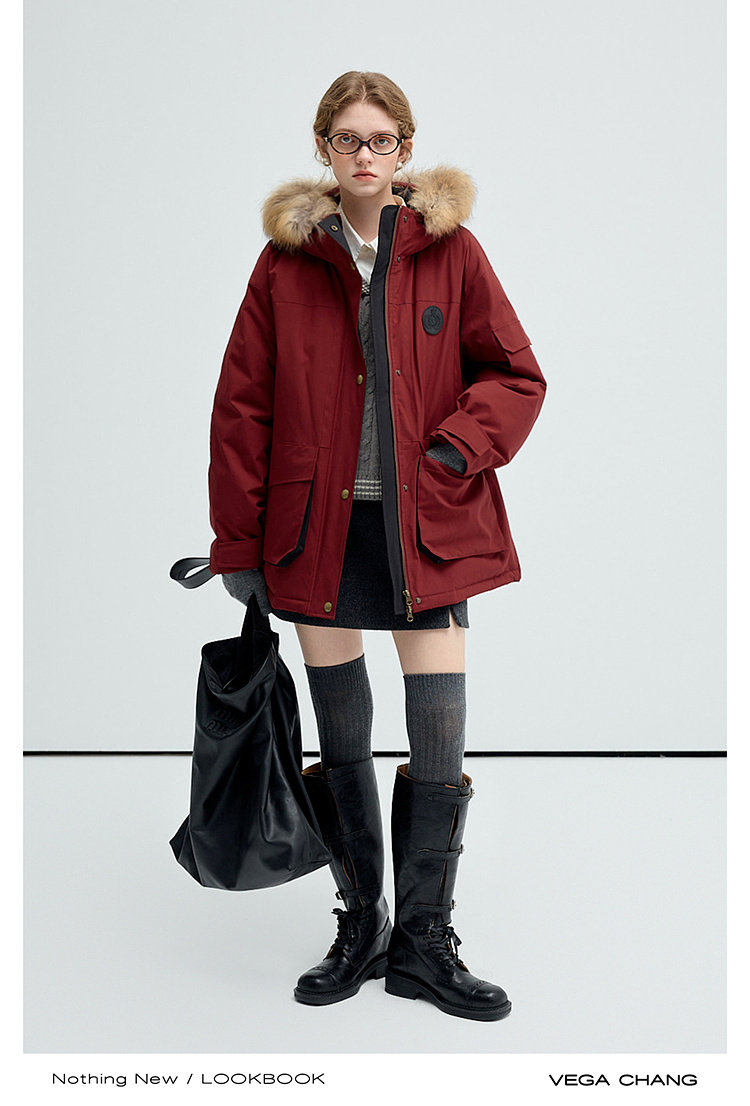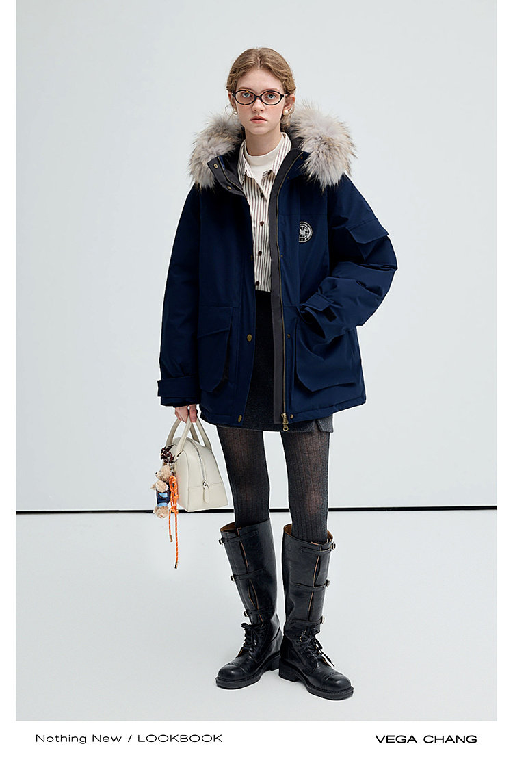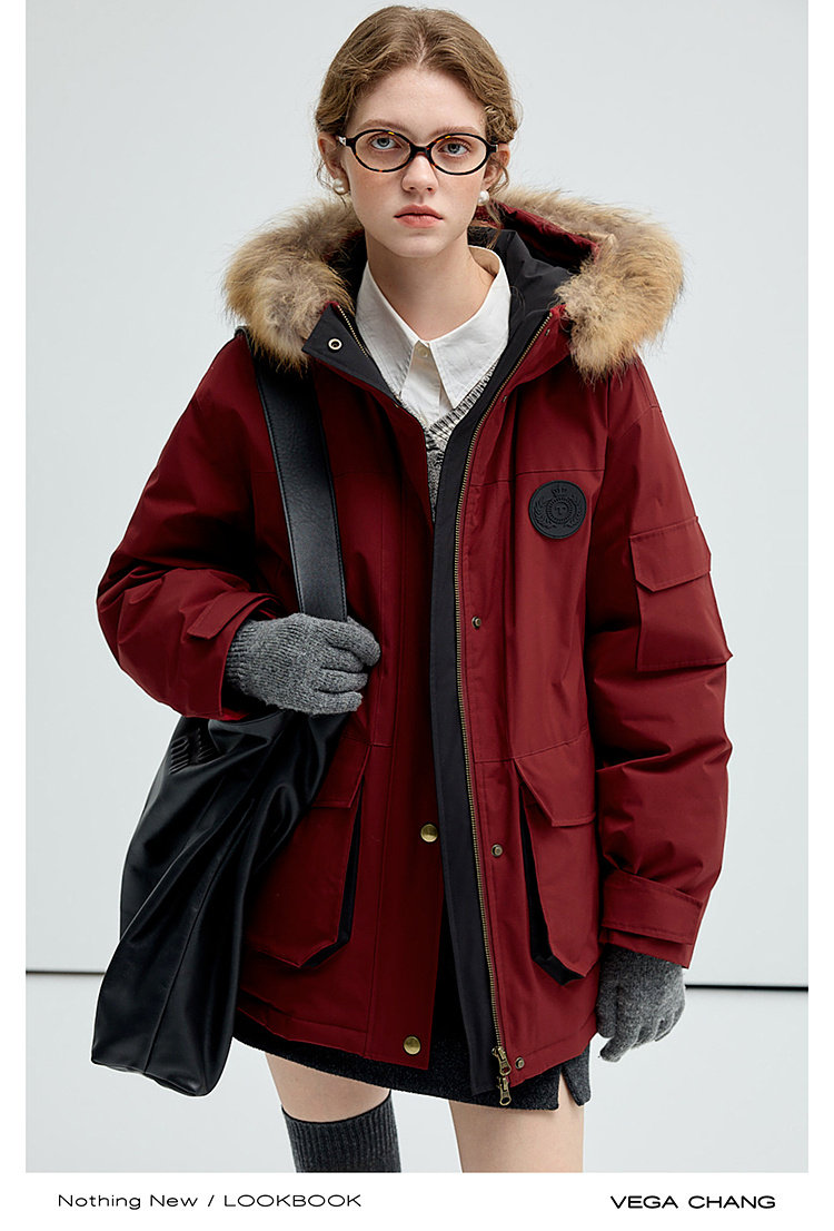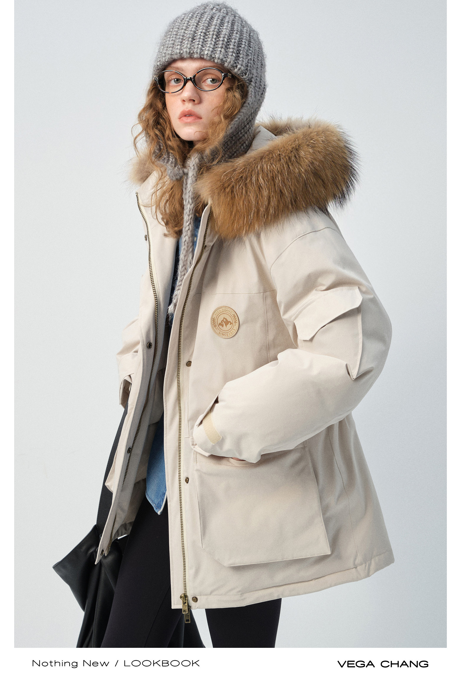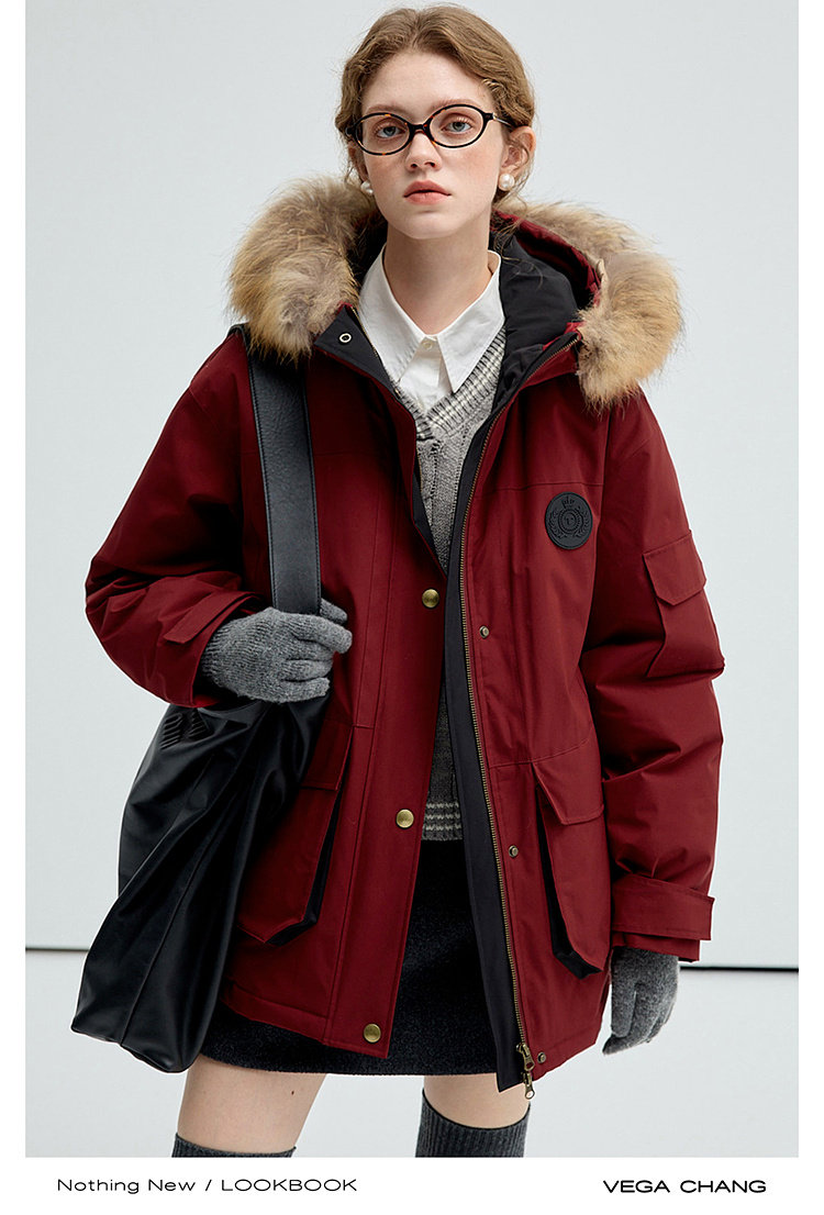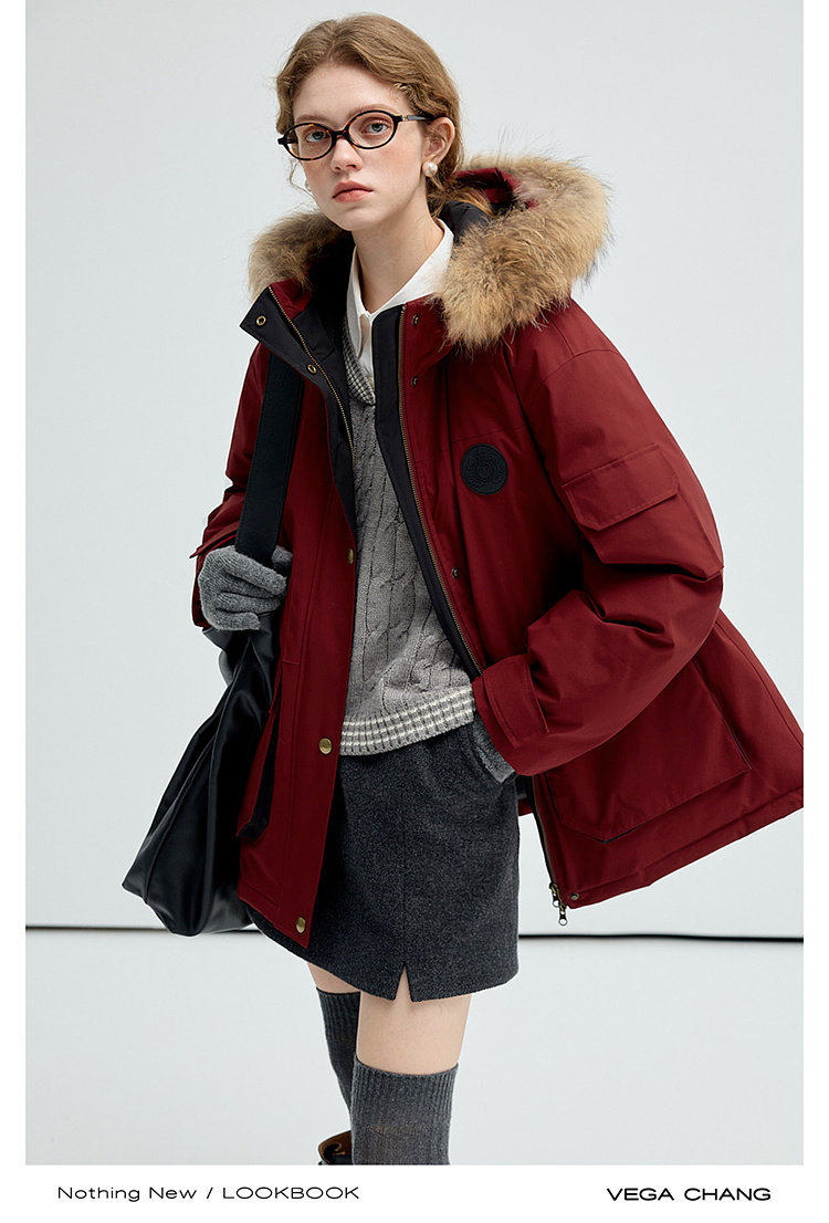 VEGA CHANG Anxin Velvet Workwear Parka Down Jacket Mujer Pelo De Mapache Chaqueta De Tela De Tres Pruebas