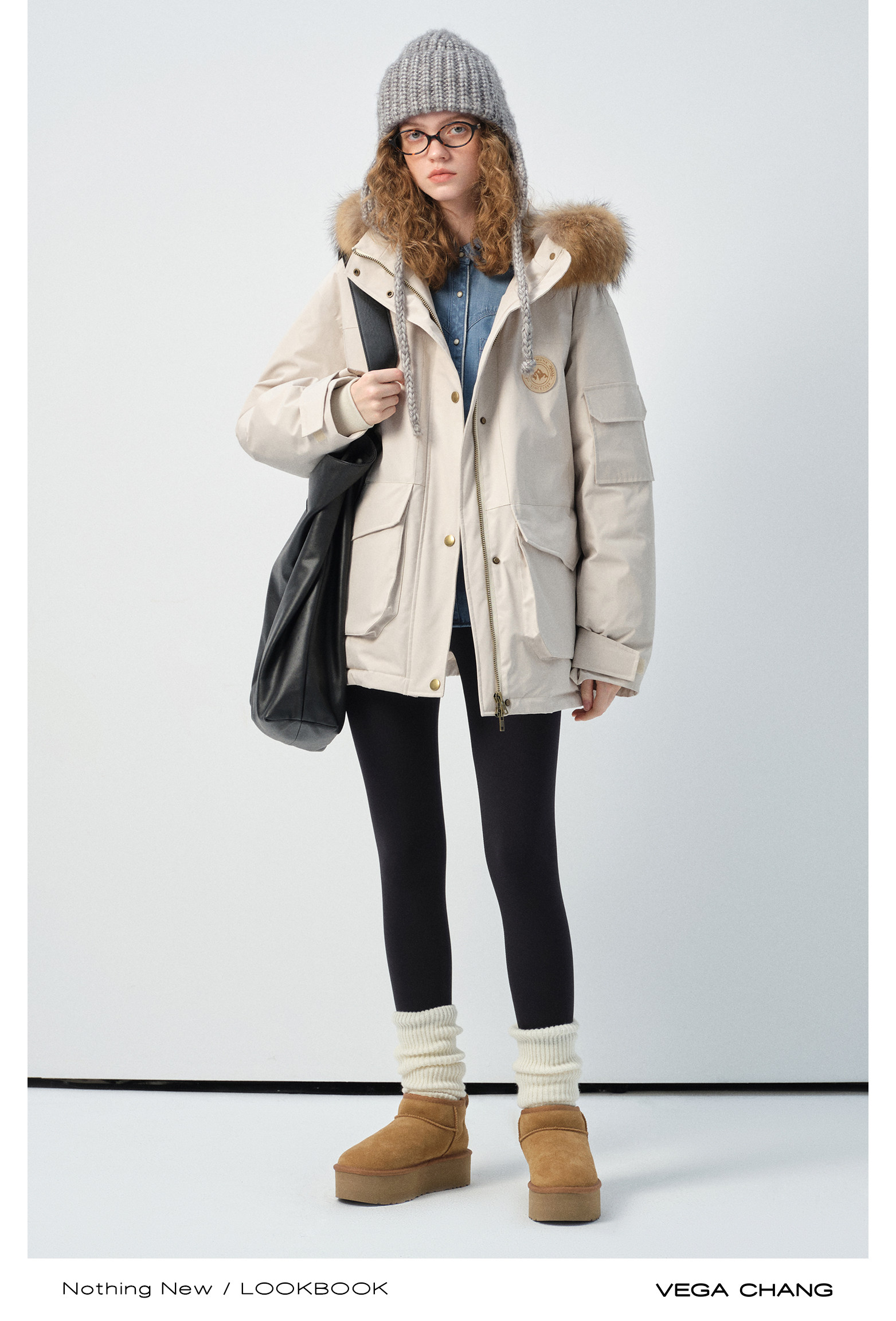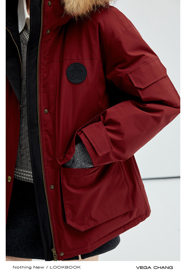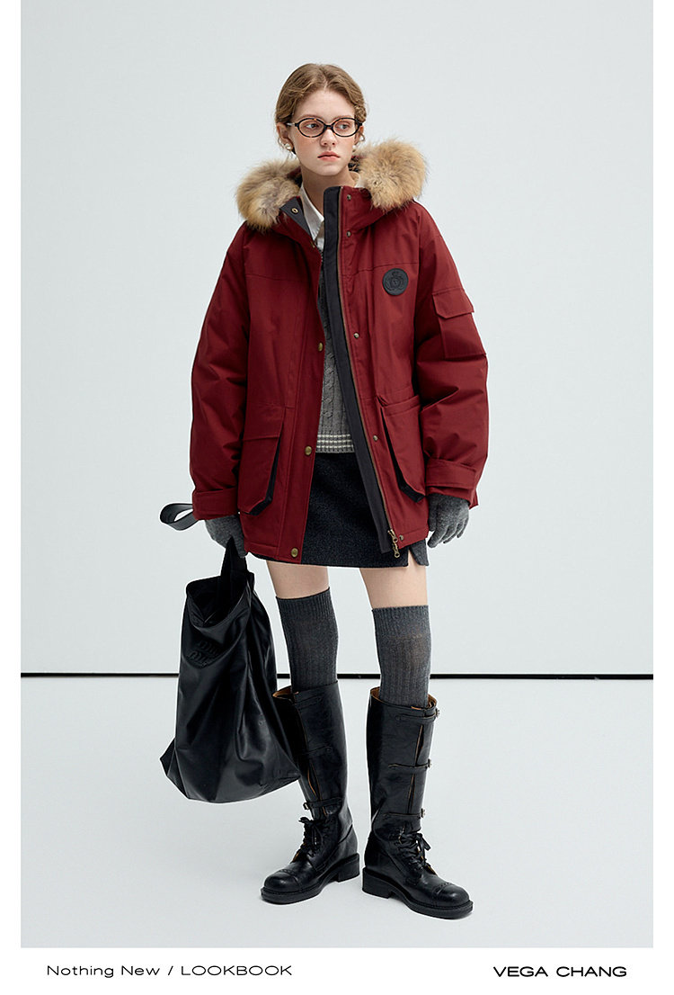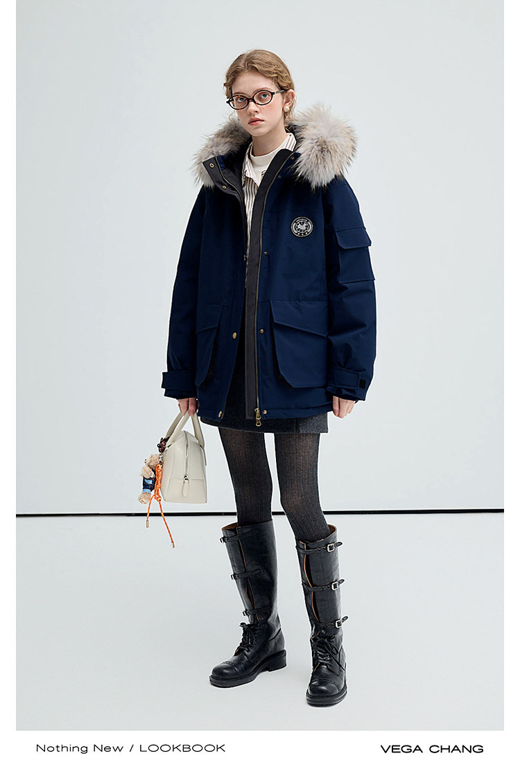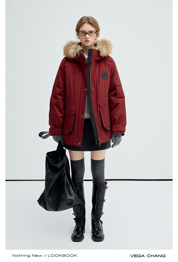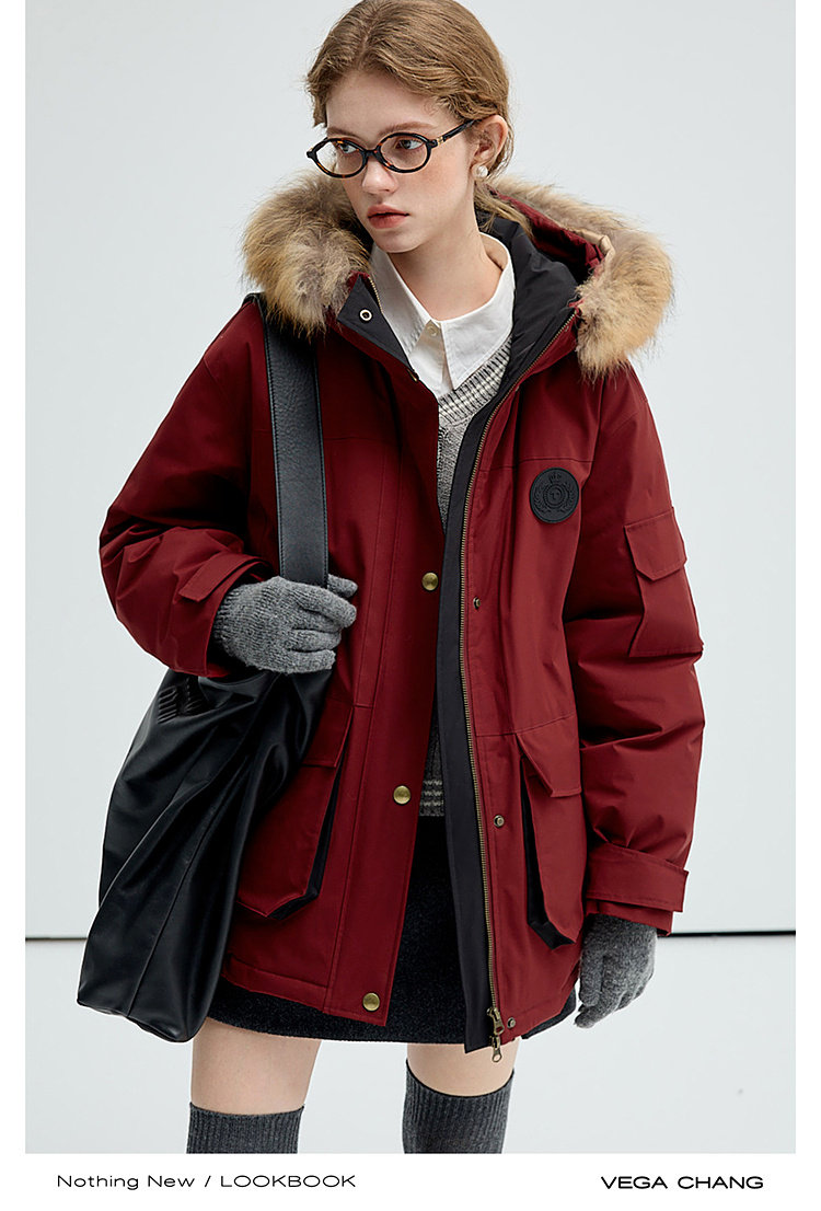 VEGA CHANG Anxin Velvet Workwear Parka Down Jacket Mujer Pelo De Mapache Chaqueta De Tela De Tres Pruebas