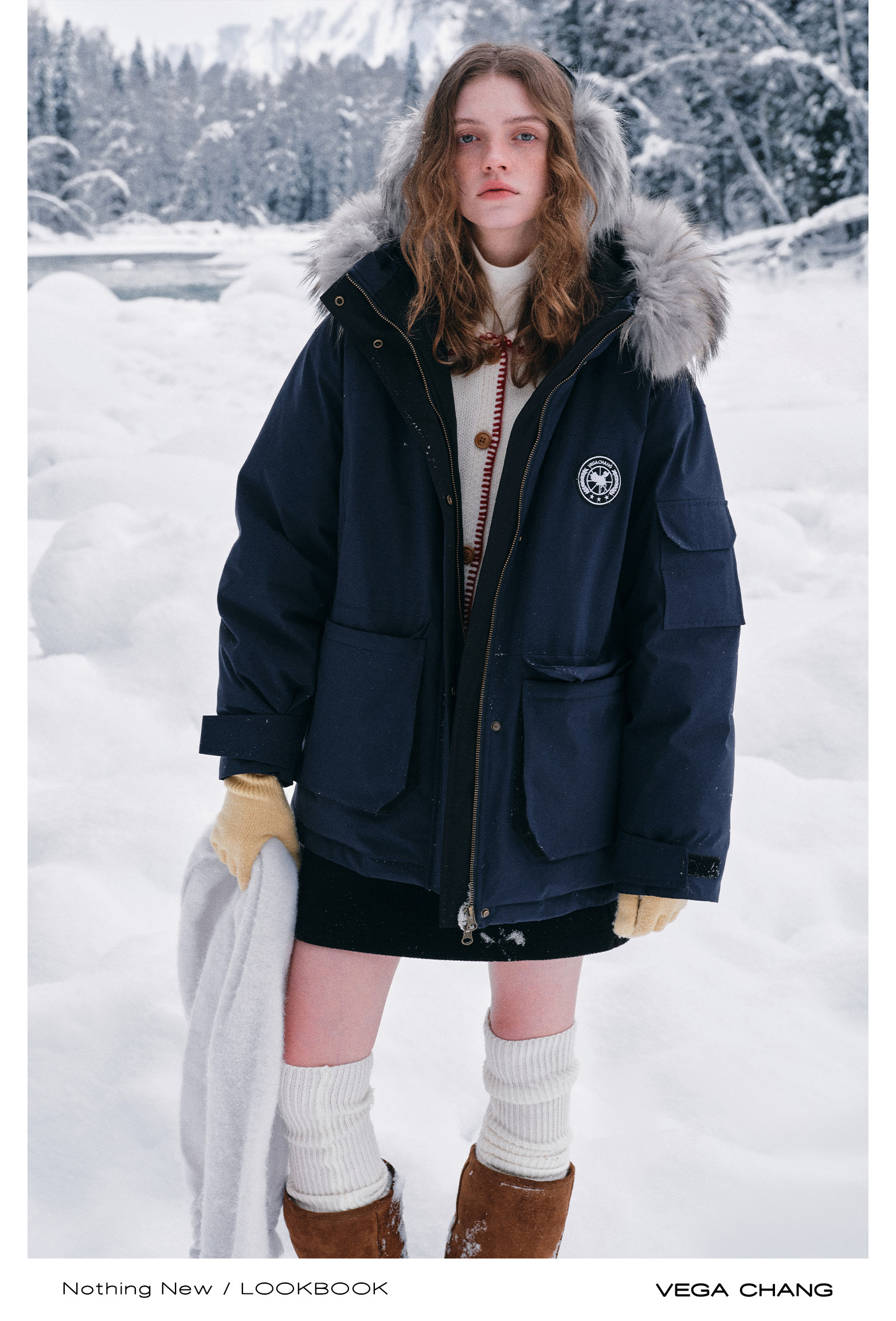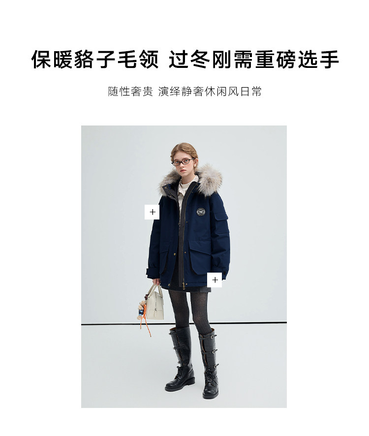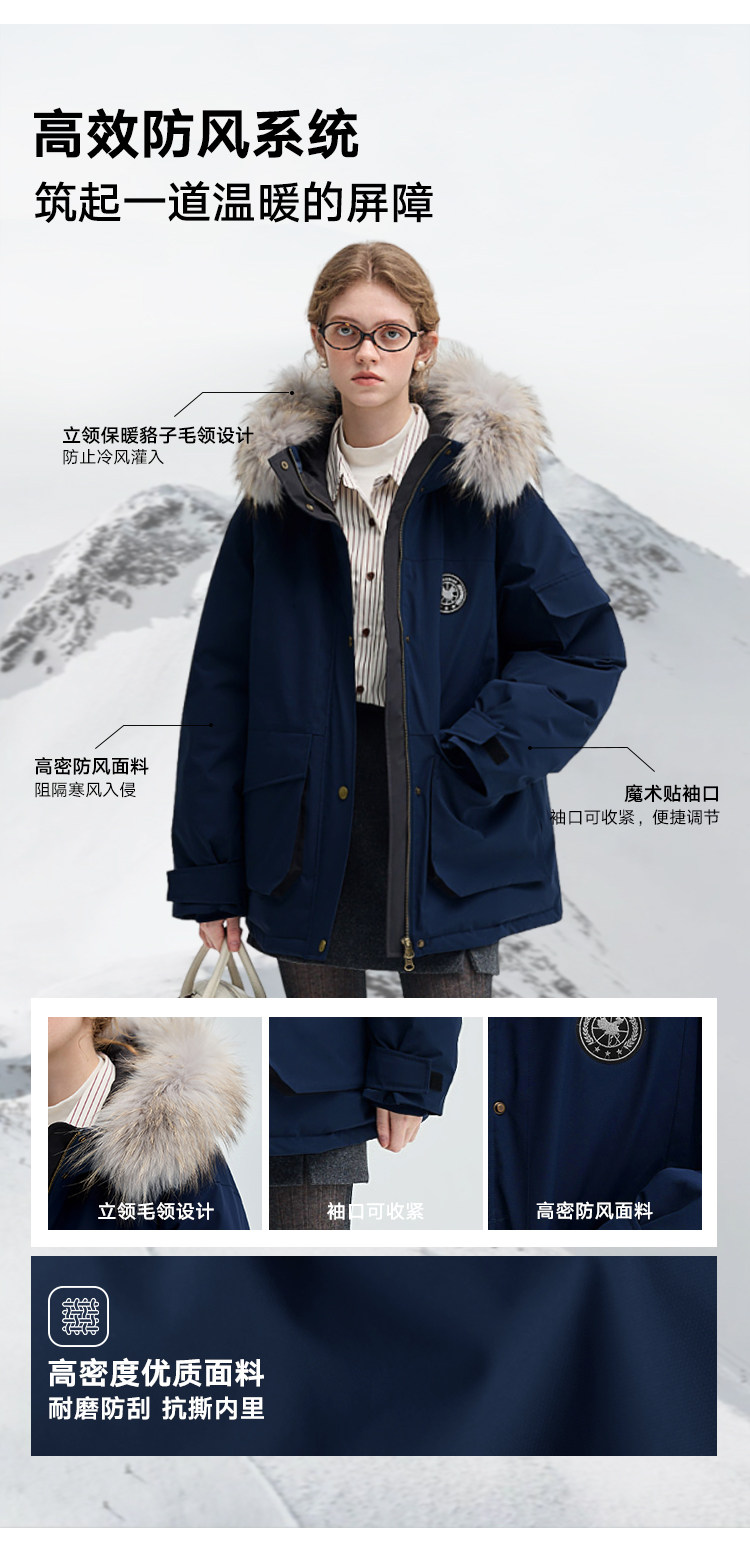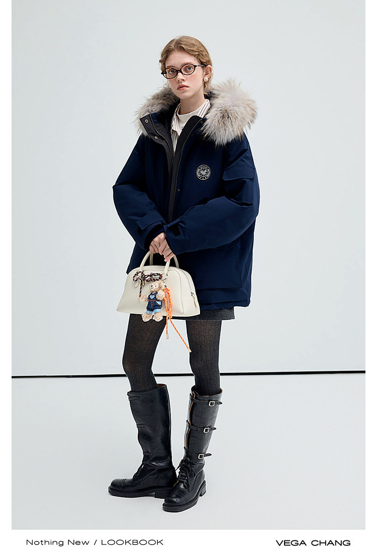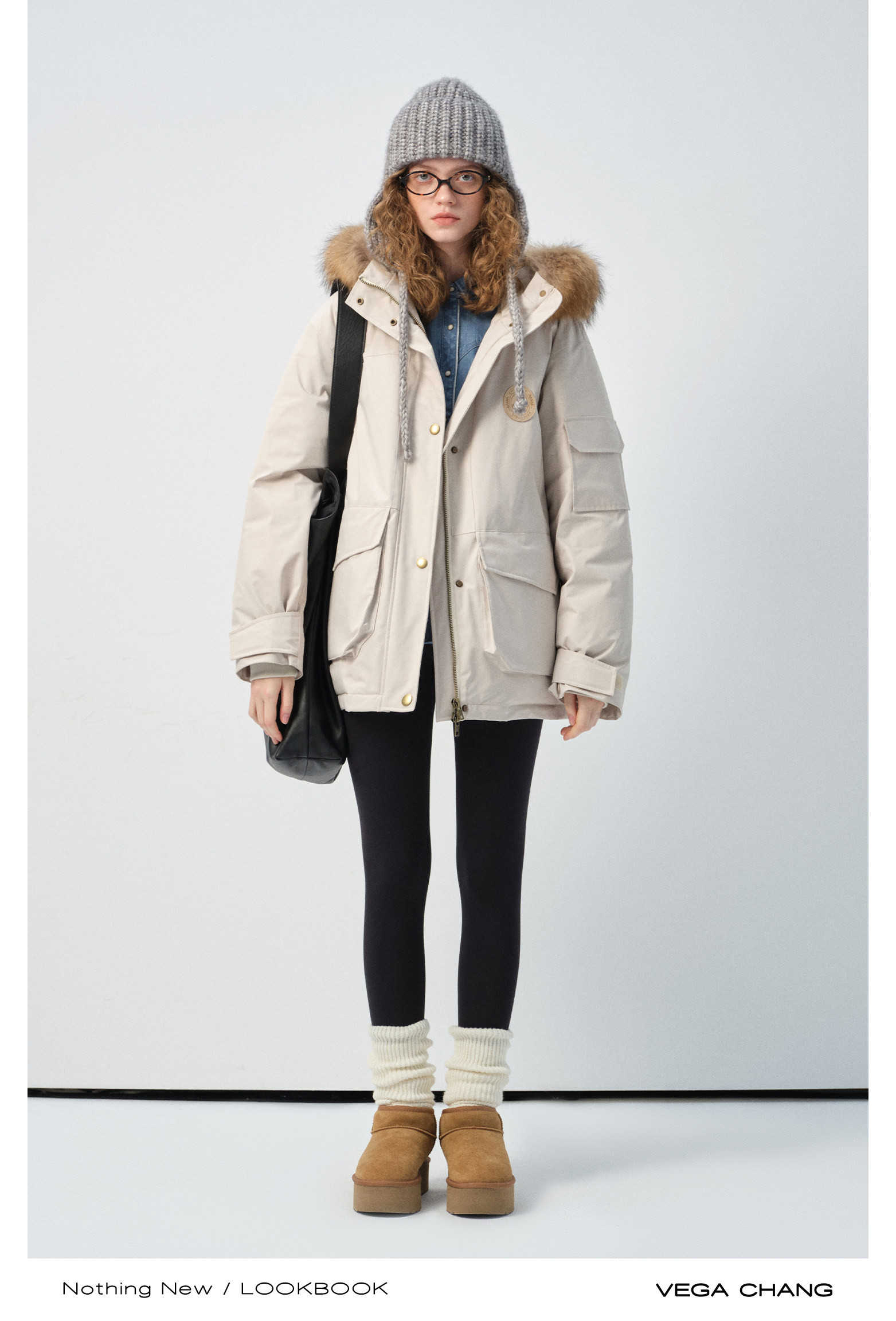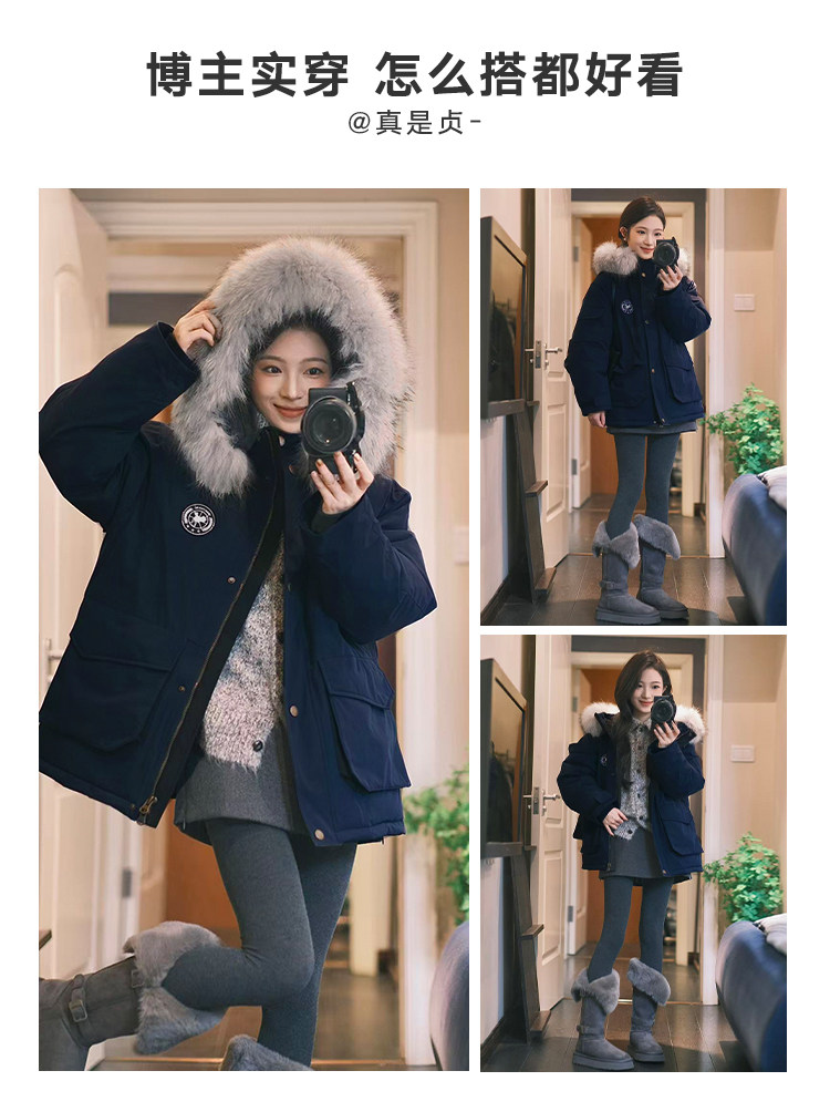 VEGA CHANG Anxin Velvet Workwear Parka Down Jacket Mujer Pelo De Mapache Chaqueta De Tela De Tres Pruebas