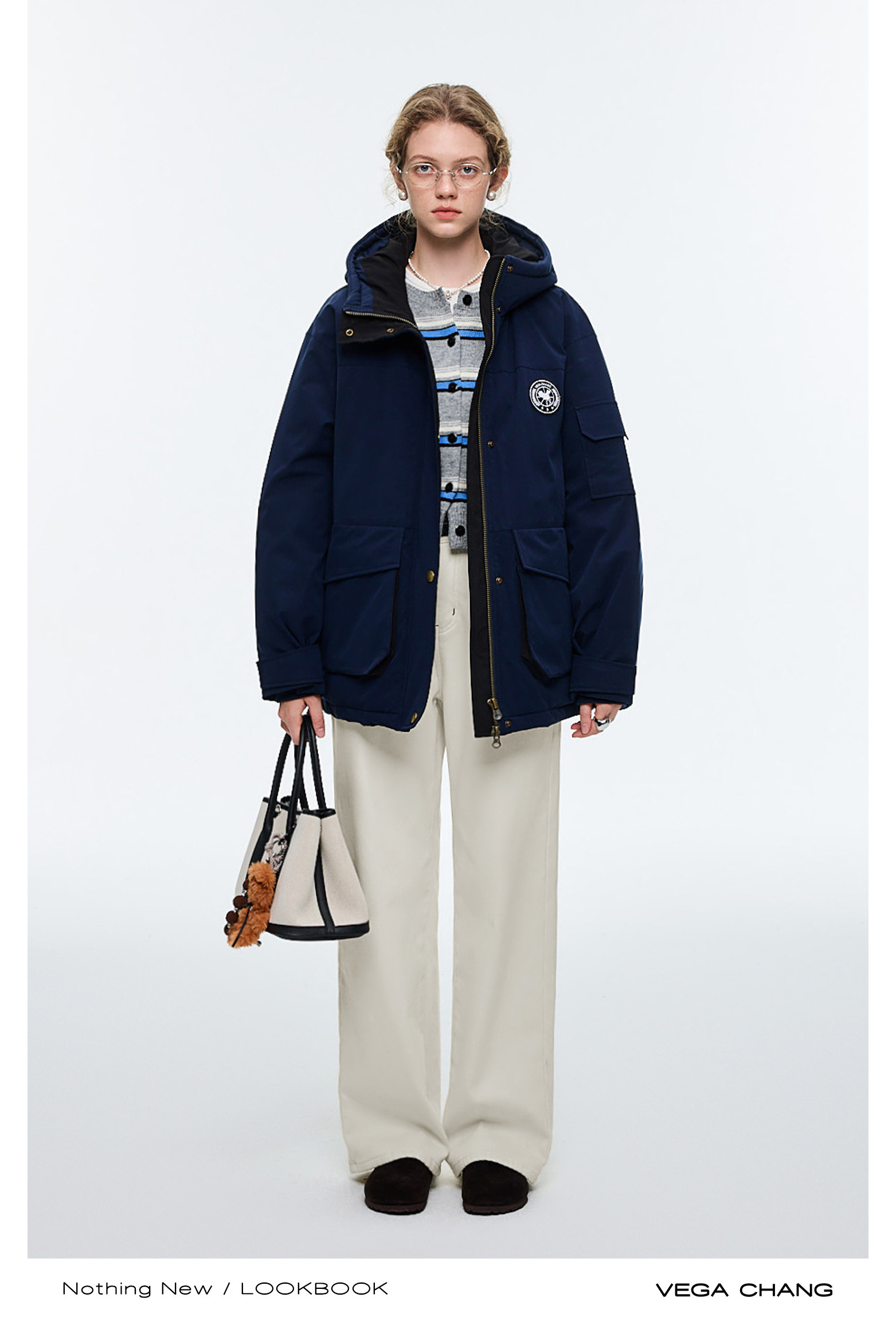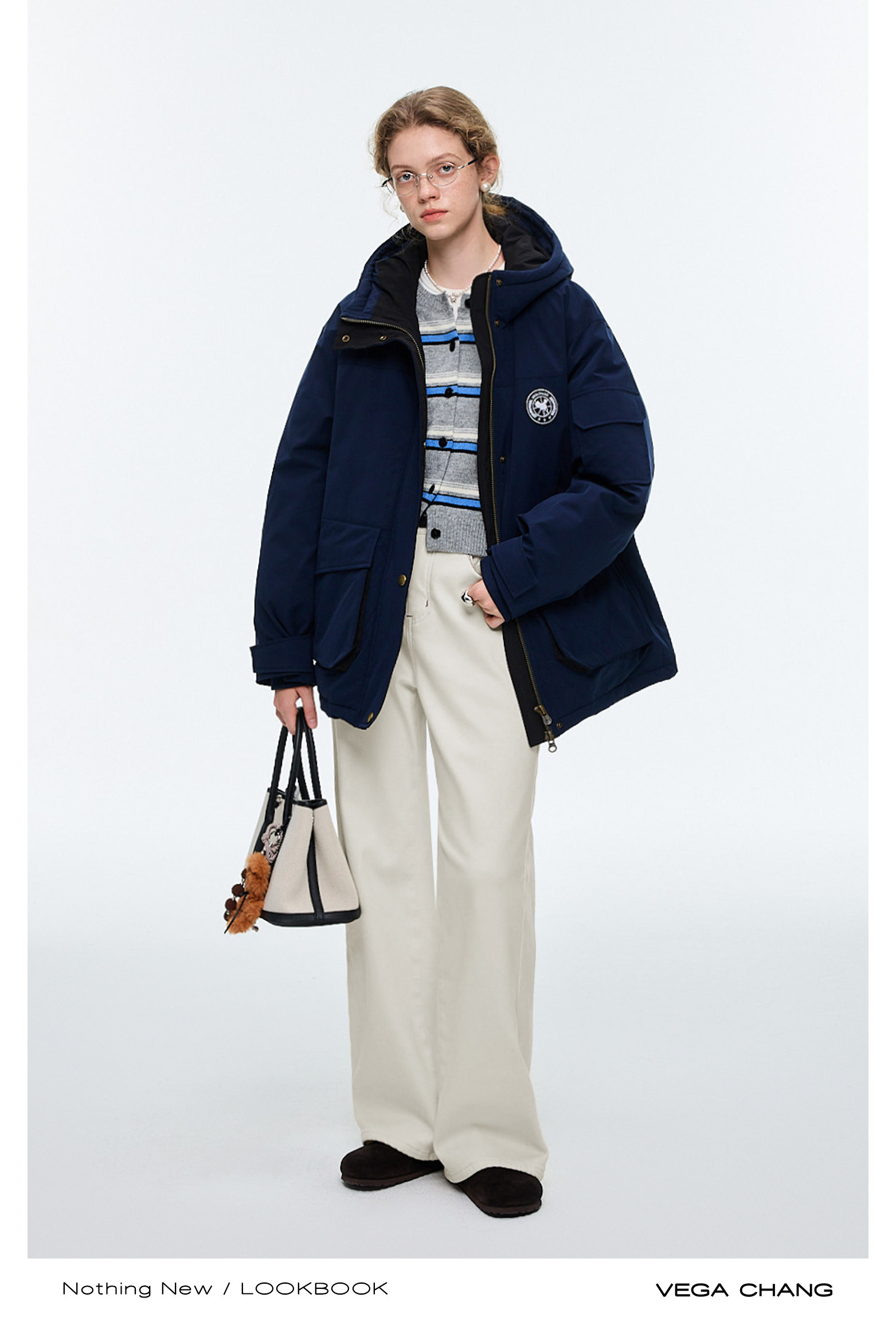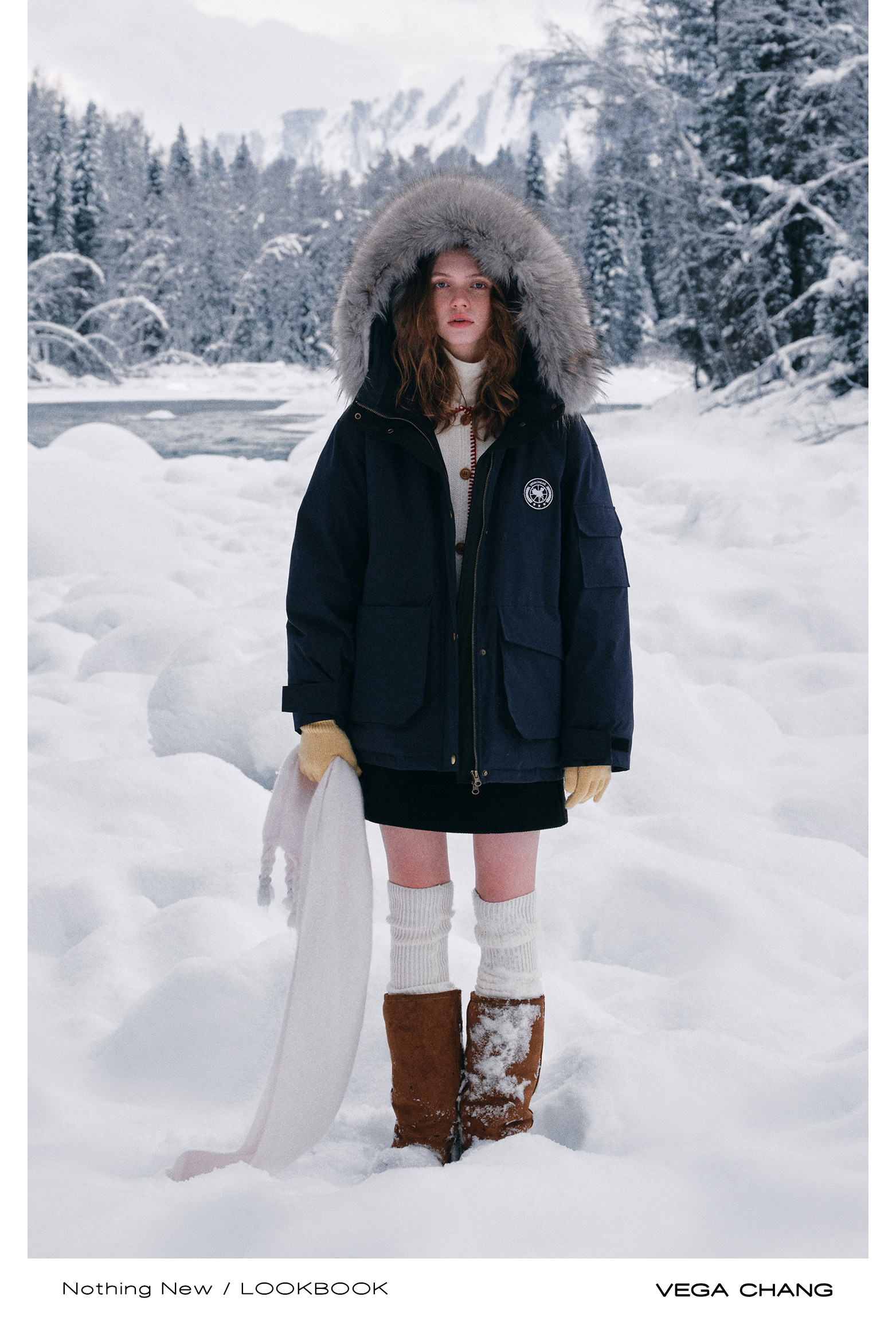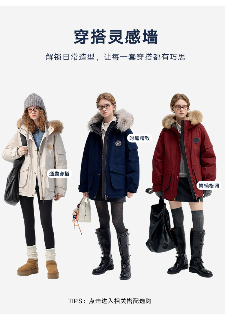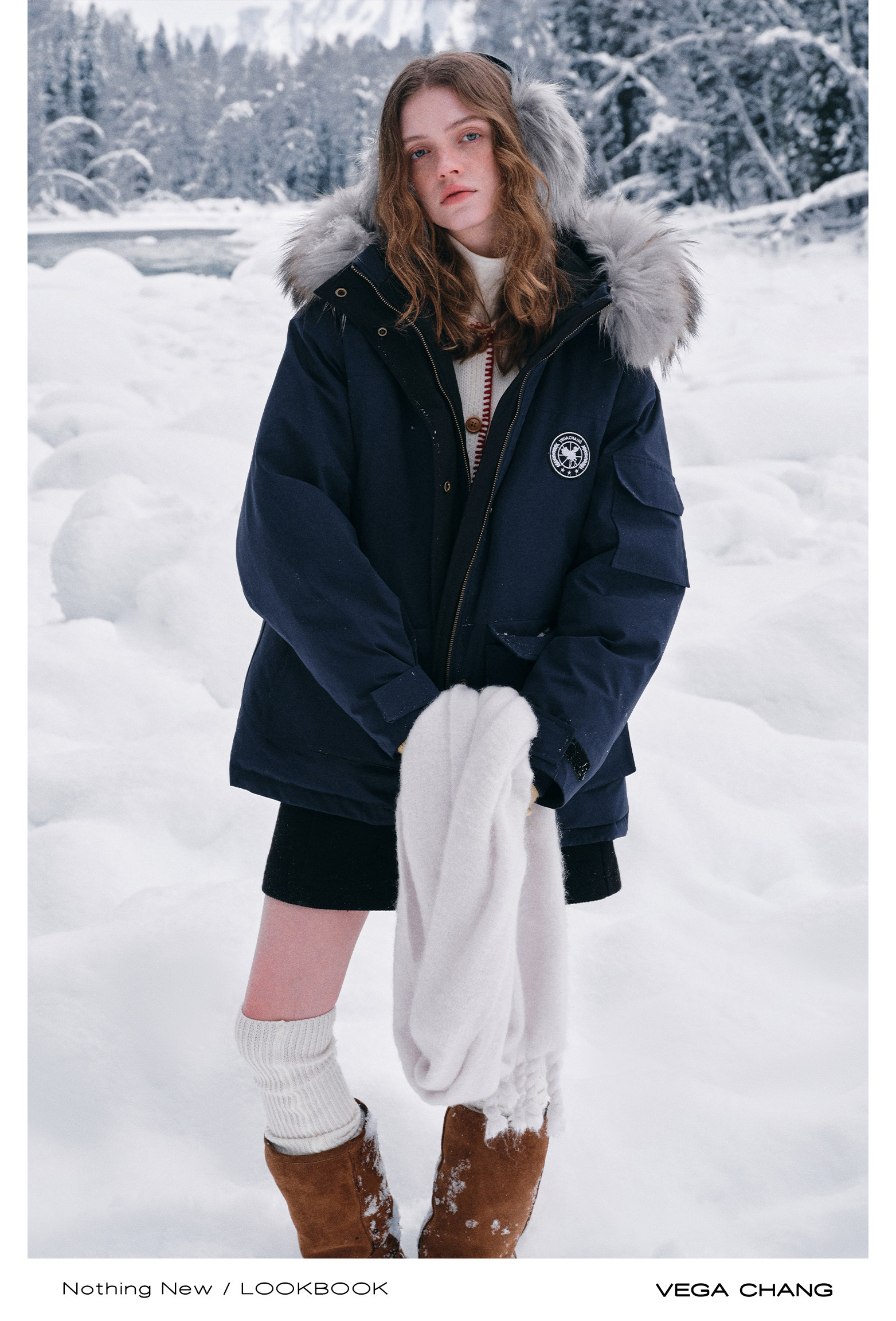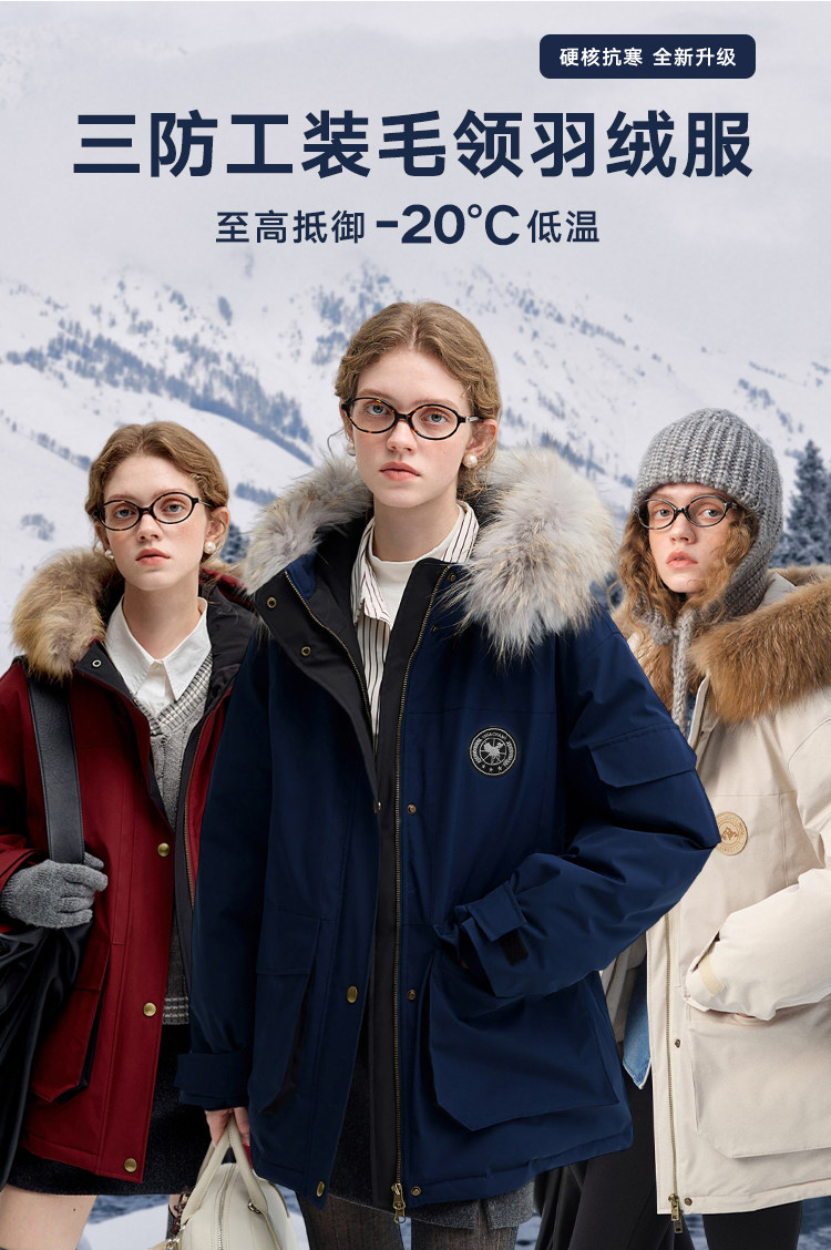 VEGA CHANG Anxin Velvet Workwear Parka Down Jacket Mujer Pelo De Mapache Chaqueta De Tela De Tres Pruebas