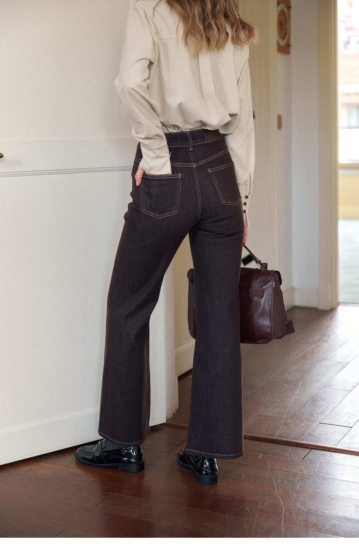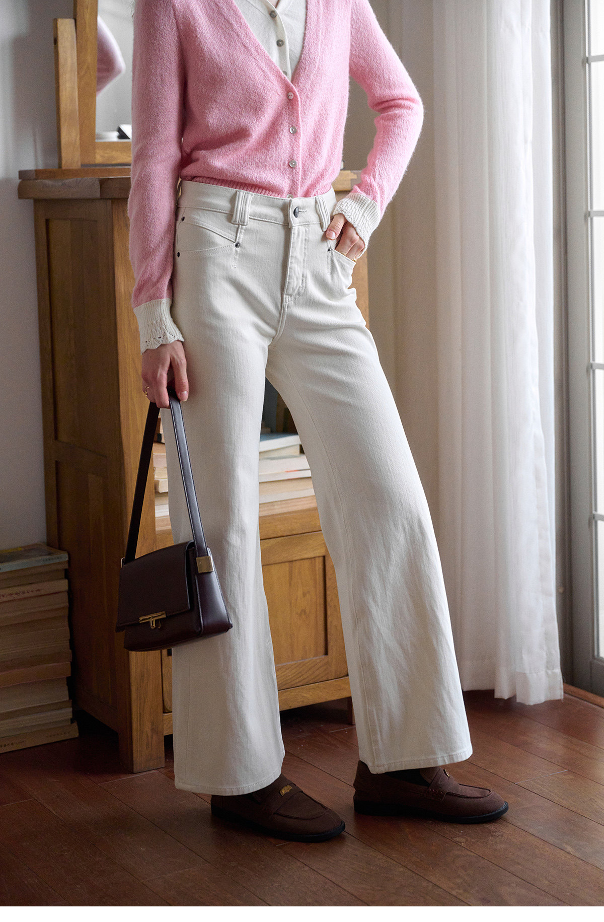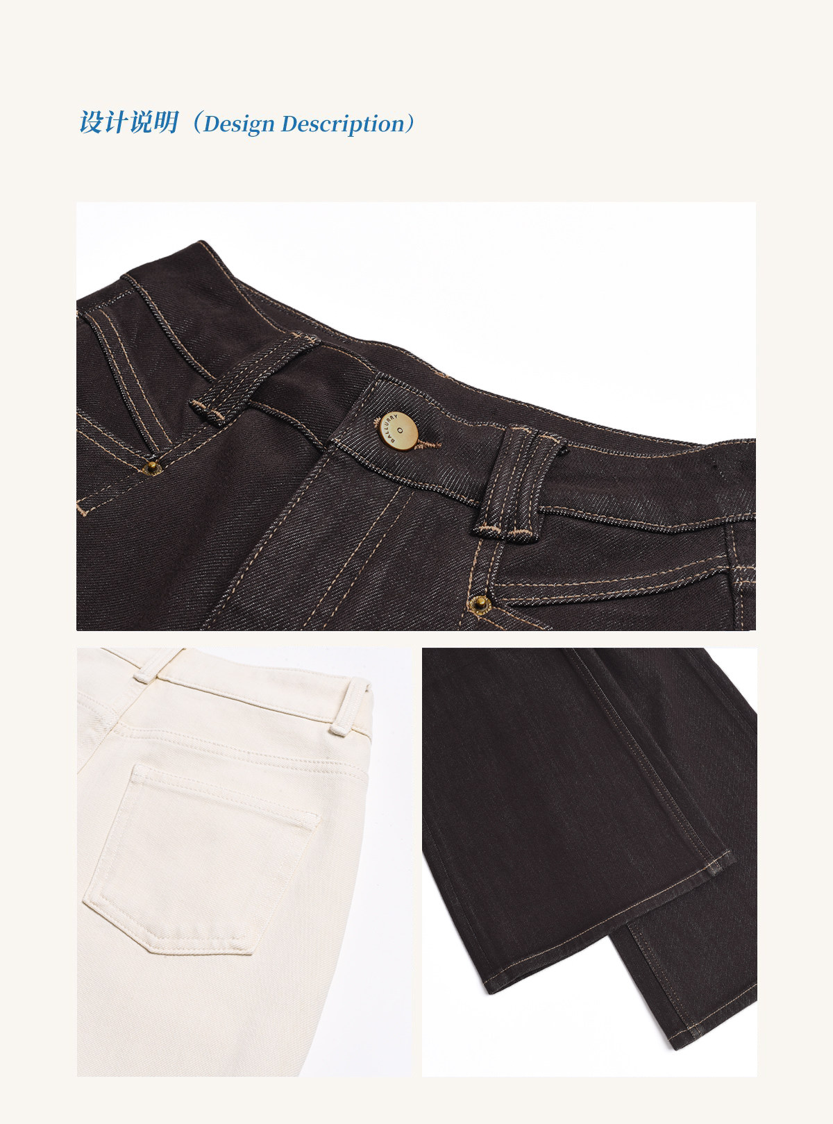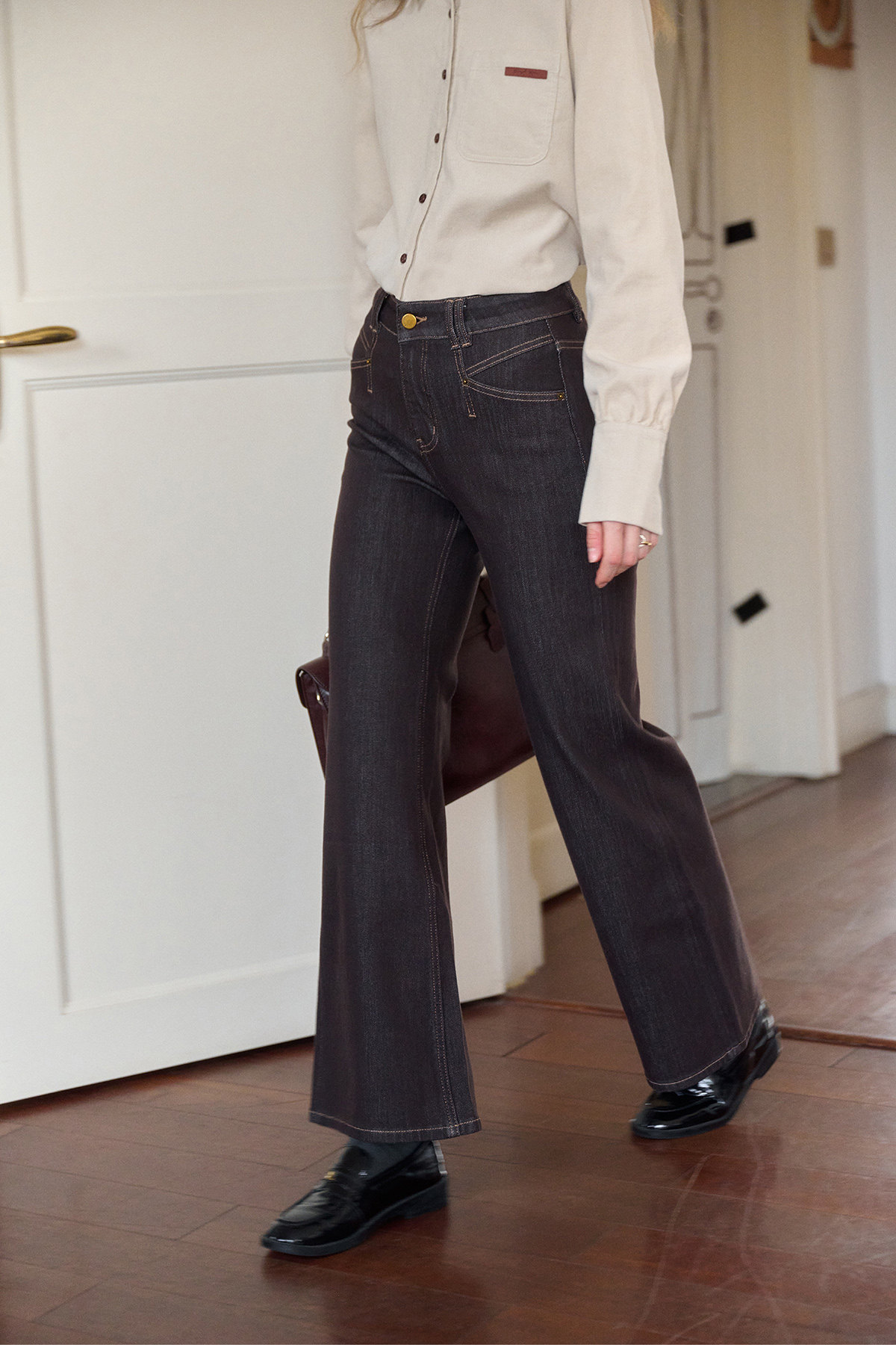 SimpleRetro秋日回廊 复古高腰直筒微喇牛仔裤女秋百搭阔腿长裤子