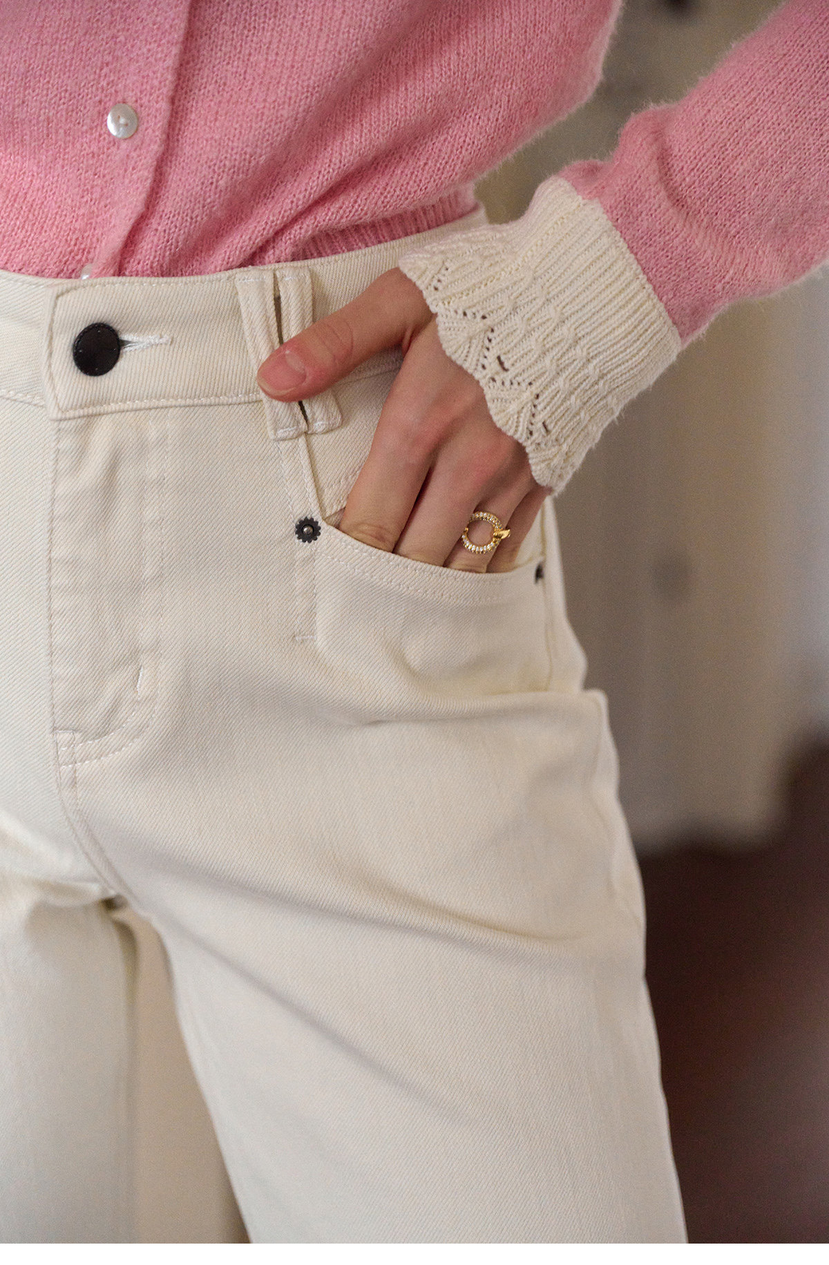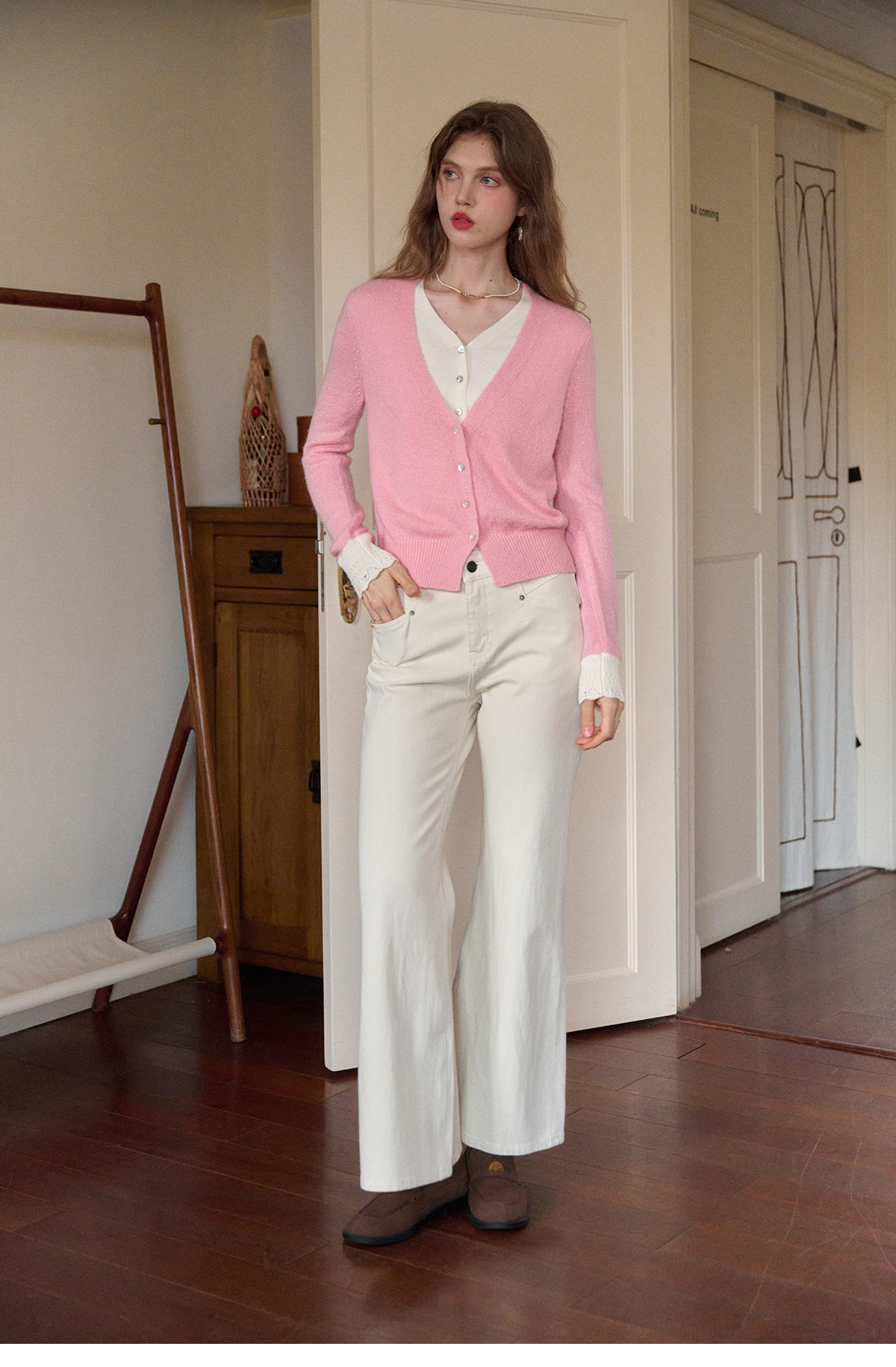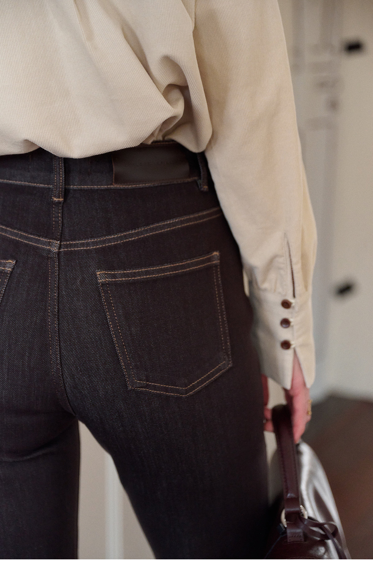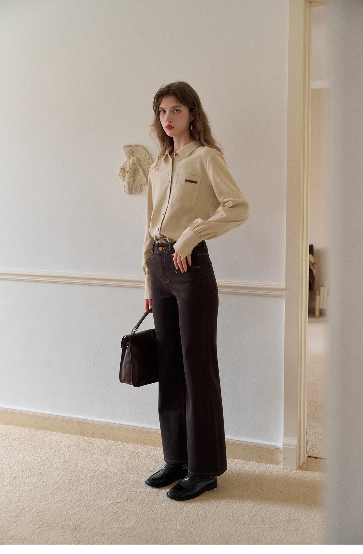 SimpleRetro秋日回廊 复古高腰直筒微喇牛仔裤女秋百搭阔腿长裤子