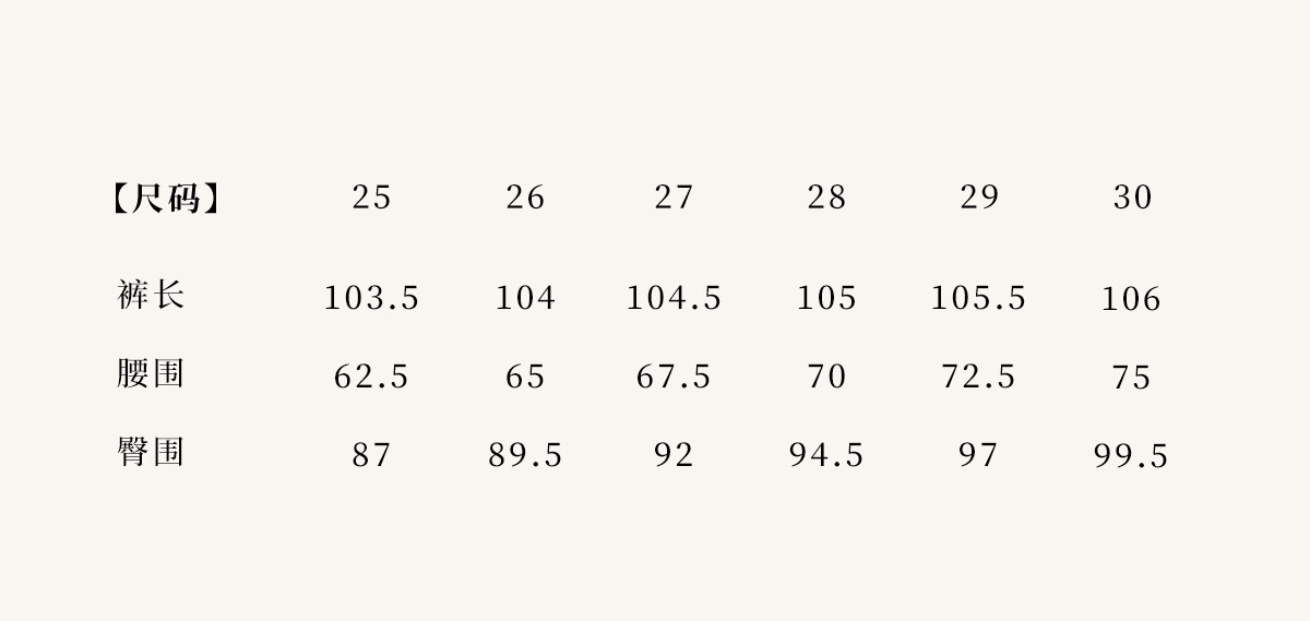 Outseam (cm) 99 cm 101.5 cm 104 cm 106.5 cm 109 cm