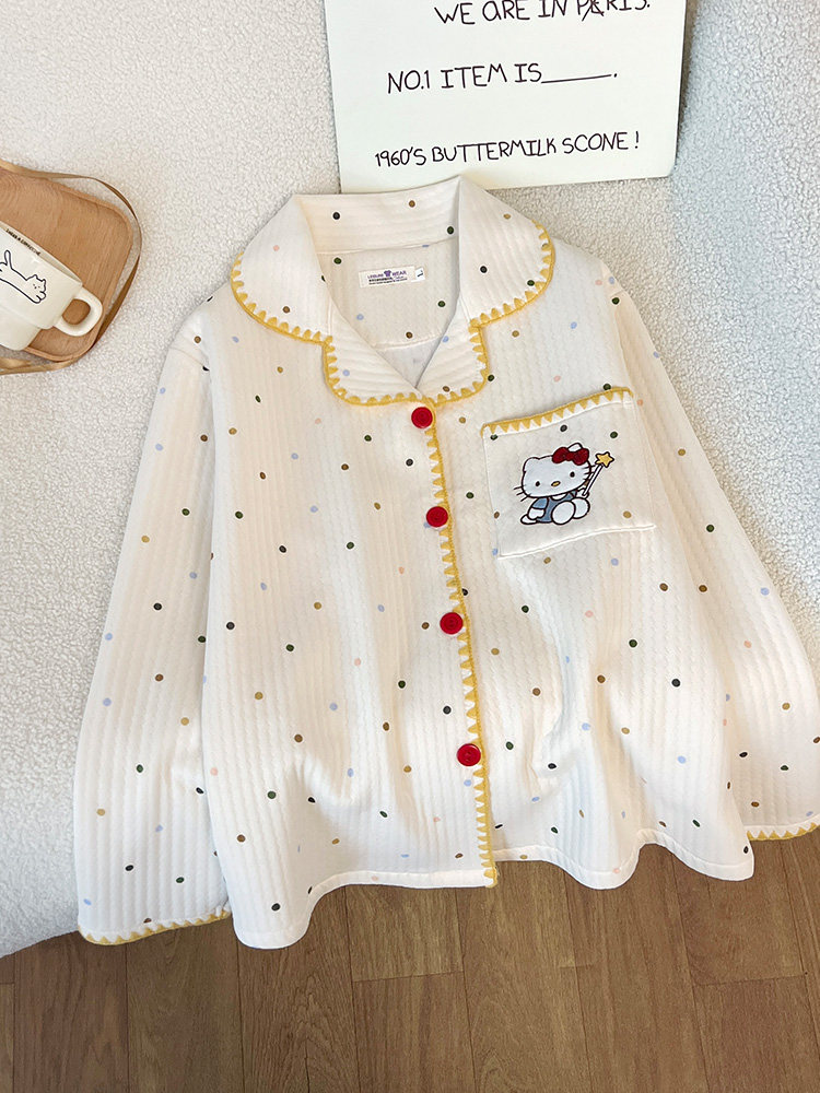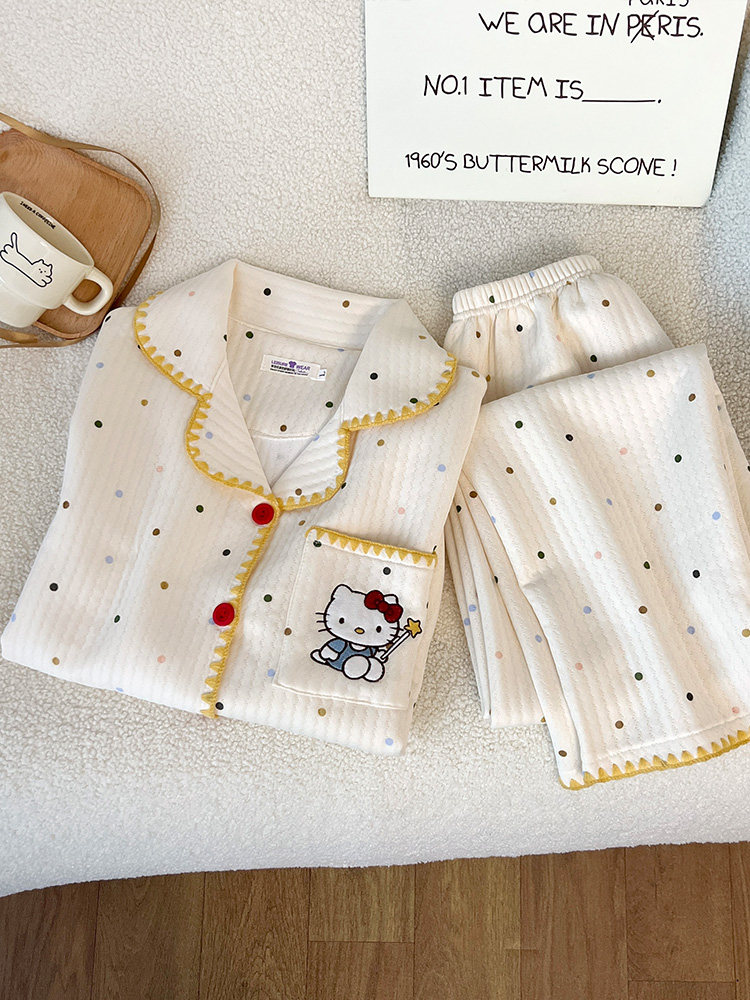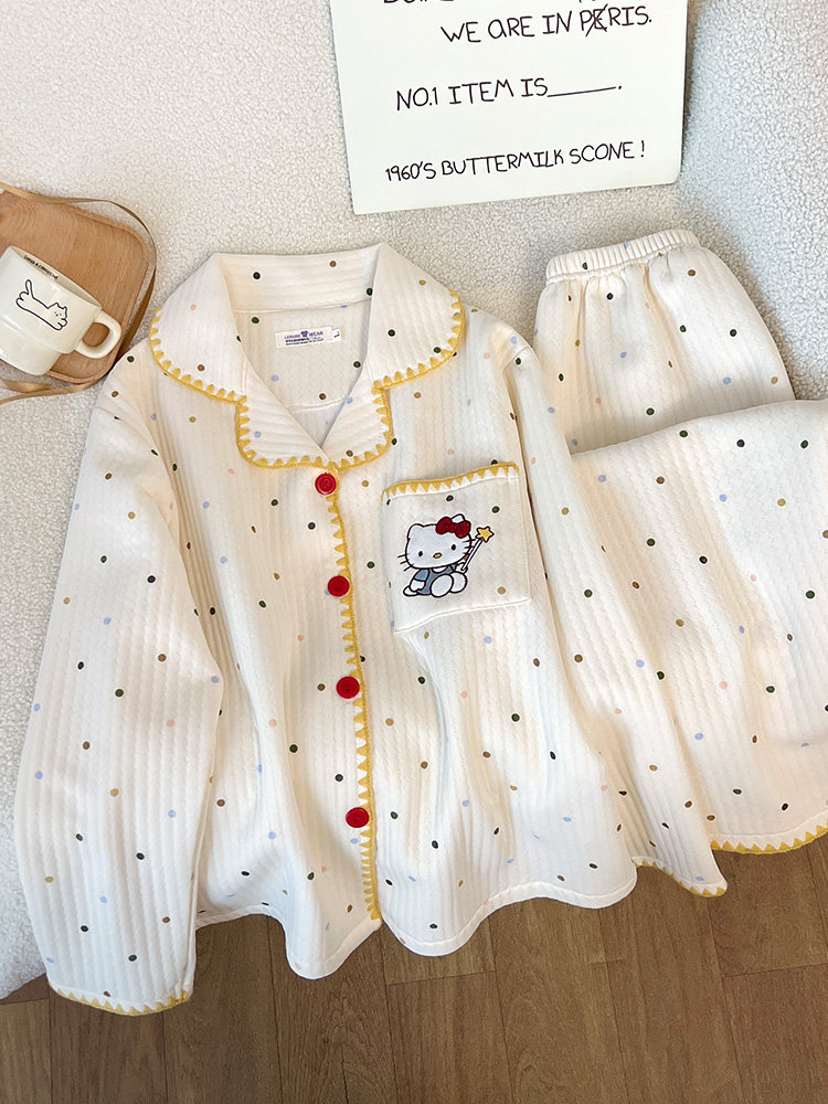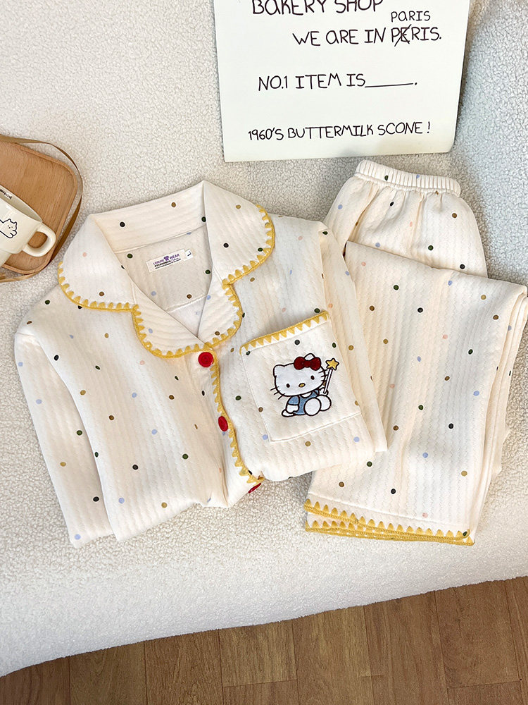 Hellokitty-pijamas de algodón con lunares para mujer, ropa gruesa acolchada tipo sándwich para otoño e invierno, 2025