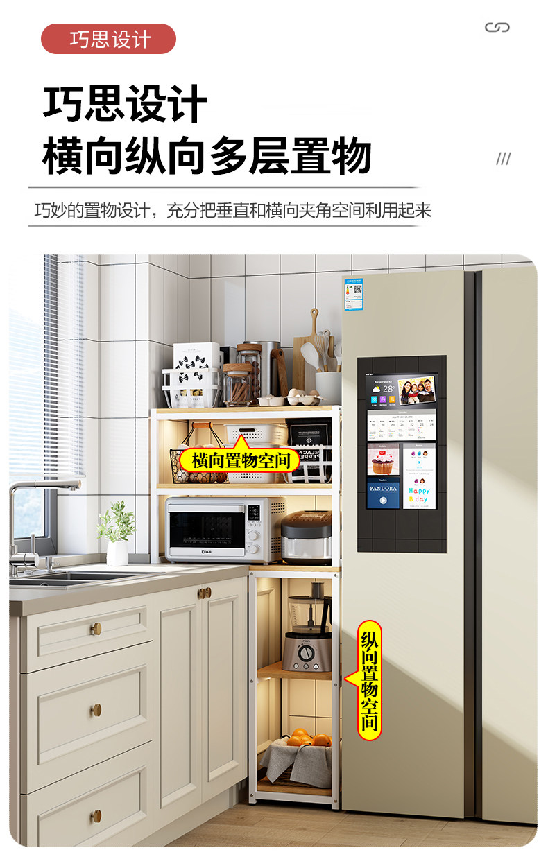 Étagère de rangement latérale pour réfrigérateur domestique, coin de cuisine étroit, armoire à micro-ondes multicouche sur pied