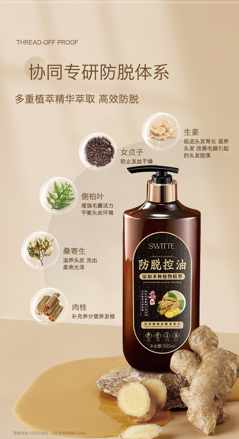 Ingwer-Shampoo verhindert Haarausfall, stärkt das Haar, kontrolliert Öl, flauschiges, nicht wachsendes Haar, verdichtet das Haar, entfernt Schuppen und lindert Juckreiz für Männer und Frauen, offizielles authentisches Produkt
