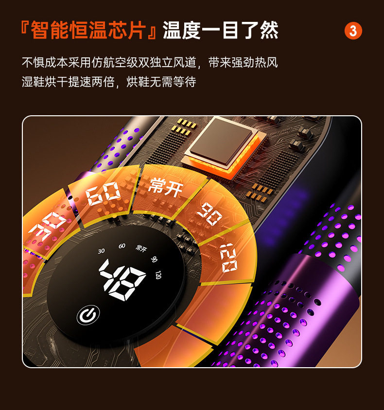 Clasificación de colores Secador de zapatos telescópico temporizador inteligente con pantalla táctil blanca,Secador de zapatos telescópico negro temporizador inteligente con pantalla táctil