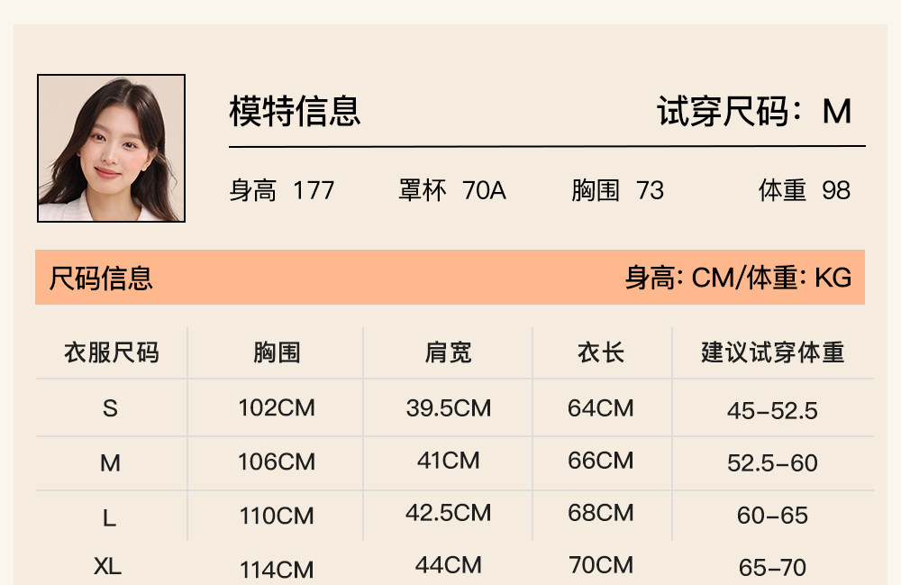 China (cm) 160-165/84-86 165-170 / 88-90 167-172 / 92-96 168-173 / 98-102 170-176 / 106-110