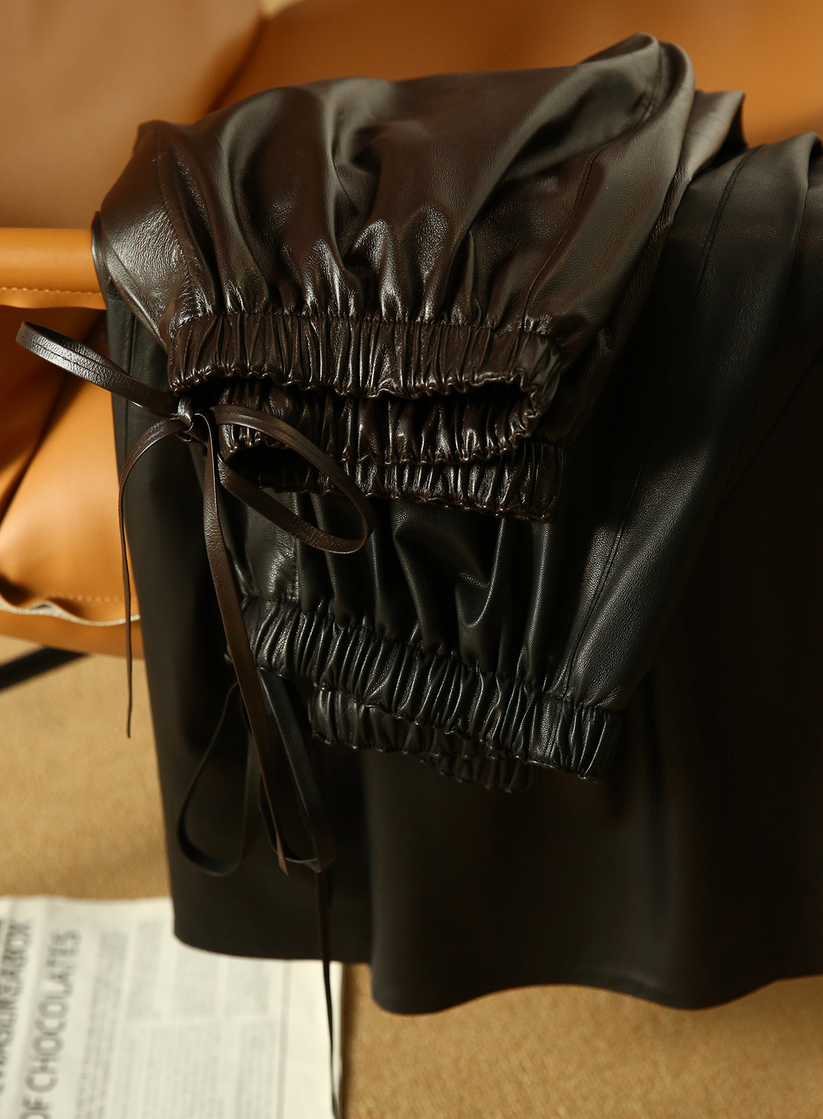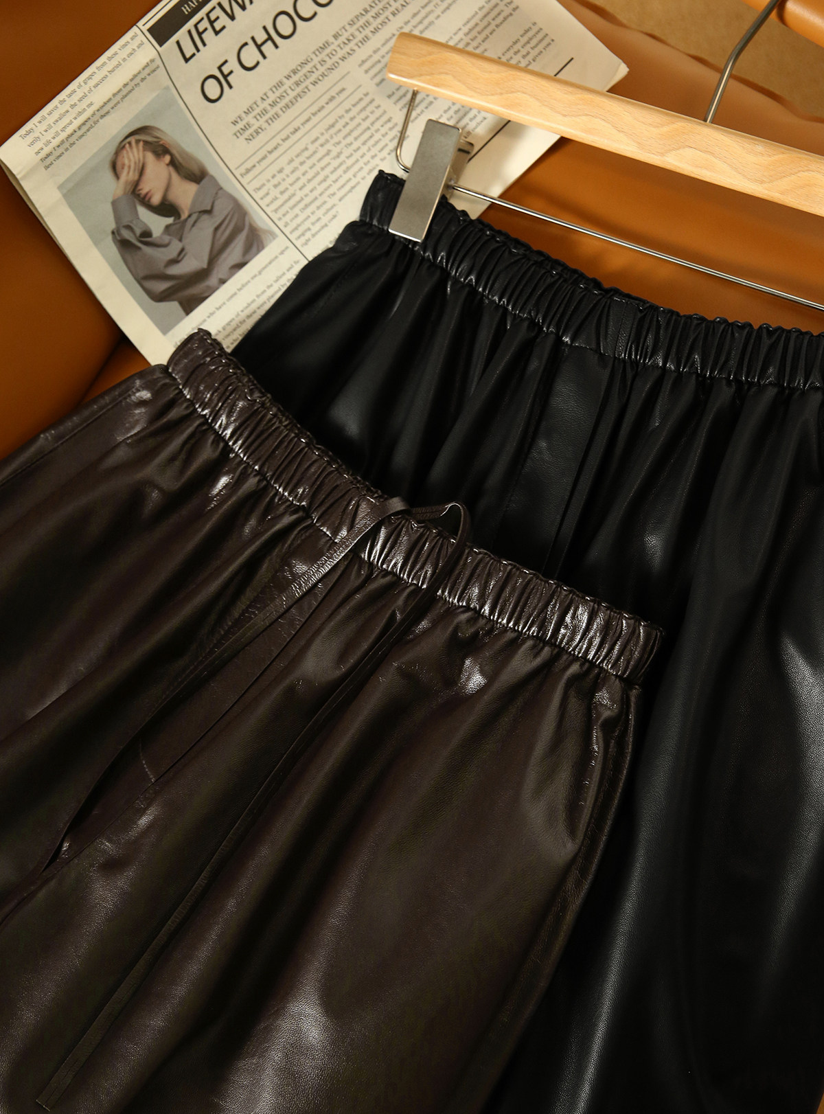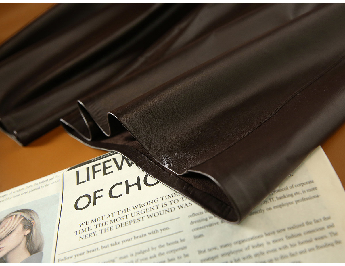 Xiaohange Pantalones de cuero desinhibidos |ROW Old Money Piel de oveja suave Cintura elástica recta Pantalones de cuero genuino para mujer