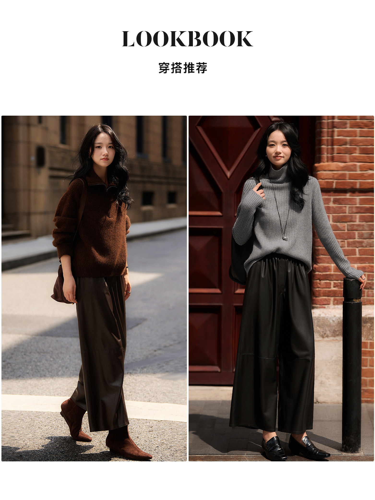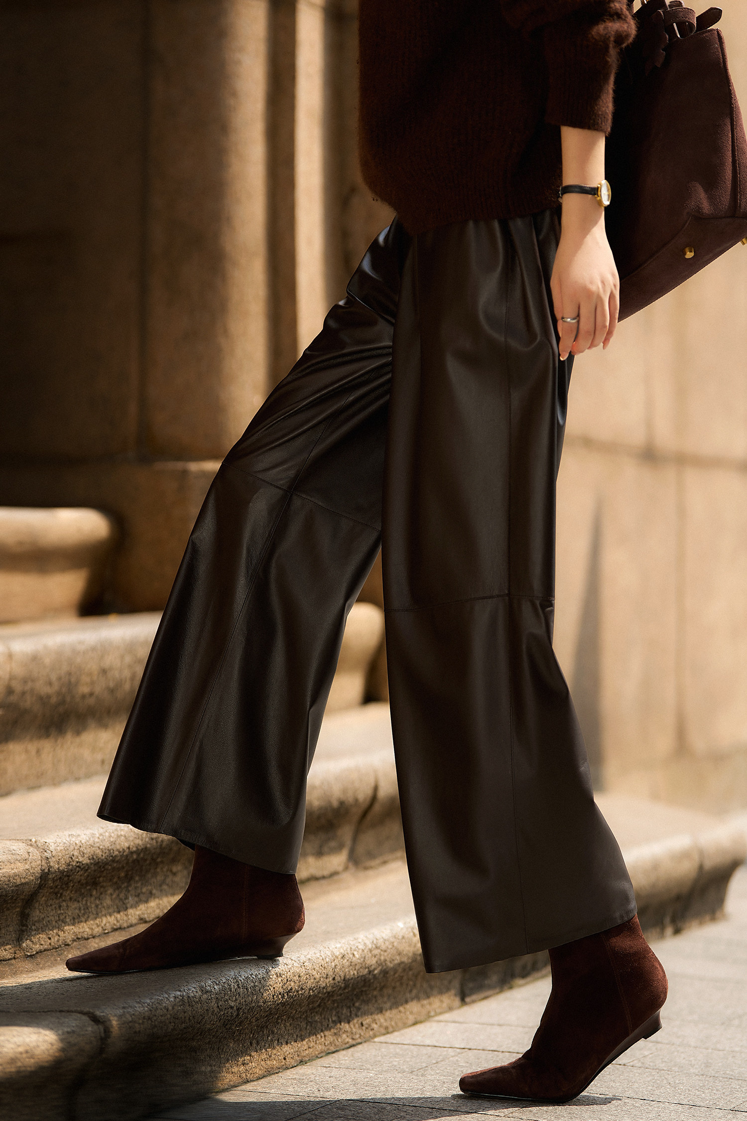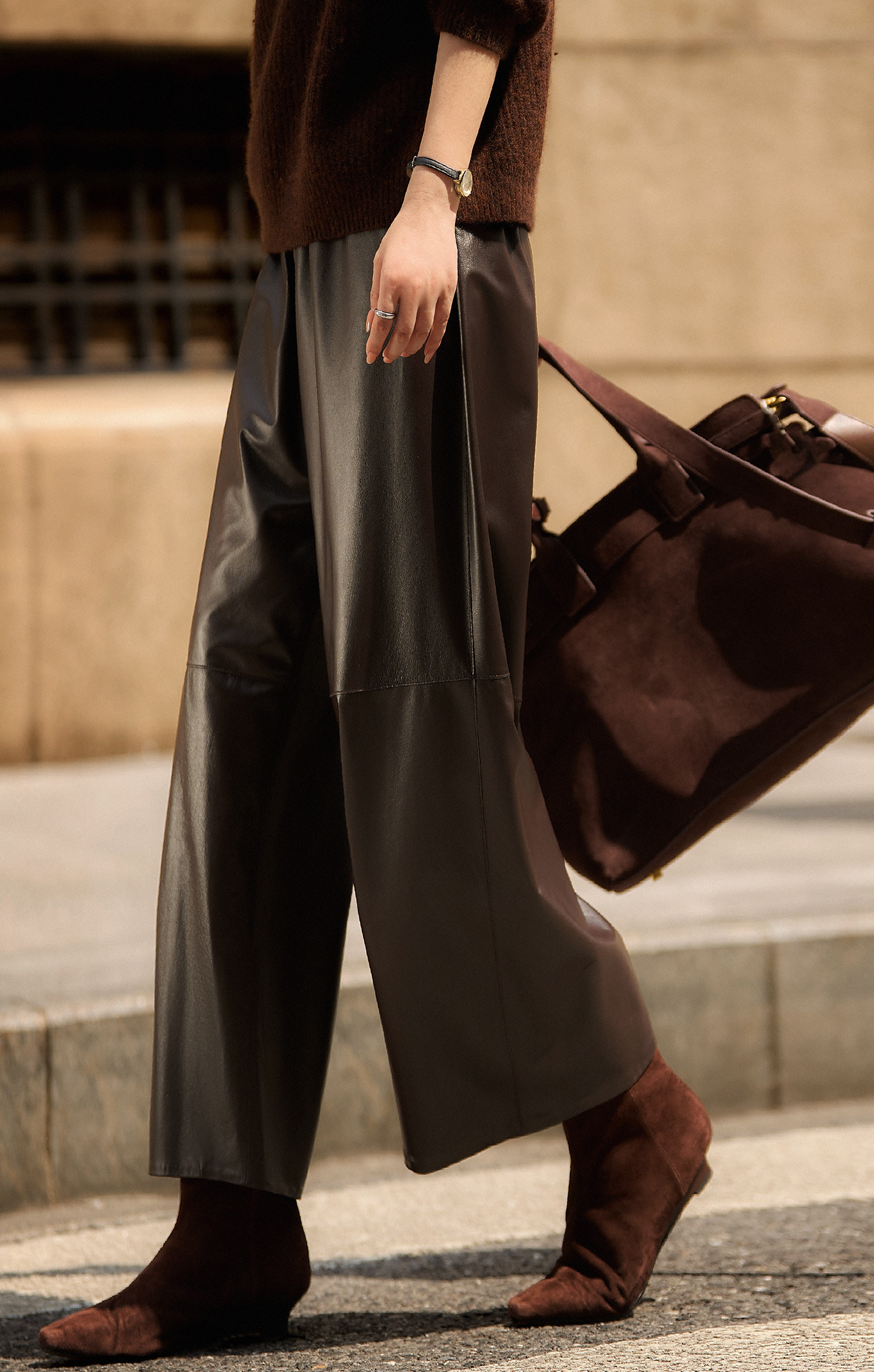 Xiaohange Pantalones de cuero desinhibidos |ROW Old Money Piel de oveja suave Cintura elástica recta Pantalones de cuero genuino para mujer