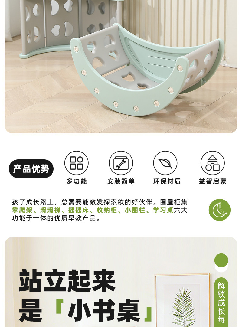 Children's Slide Climbing Storage Rack Sensory Training Combination Baby Rocking Bed Toy
