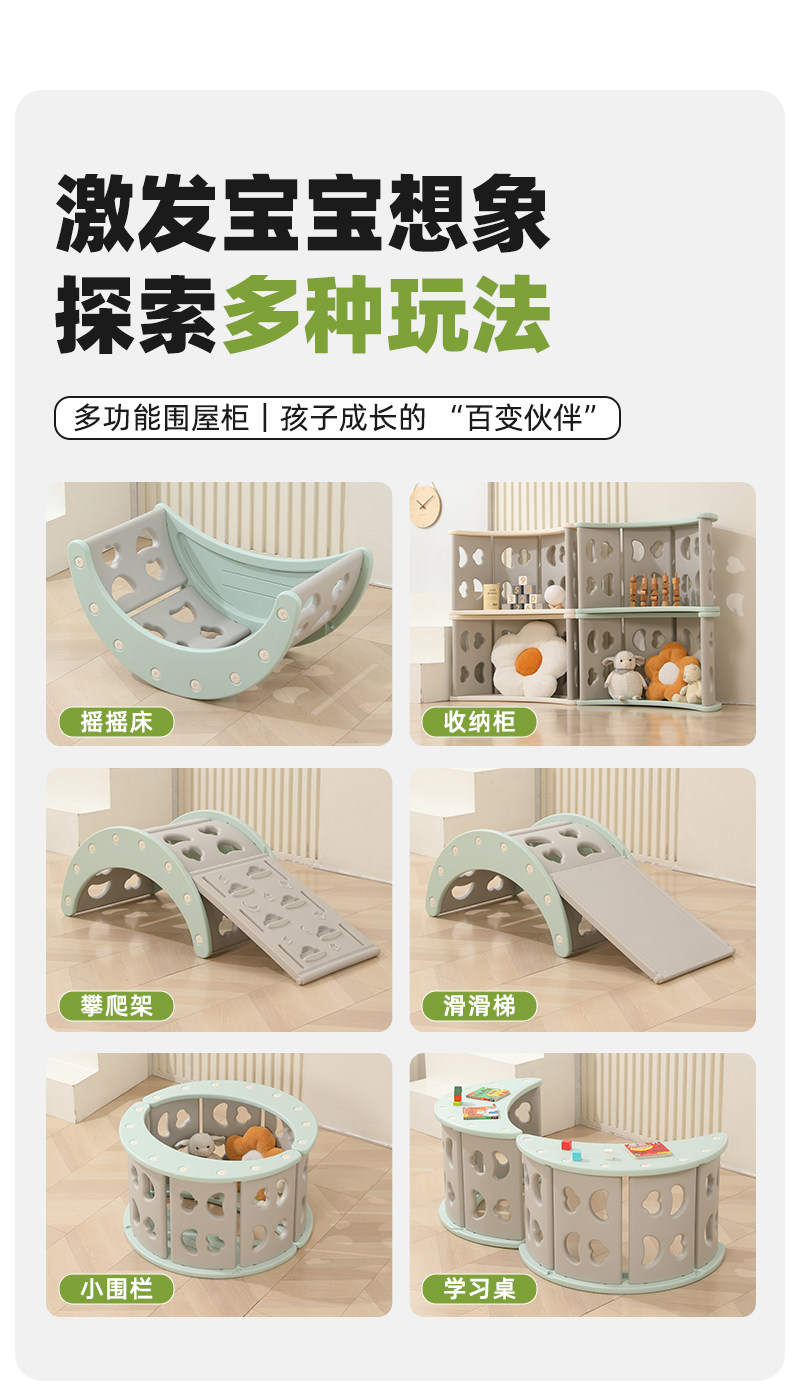 Color Classification Celadon Green Multifunctional Climbing Slide,Cream White Multifunctional Climbing Slide