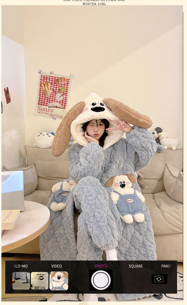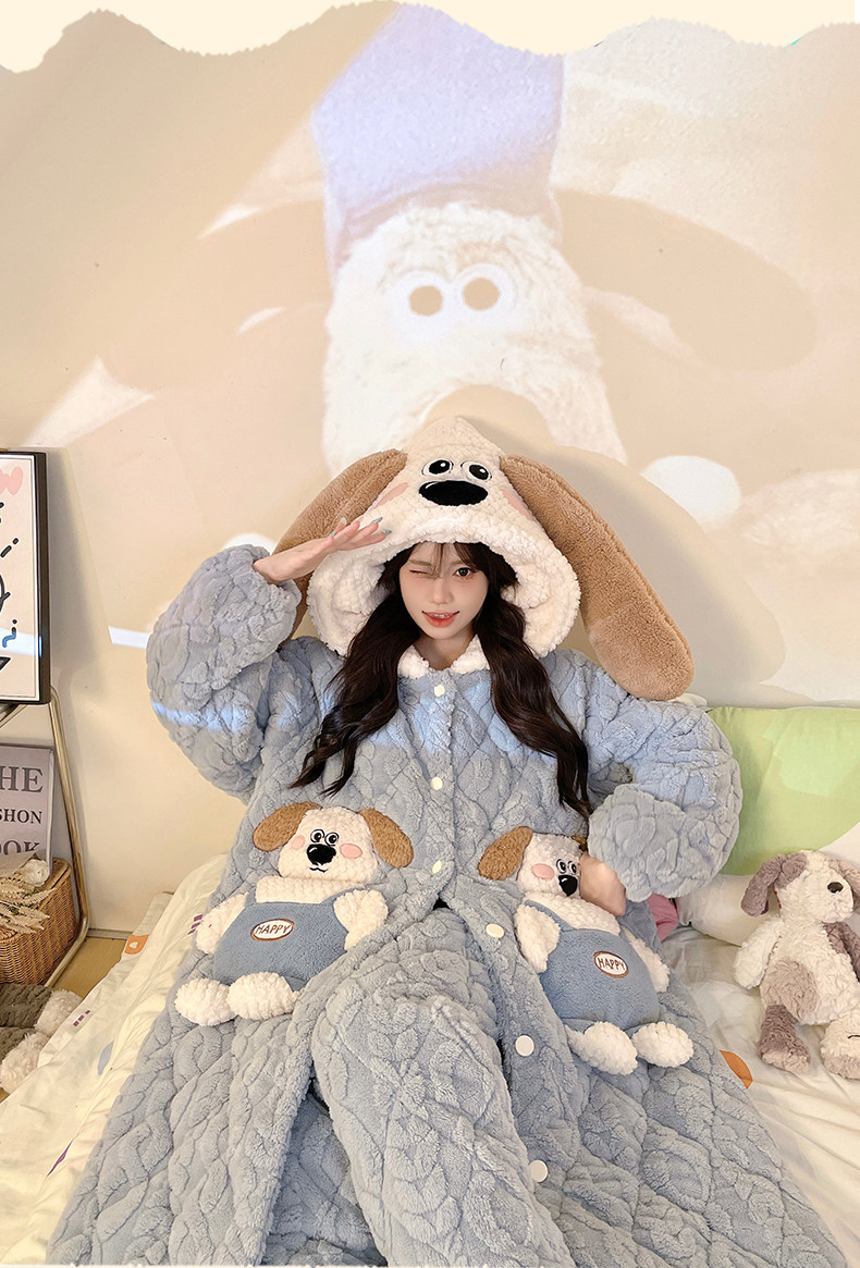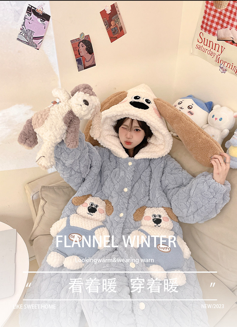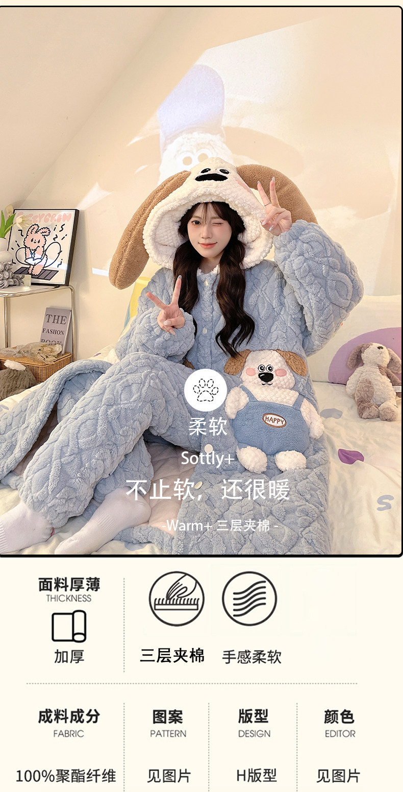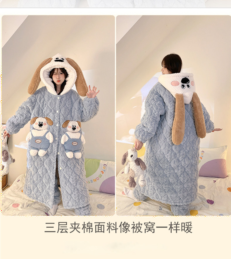 Catman-Pyjama-Set für Damen, Winter, Plüsch, verdickt, dreilagig, gepolstert, Pyjama aus Korallensamt, niedliche, weiche Heimkleidung