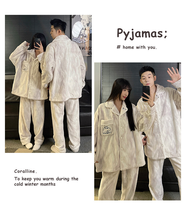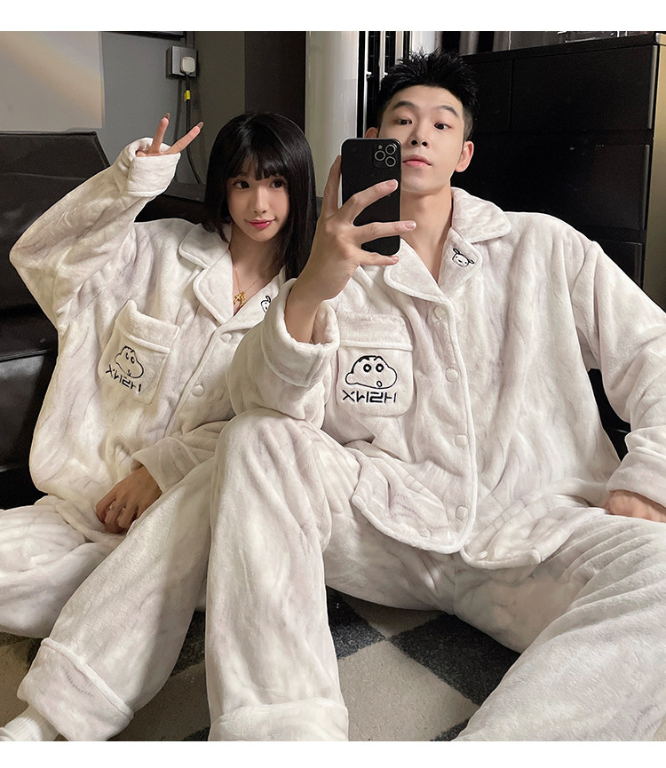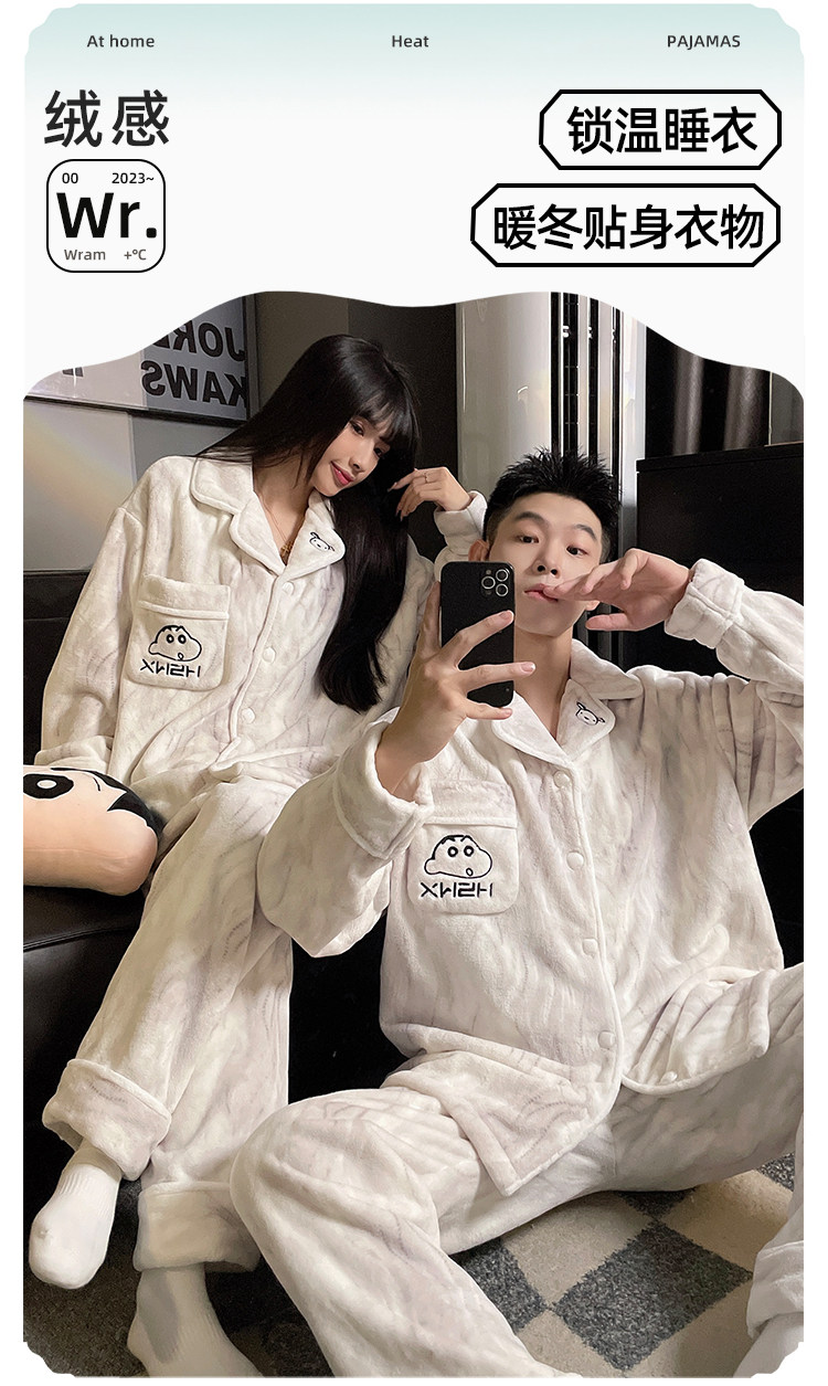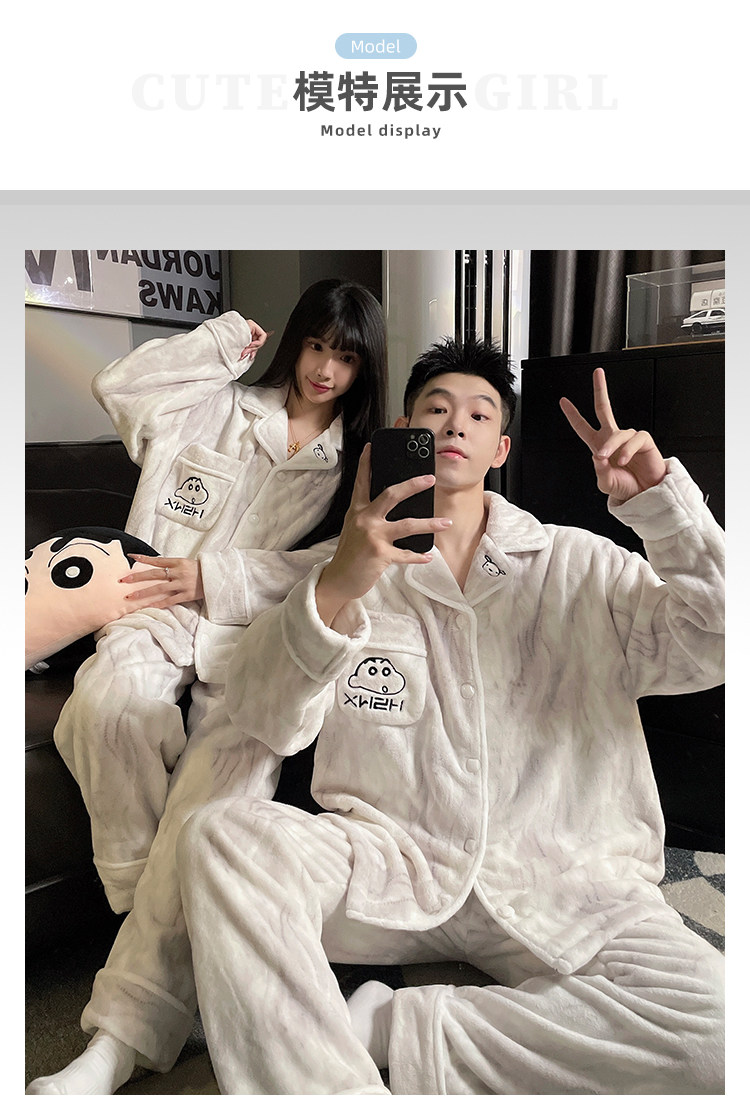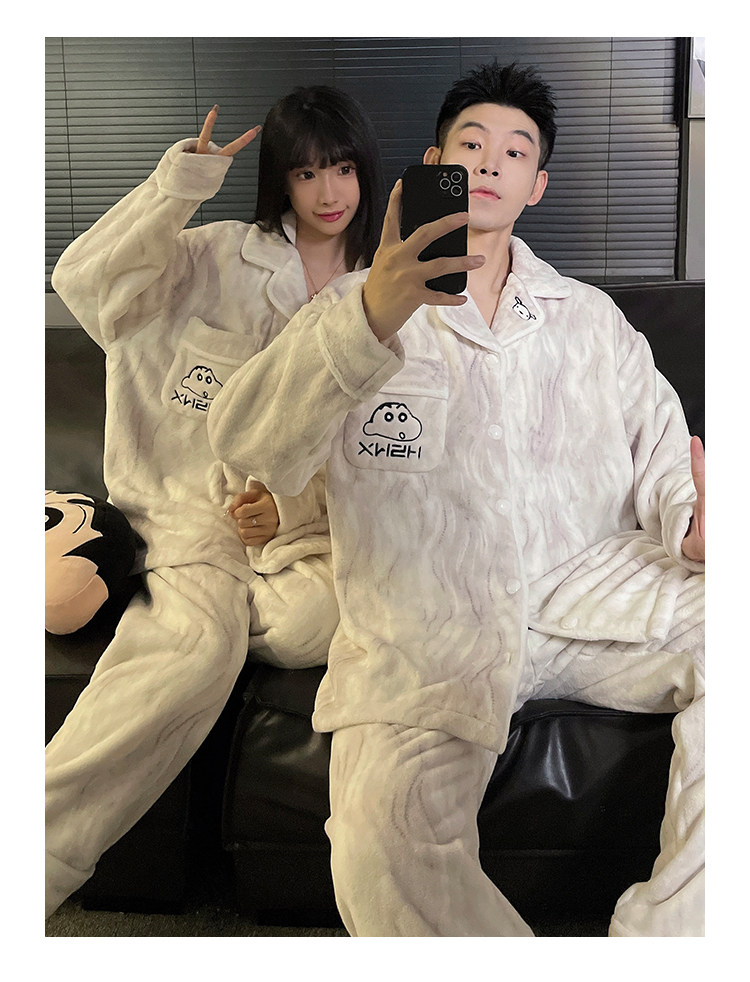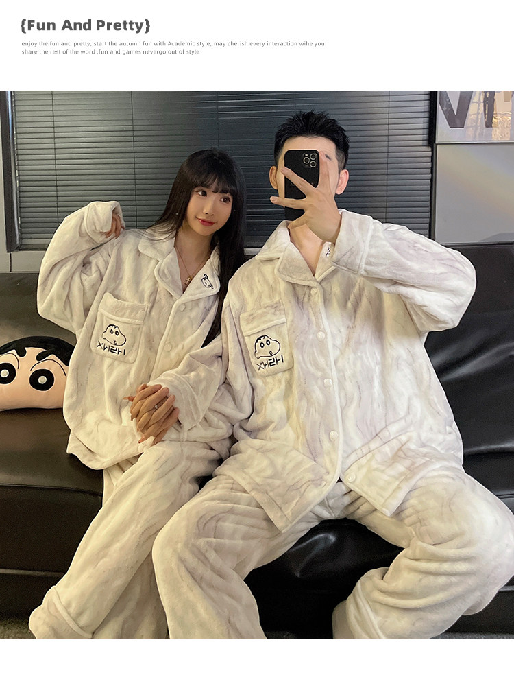 Crayon Shin-Chan Couple Pajamas for Women, Autumn and Winter Coral Fleece, Thickened Men's Flannel Loungewear Set