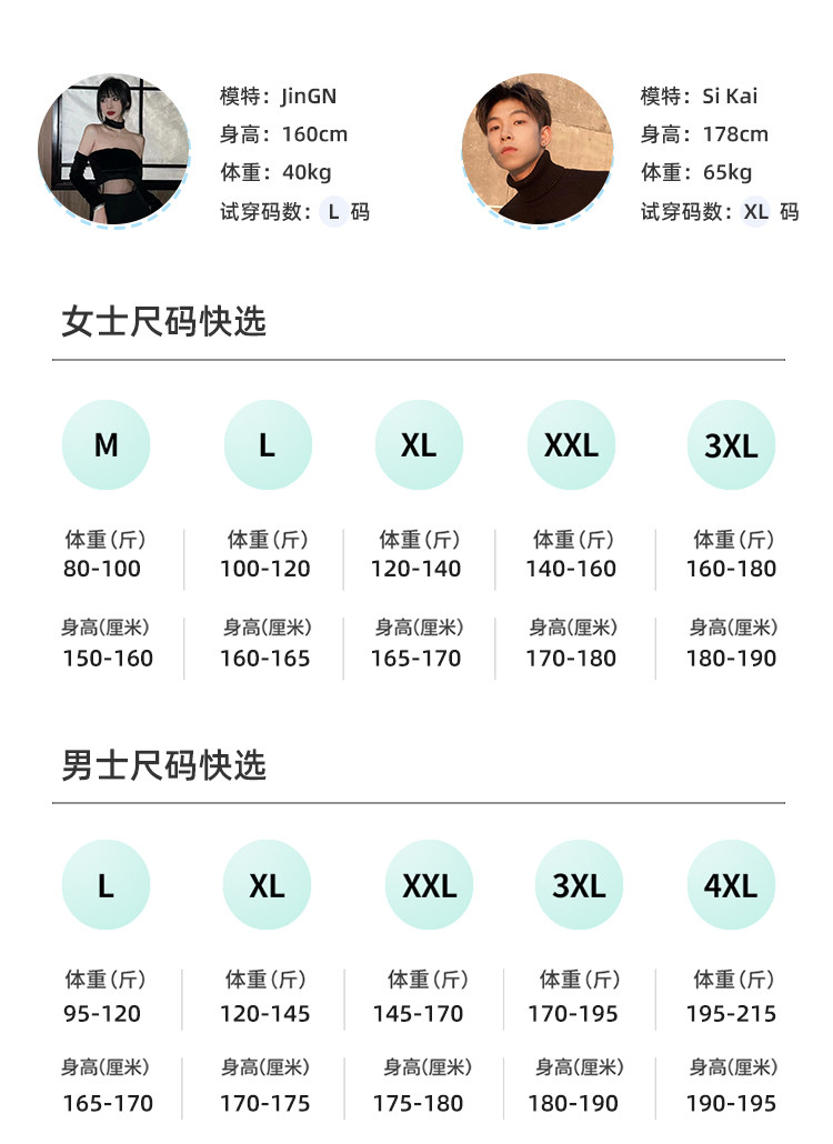 Size M Size Female (Recommended 40-50kg),L Size Female (Recommended 50-60kg),XL Size Female (Recommended 60-70kg),XXL Size Women (Recommended 70-80kg),L Size Male (Recommended 47.5-60kg),XL Size Male (Recommended 60-72.5kg),XXL Size Male (Recommended 72.5-85kg),XXXL Size Male (Recommended 85-97.5kg)