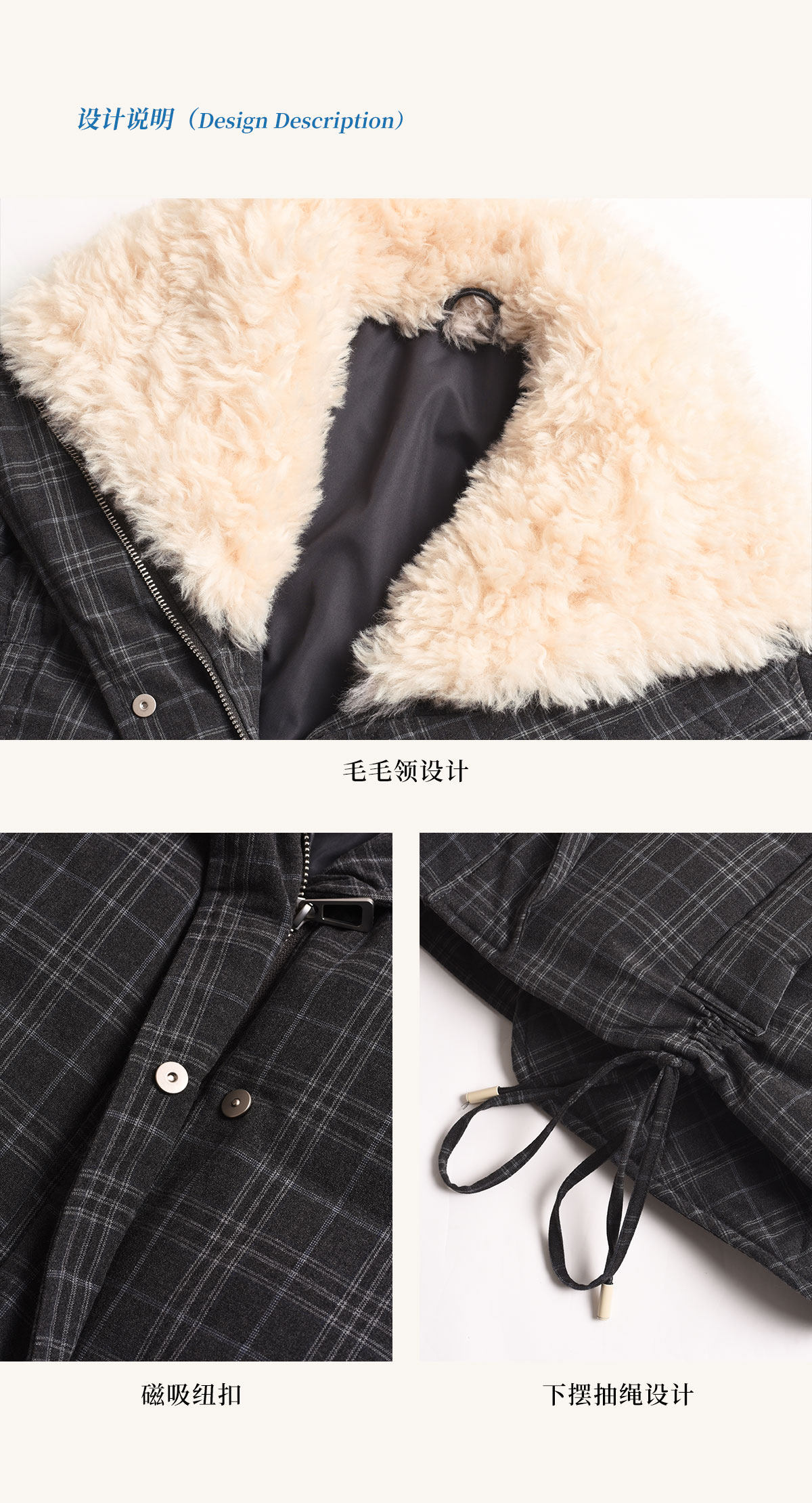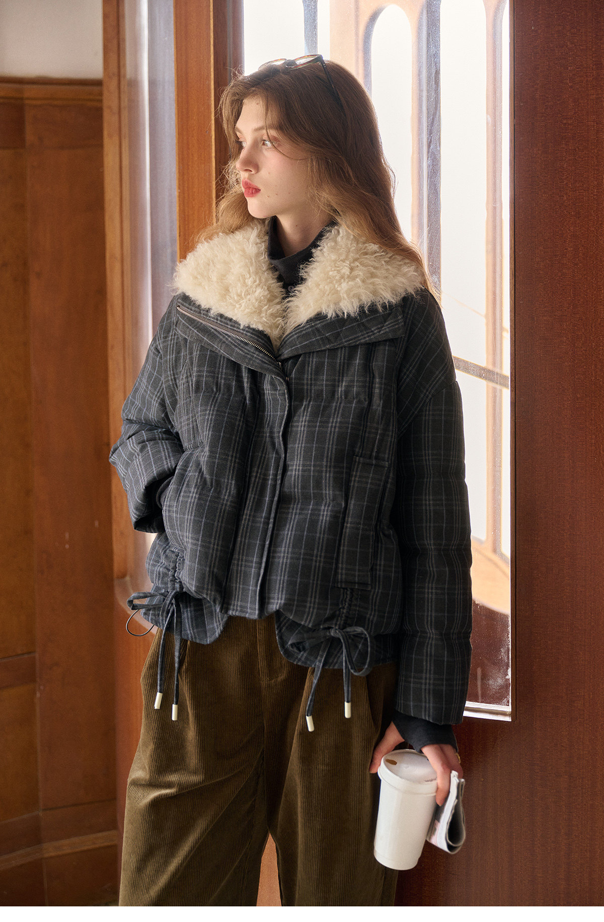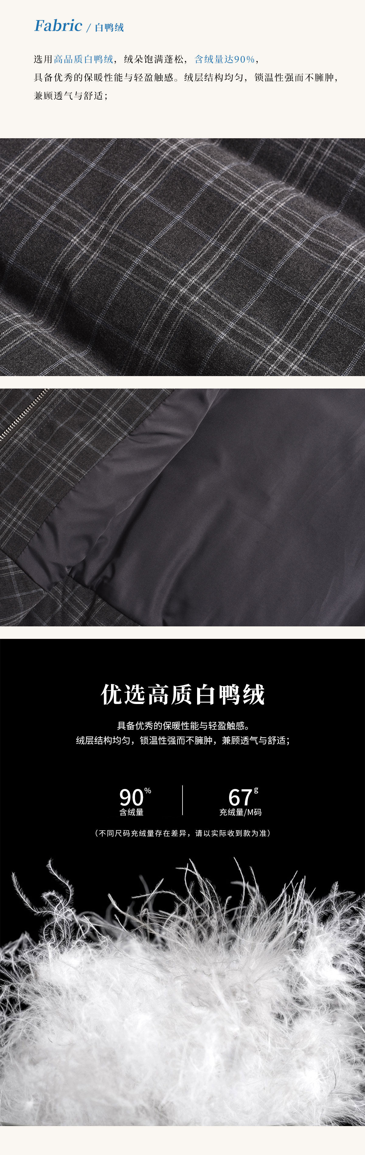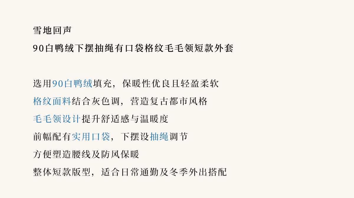 Simpleretro Snow Echo 90 White Duck down Plush Large Lapel Short Plaid down Jacket for Women Winter