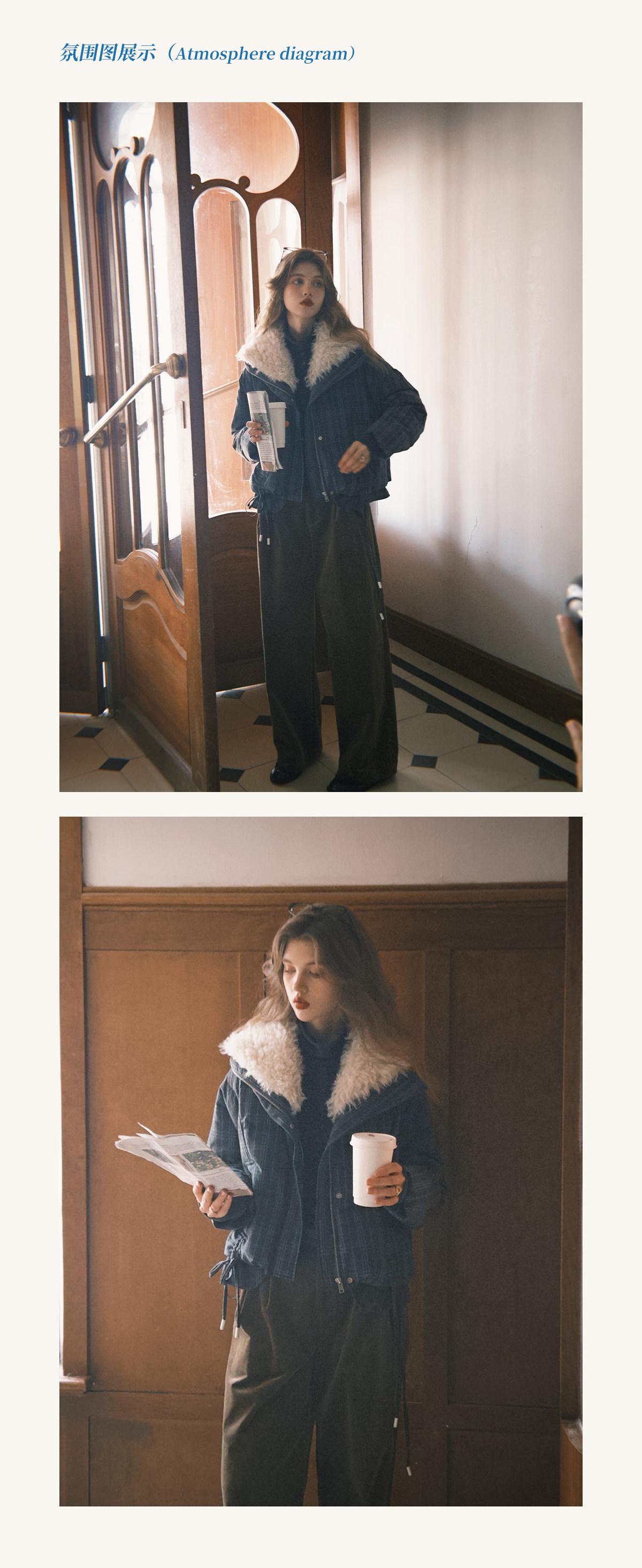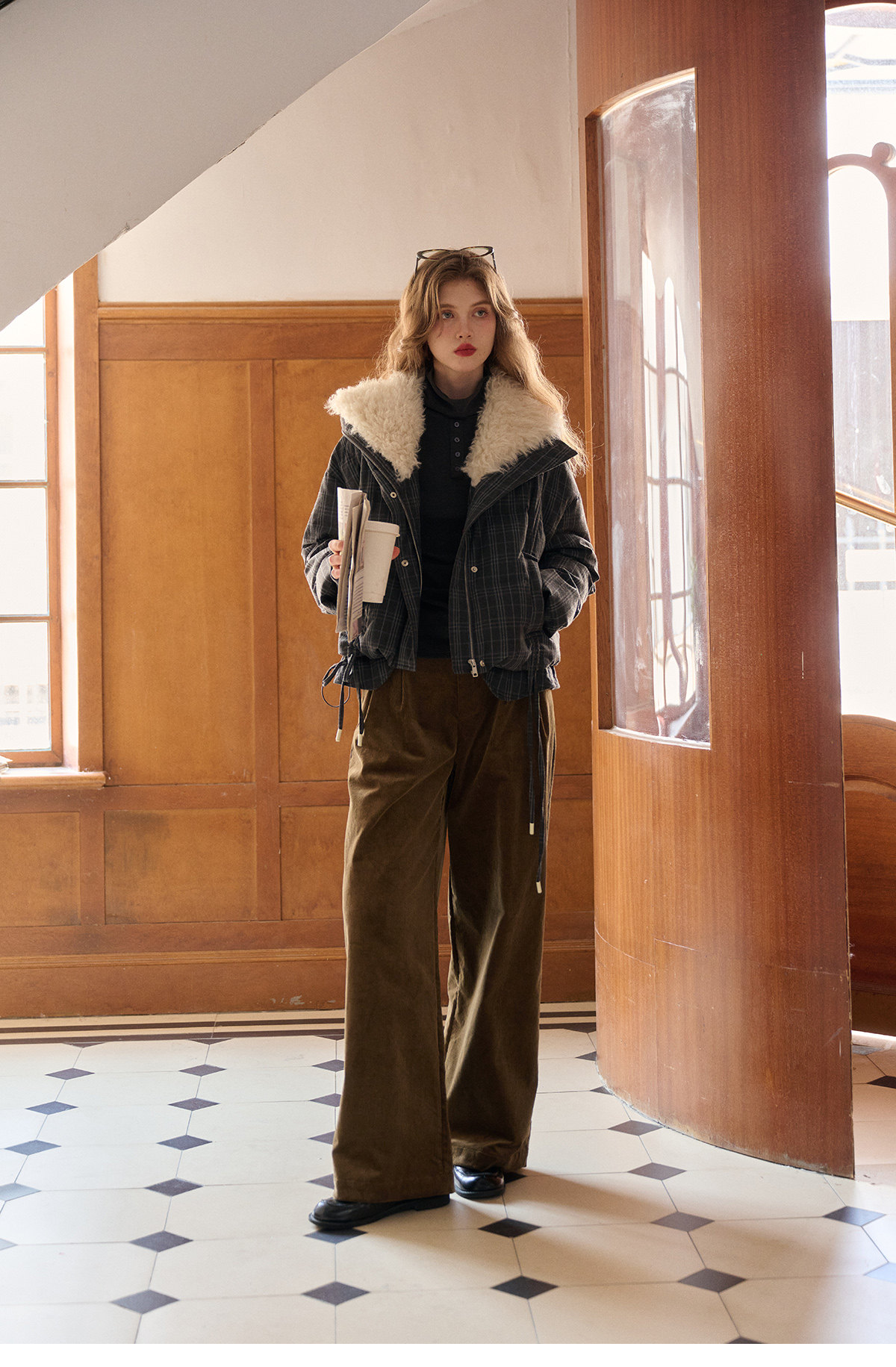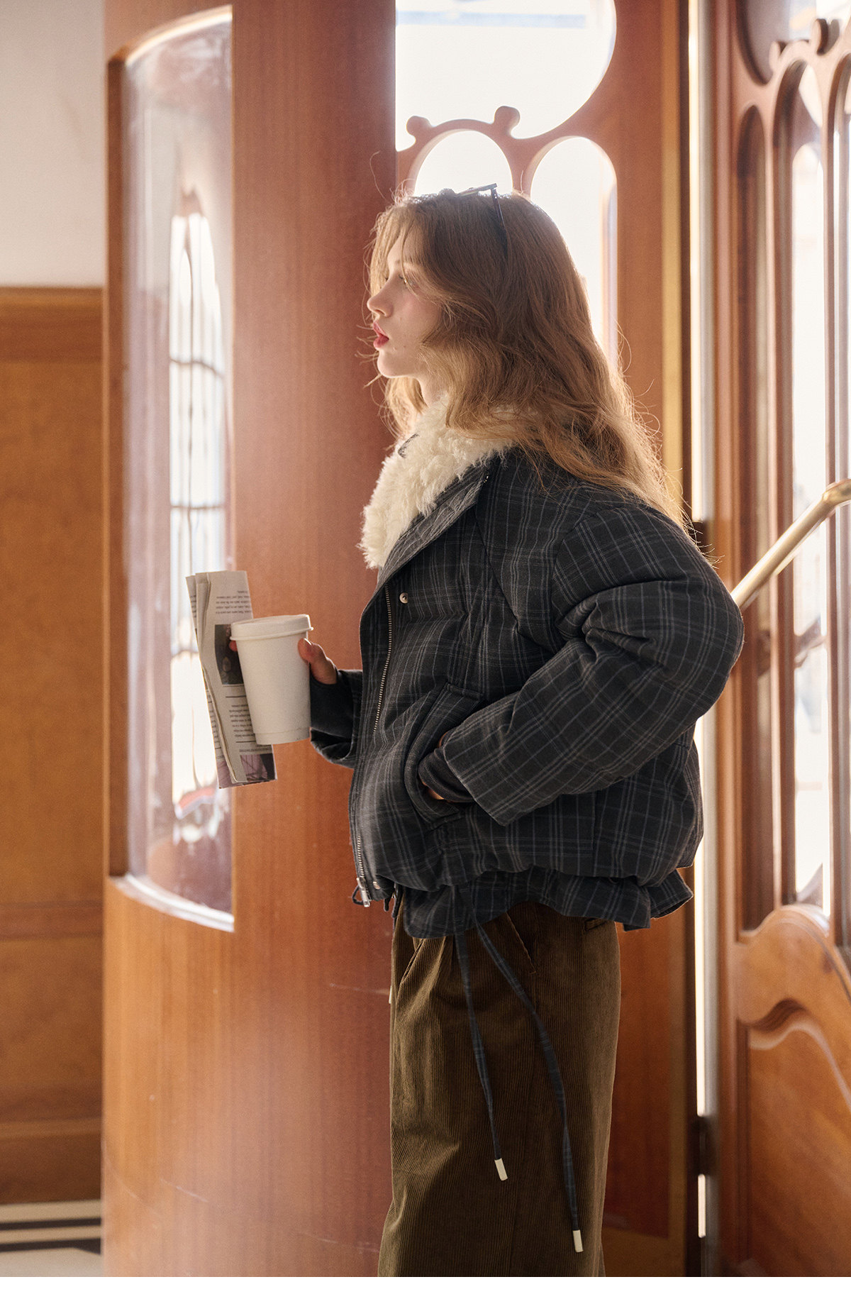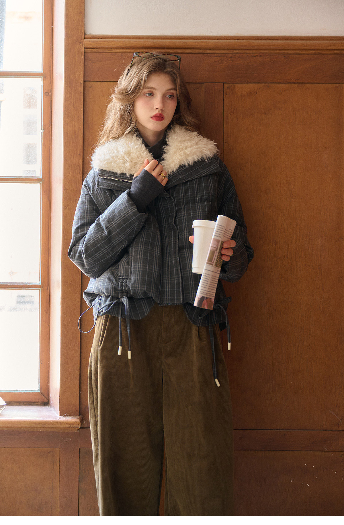 Simpleretro Snow Echo 90 White Duck down Plush Large Lapel Short Plaid down Jacket for Women Winter