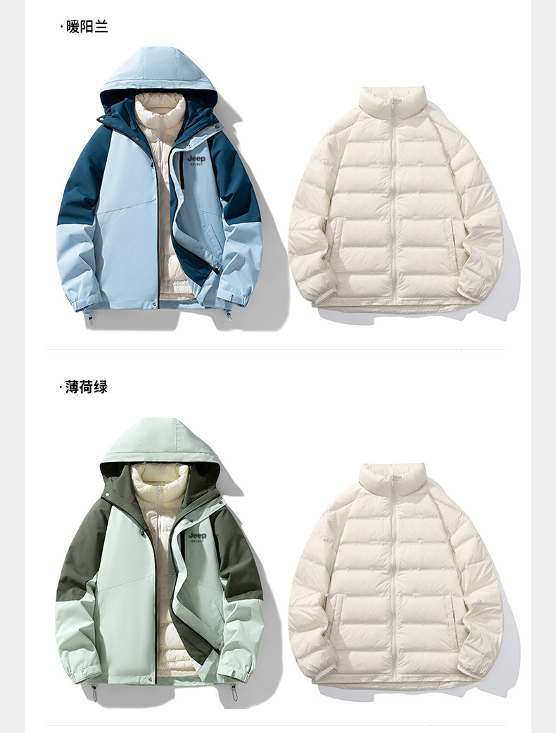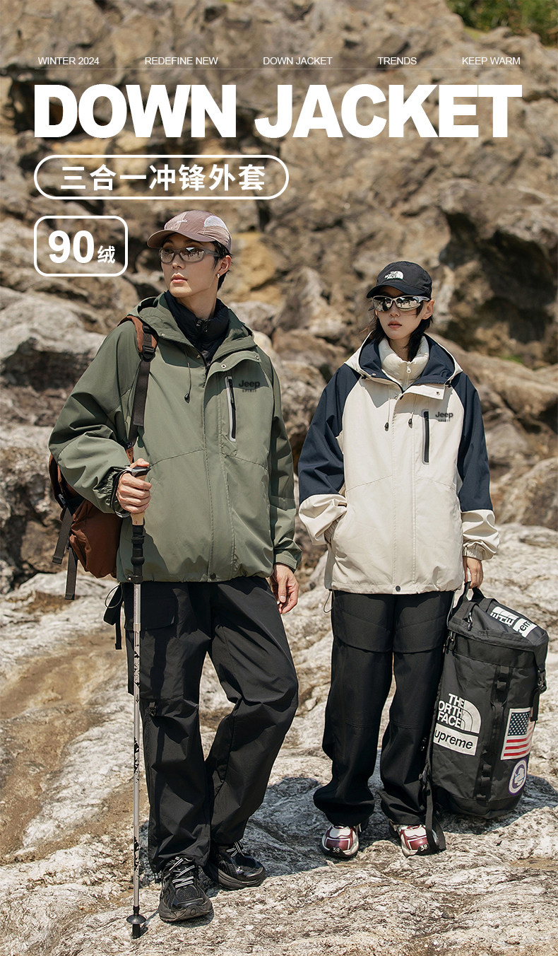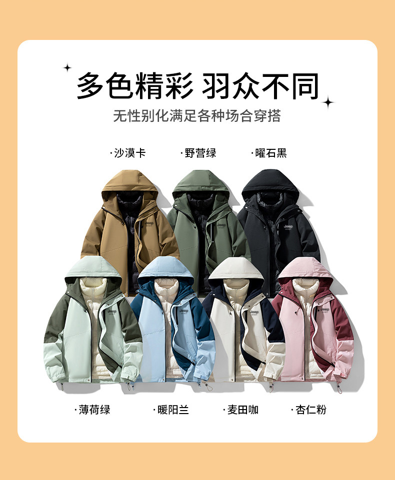 Уличная пуховая куртка Jeep для мужчин и женщин осенью и зимой, модные пуховые куртки с подкладкой «три в одном» для пар