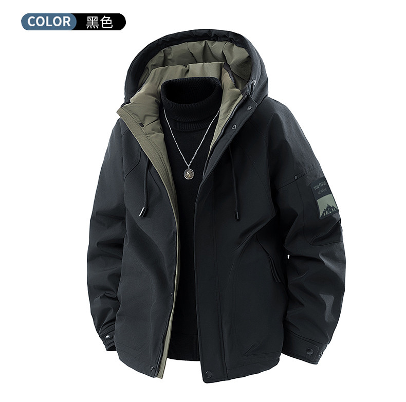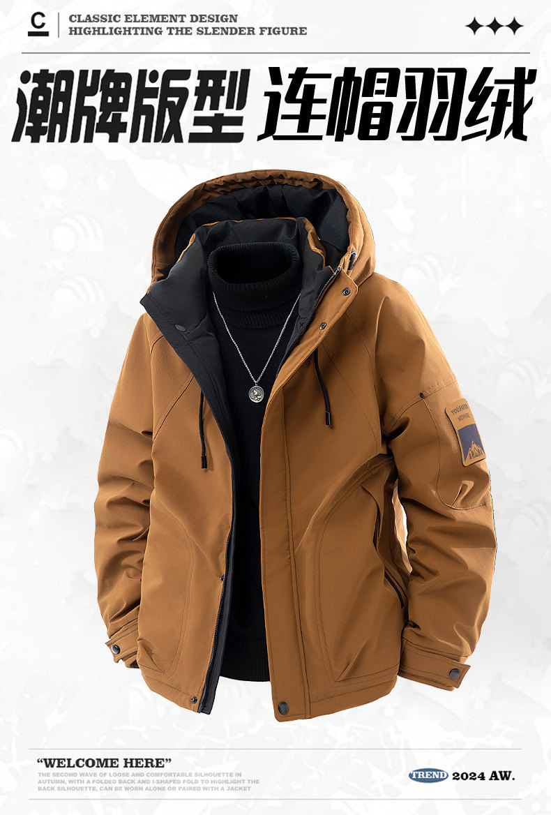 Woodpecker Hooded down Jacket for Men, Short Style, 2026 Winter New Model, Loose Fit, Workwear, Thickened, Warm, Outdoor Jacket K