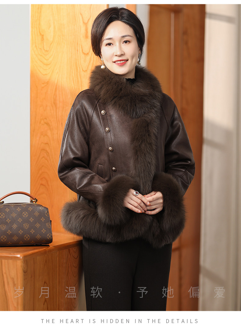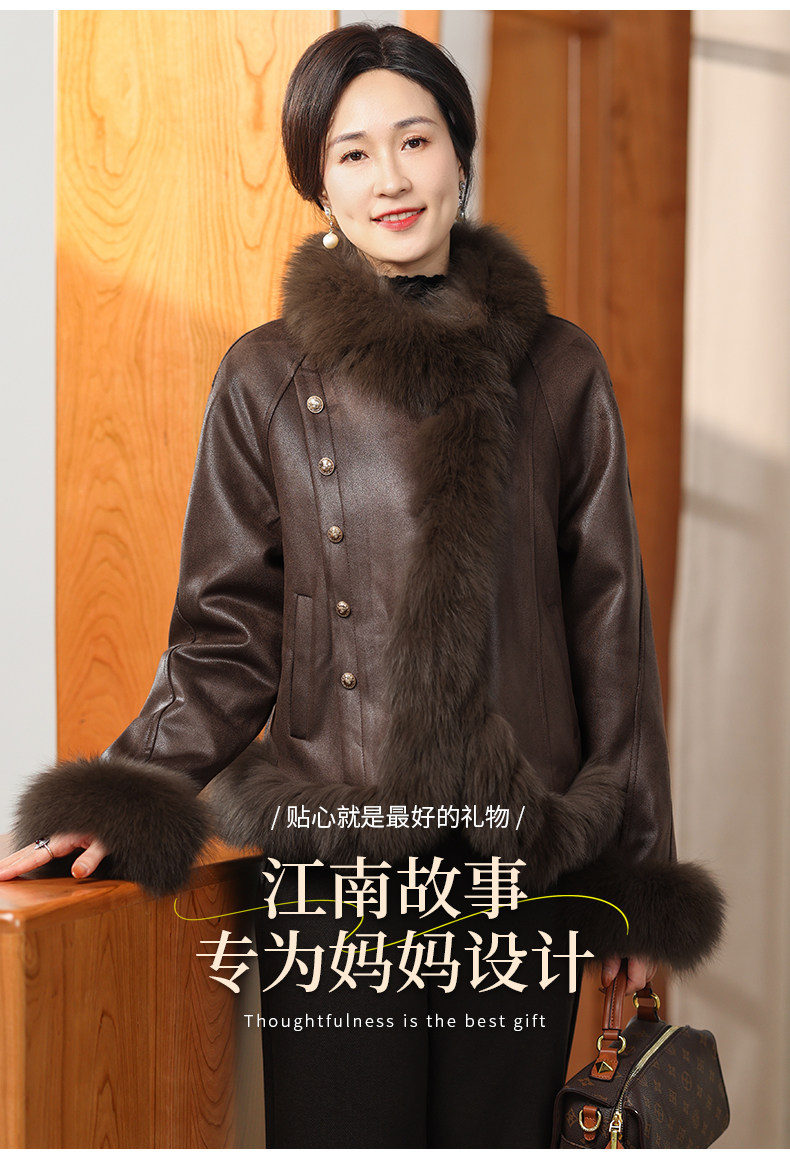 Jiangnan Story Mom's Herbst- und Winter-Fuchspelz-Daunenjacke, leichte, luxuriöse, warme und modische Jacke
