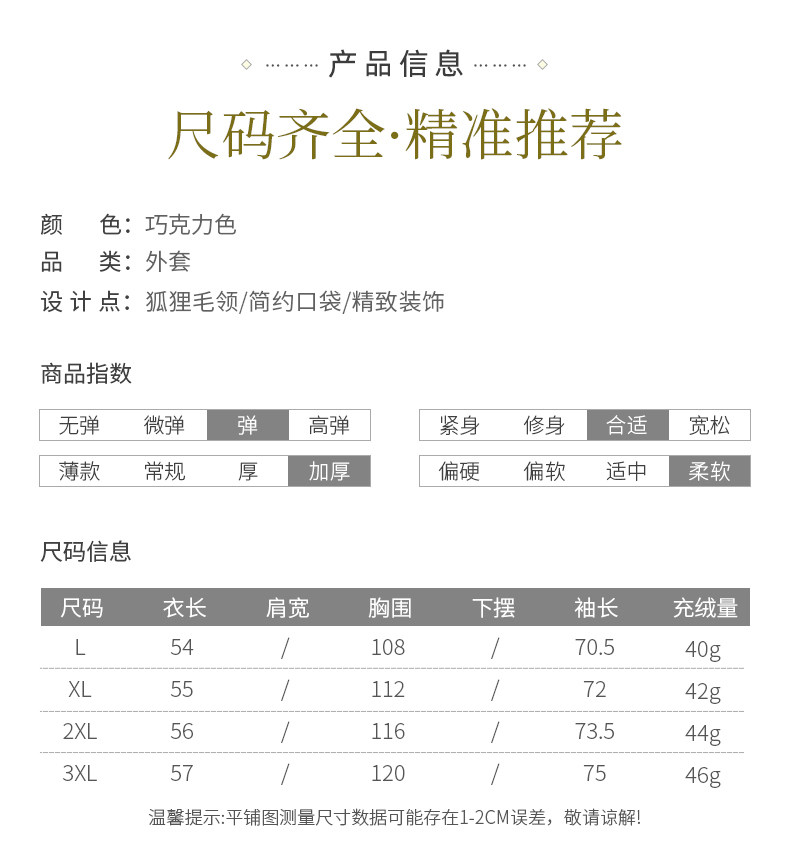 Klassifizierung der Damenbekleidung mittleren und älteren Alters Daunenjacke