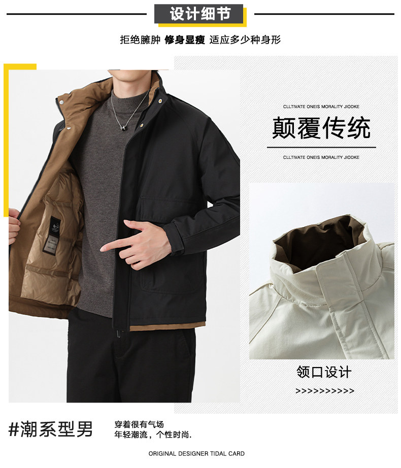 Woodpecker Stand-Up Collar down Jacket for Men, Winter 2025 New Model, White Duck Down, Warm Casual Workwear Top K
