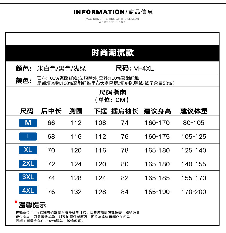 China (cm) 165 / 88-90 170 / 96-98 175 / 108-110 180 / 118-122 185 / 126-130