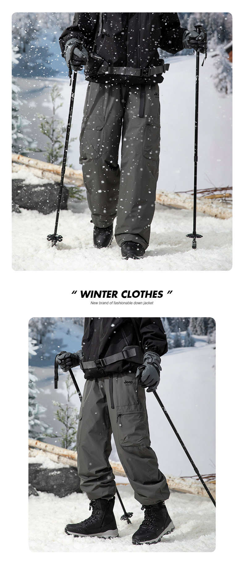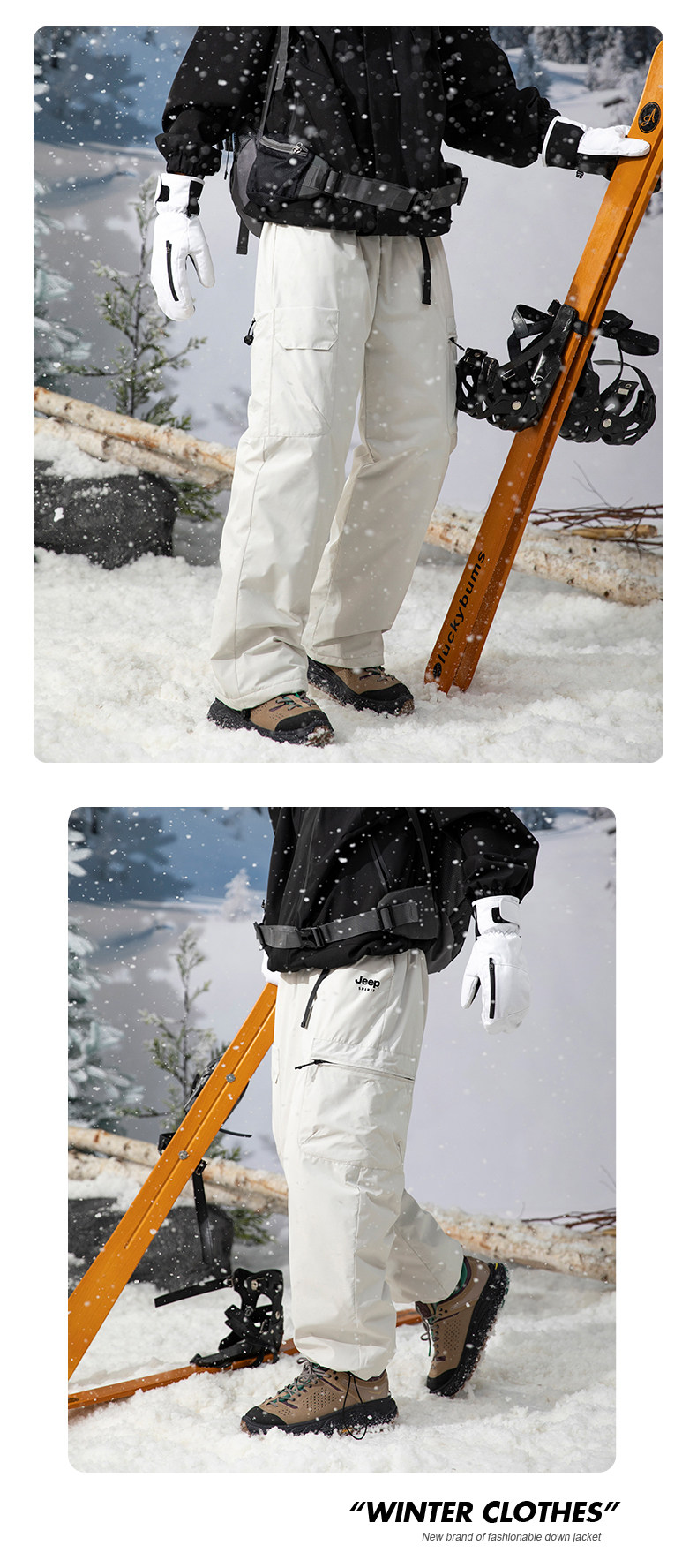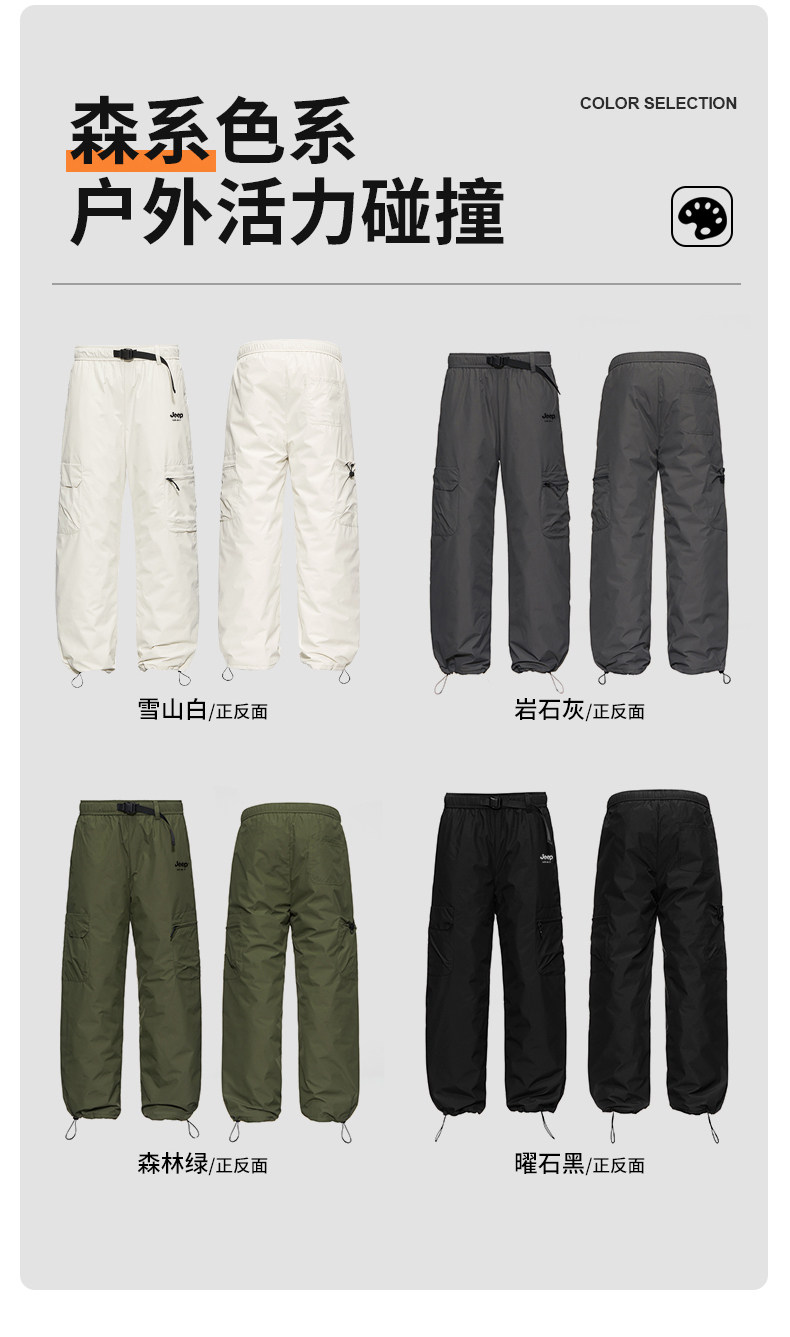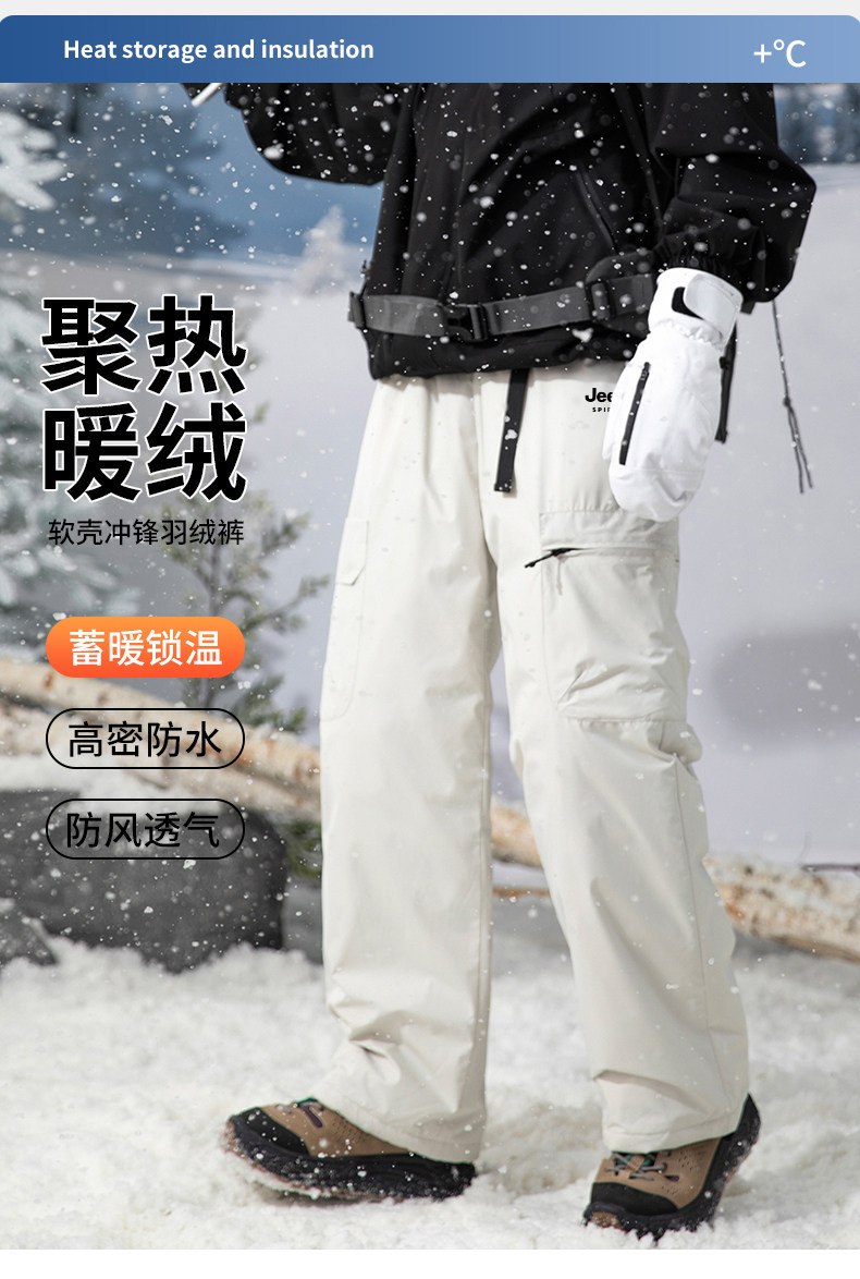 Jeep white duck down soft shell assault down pants for men and women in winter - 40 degrees extreme cold Northeast workwear ski pants