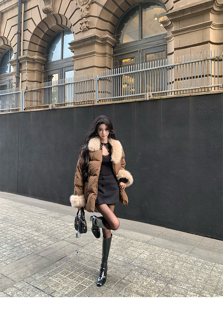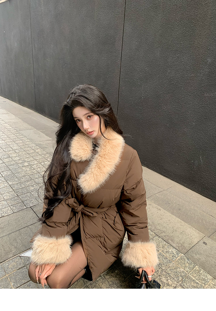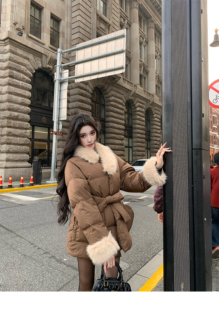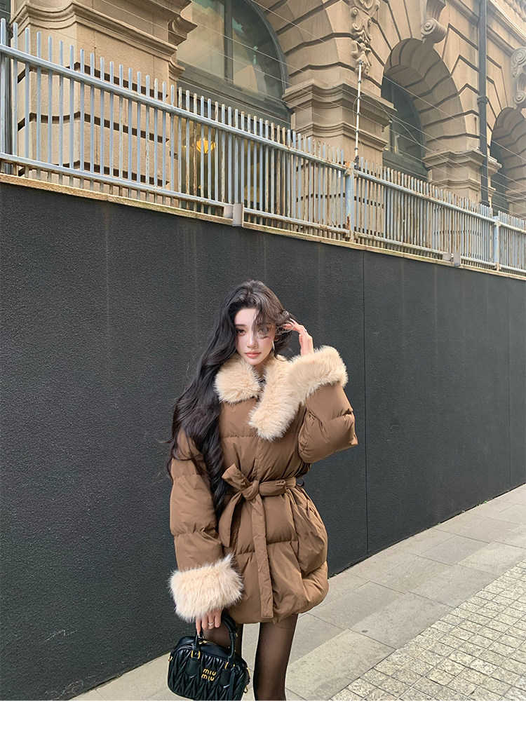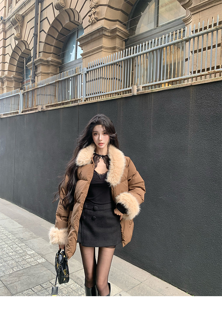 Barb Chill Retro 90 Weiße Entendaunenjacke für Damen, Winter, gespleißter Pelzkragen, lockere mittellange Jacke