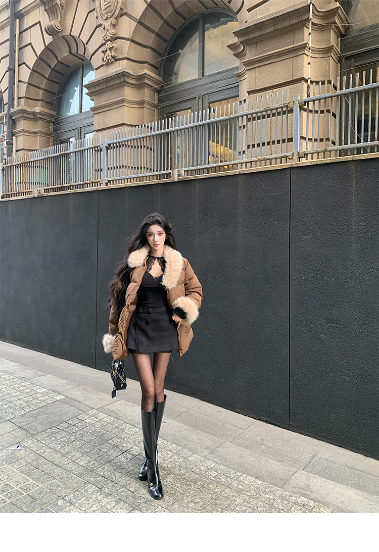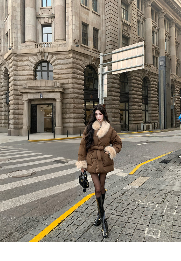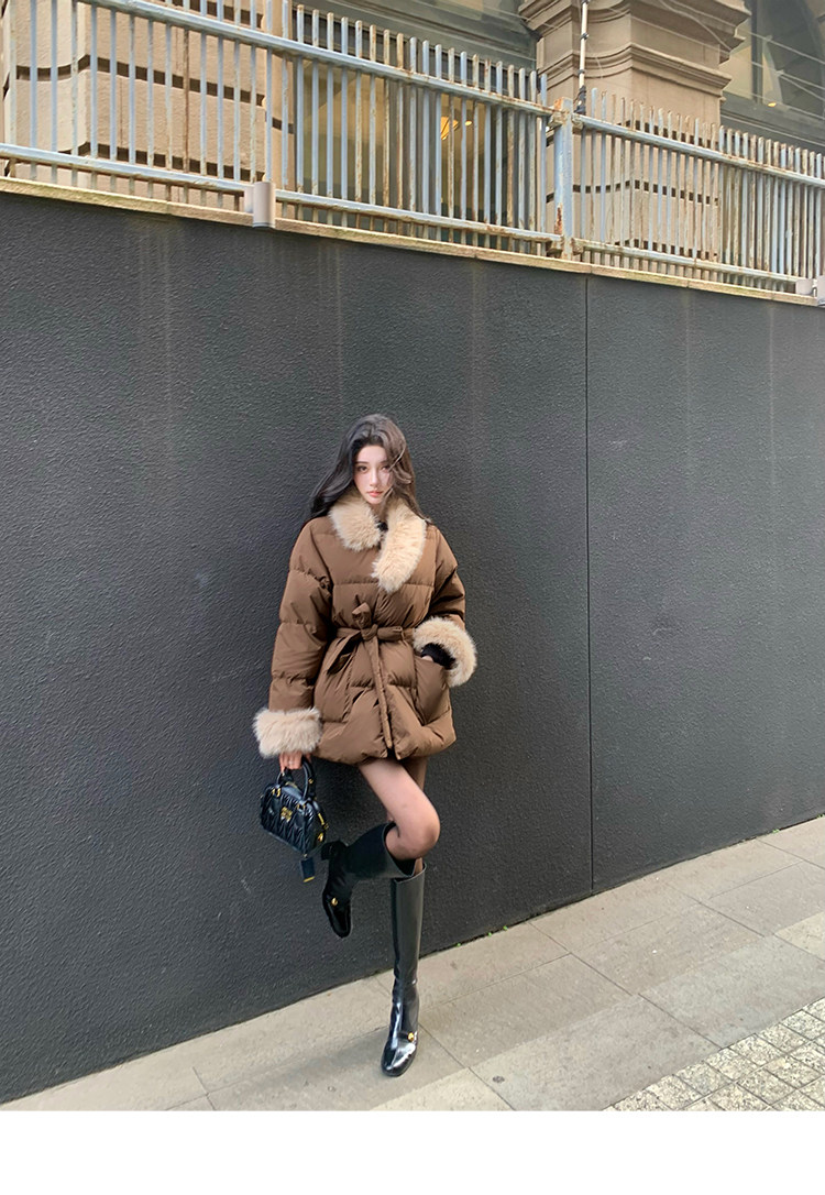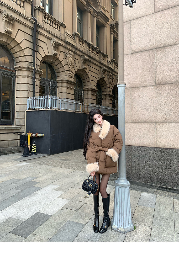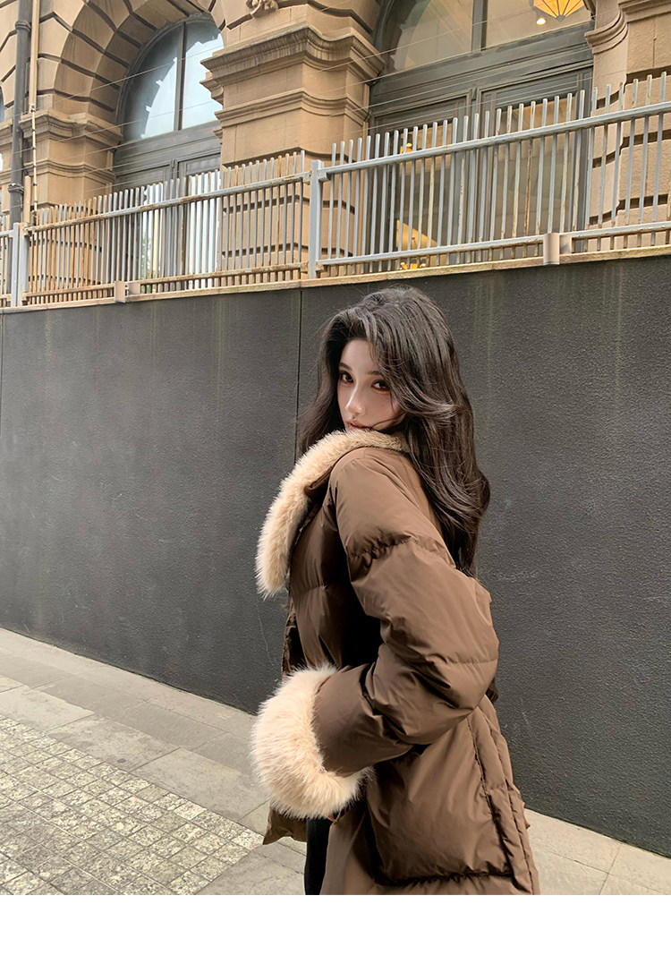 Barb Chill Retro 90 Weiße Entendaunenjacke für Damen, Winter, gespleißter Pelzkragen, lockere mittellange Jacke