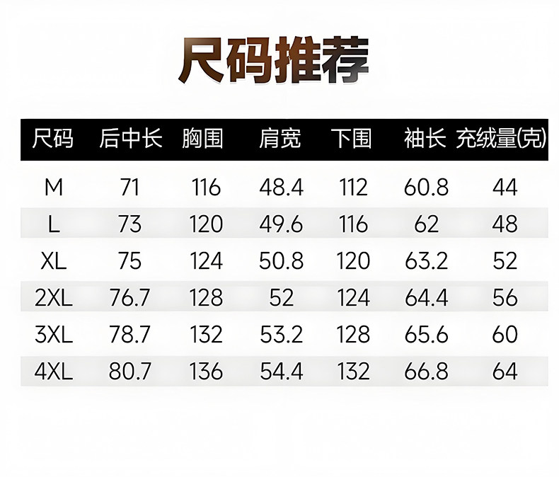 China (cm) 165 / 88-90 170 / 96-98 175 / 108-110 180 / 118-122 185 / 126-130