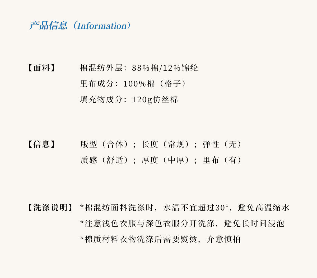 内胆类型 棉内胆