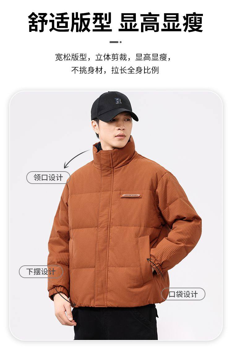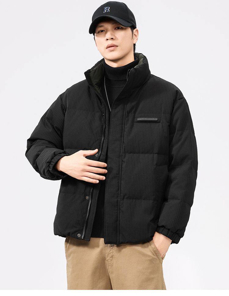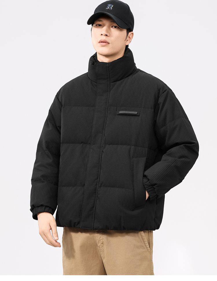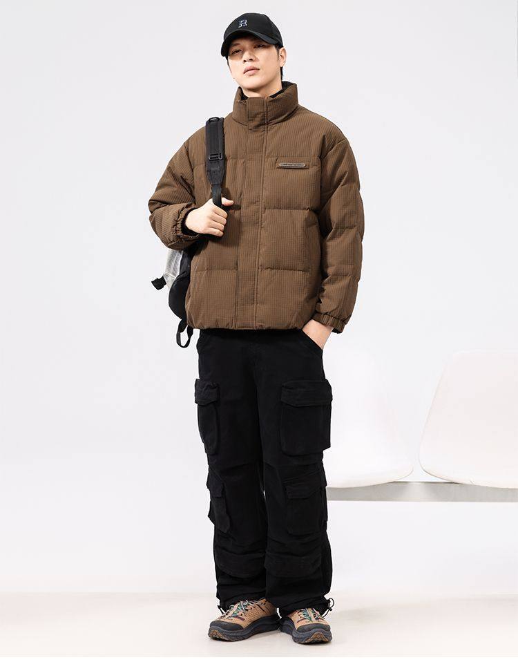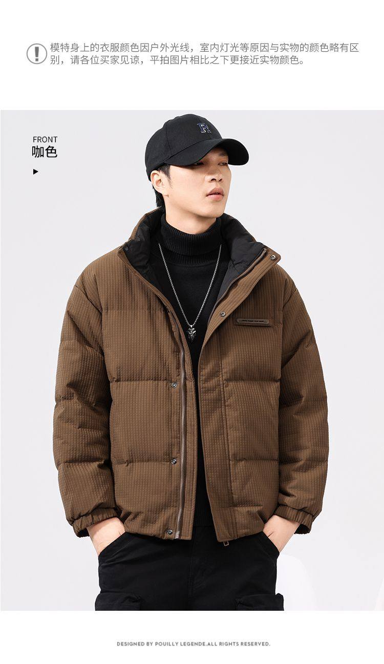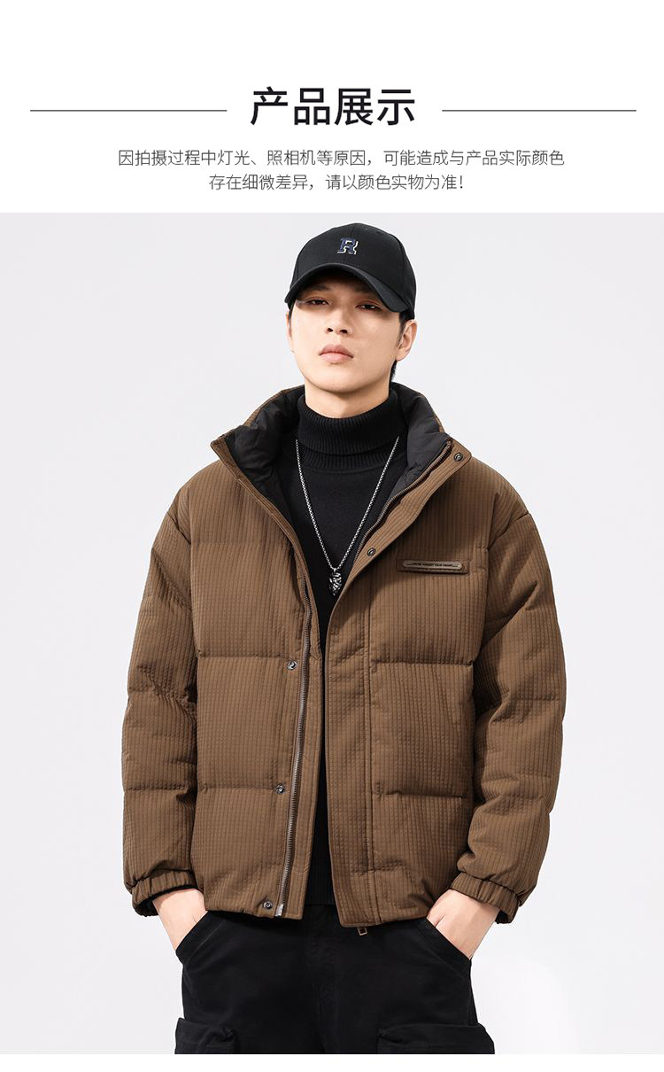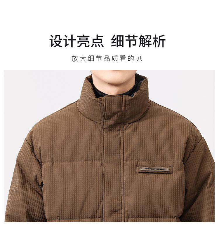 啄木鸟羽绒服男冬季2025新款肌理感立领加绒加厚面包服休闲外套K