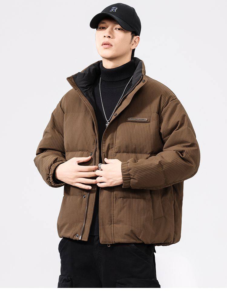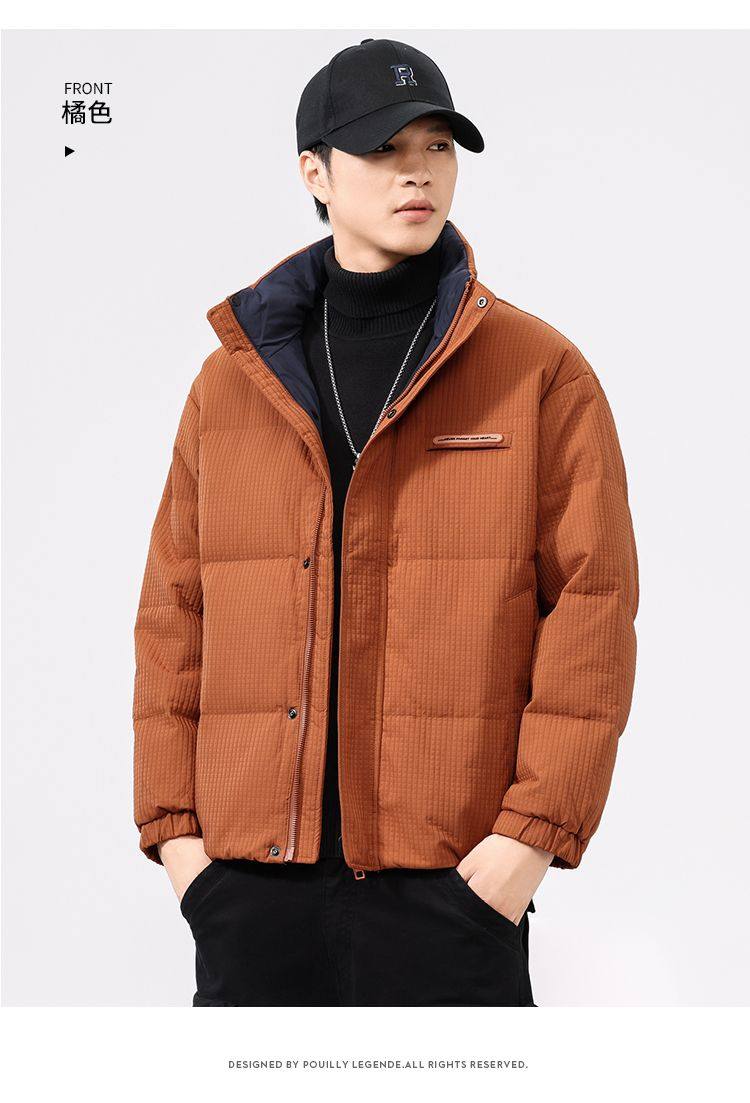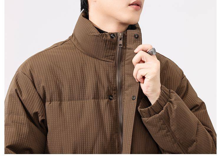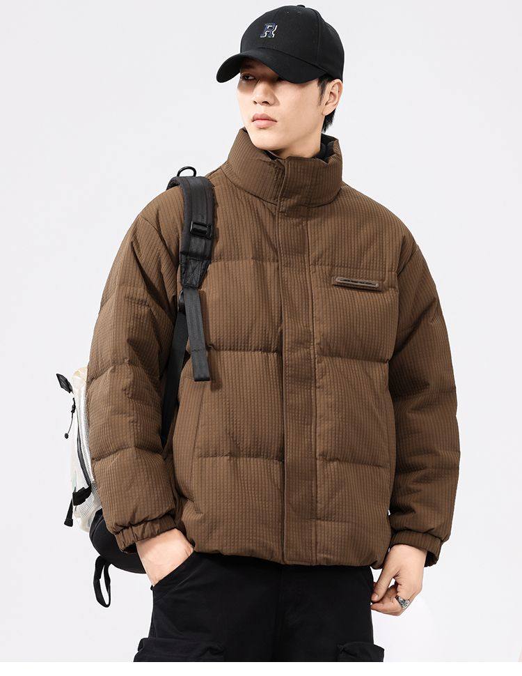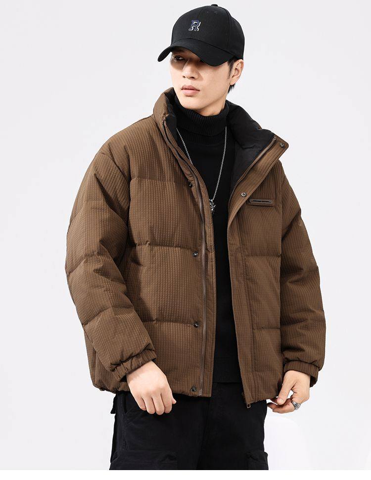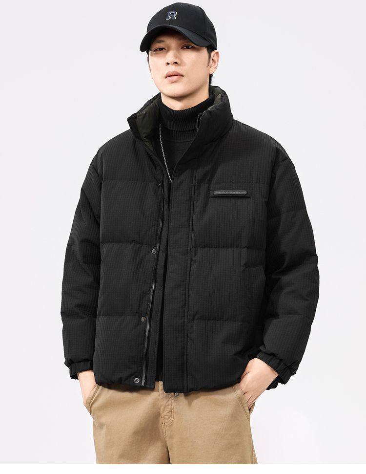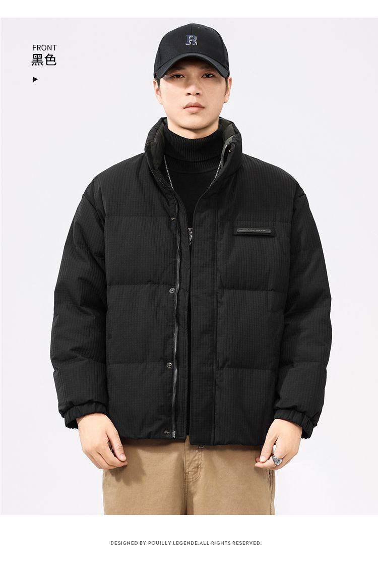 啄木鸟羽绒服男冬季2025新款肌理感立领加绒加厚面包服休闲外套K