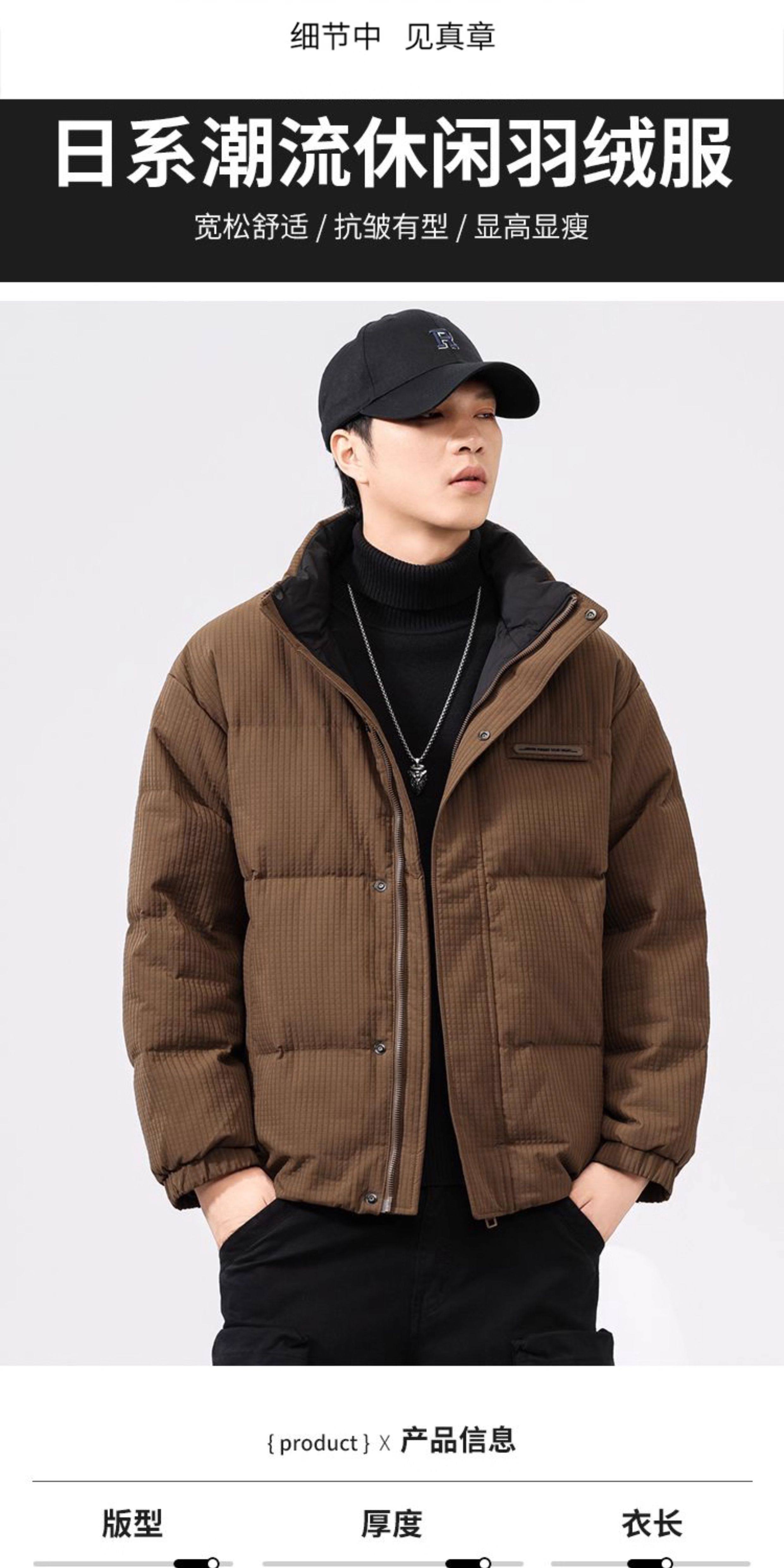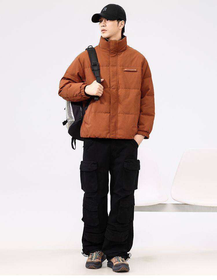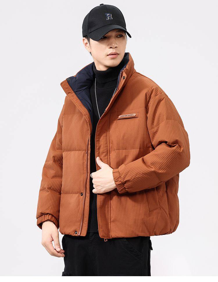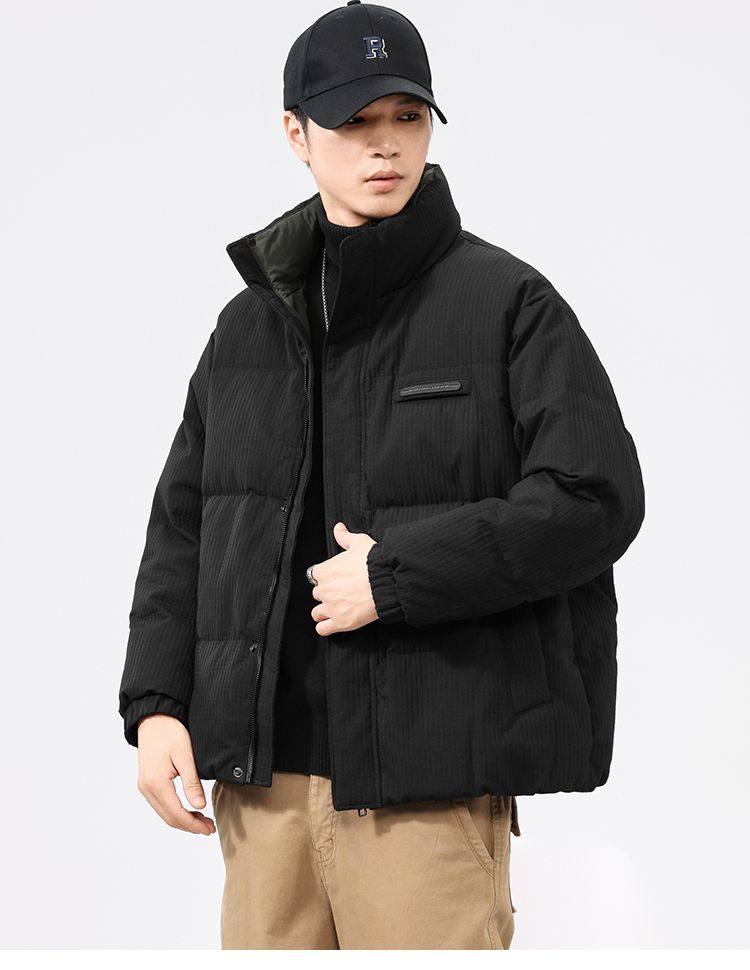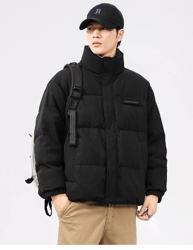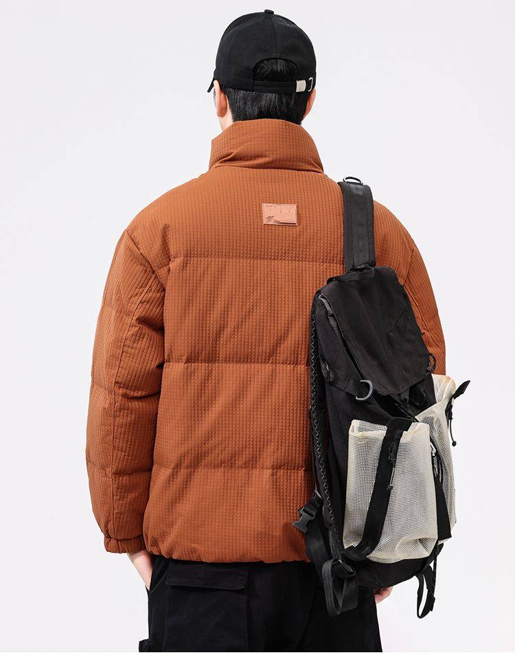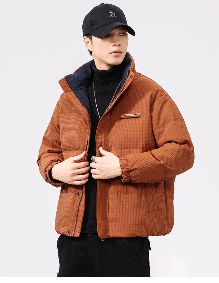 啄木鸟羽绒服男冬季2025新款肌理感立领加绒加厚面包服休闲外套K