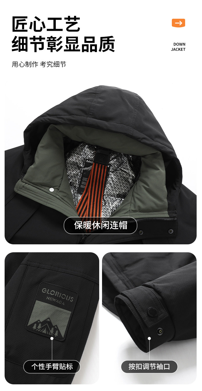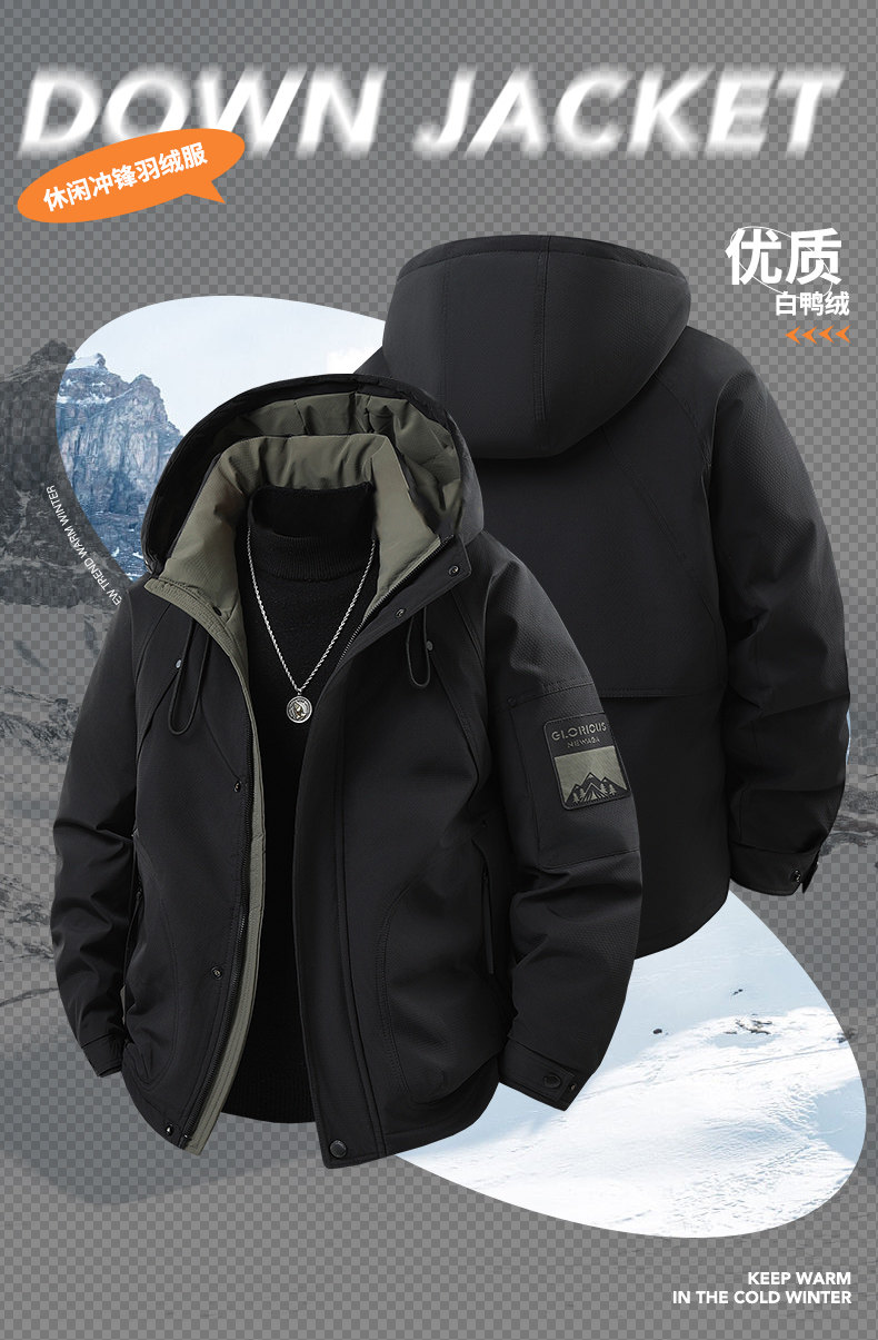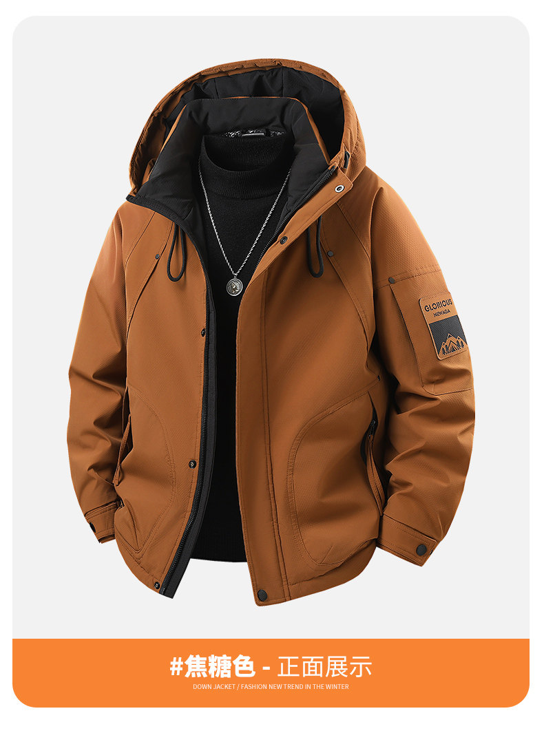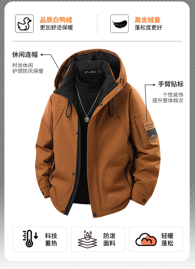 Woodpecker Daunenjacke mit Kapuze für Herren 2025 Winter neue lose Outdoor-Arbeitskleidung Entendaunen verdickte Angriffsjacke K