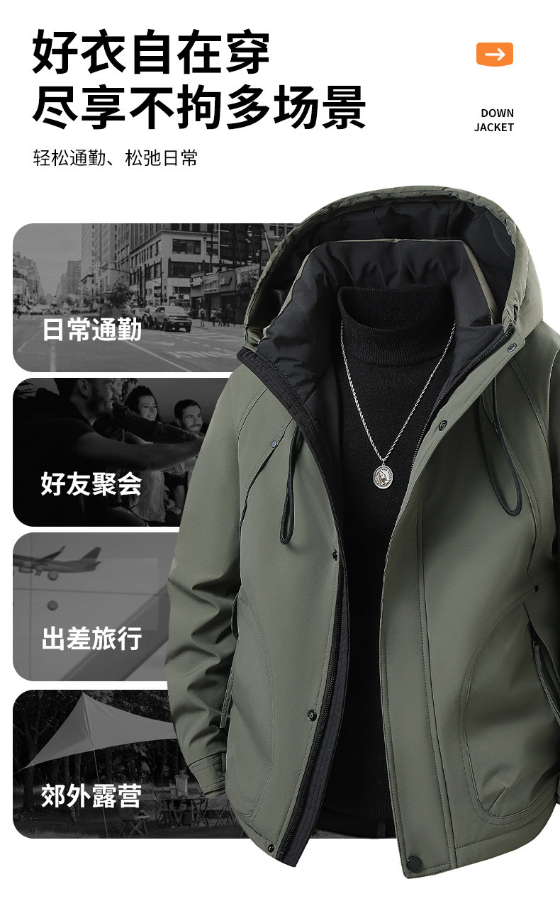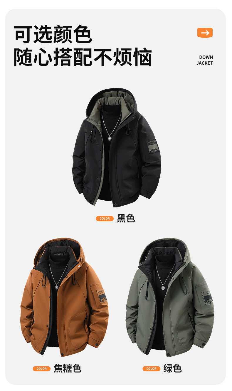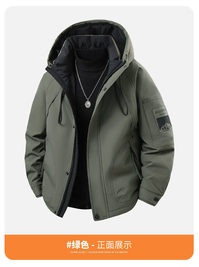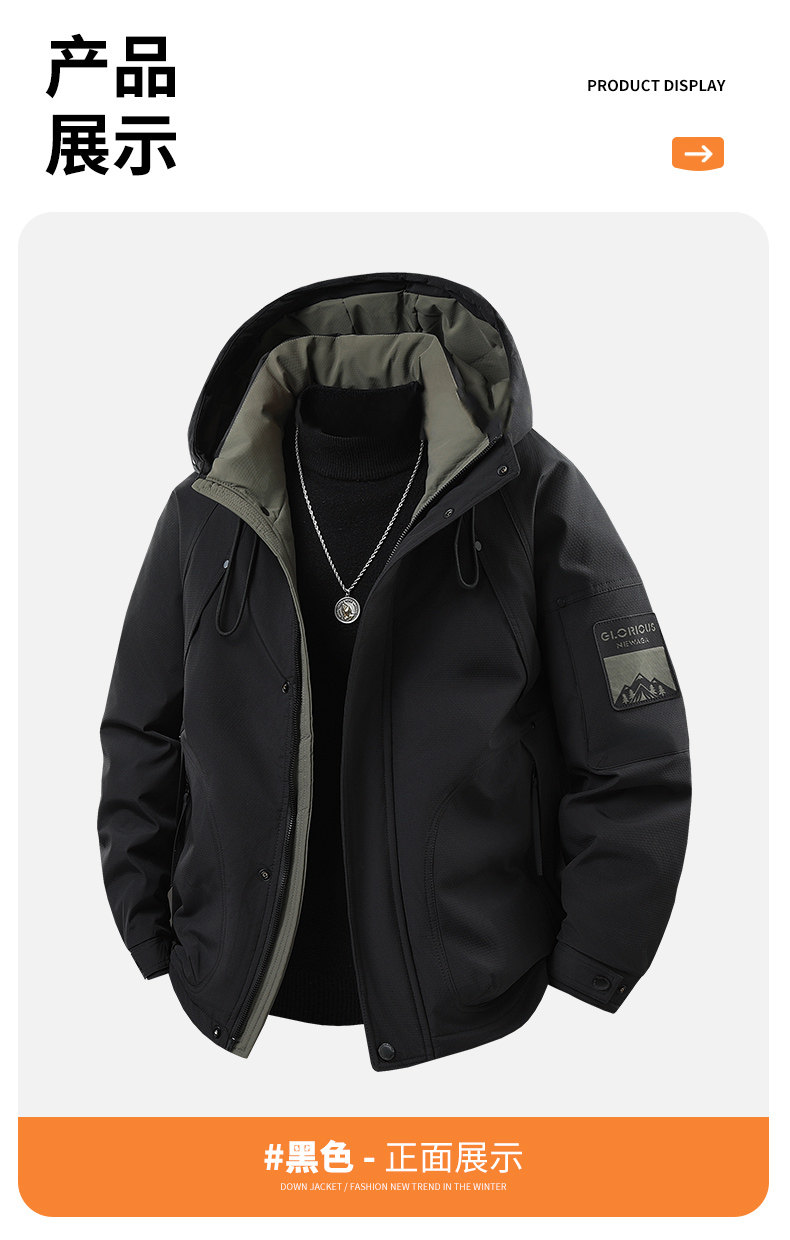 Woodpecker Daunenjacke mit Kapuze für Herren 2025 Winter neue lose Outdoor-Arbeitskleidung Entendaunen verdickte Angriffsjacke K