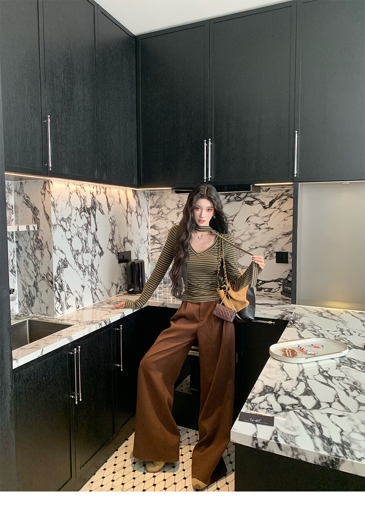 Barb Chill Retro Coffee-Colored Wide-Leg Pants for Women 2025 Winter Old Money Style High-Waisted Slimming Loose Casual Straight Pants