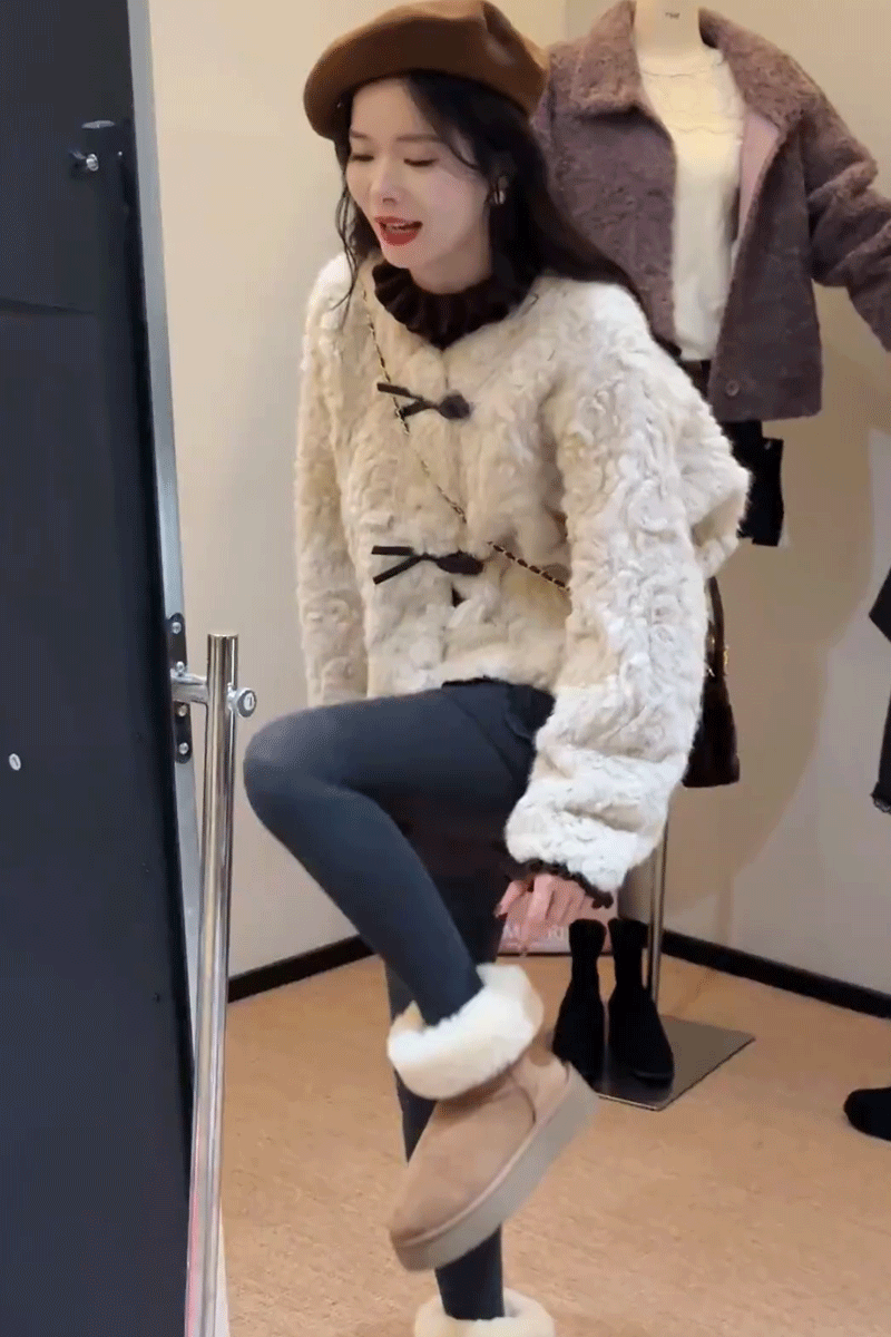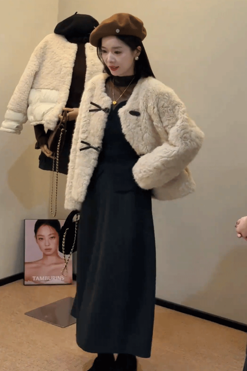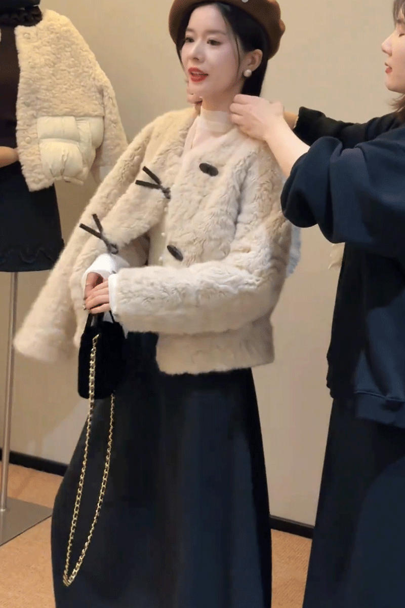 2025 Winter New Korean Style Lazy Style Lamb Wool Short Coat for Petite Women, Age-Reducing Furry Warm Top
