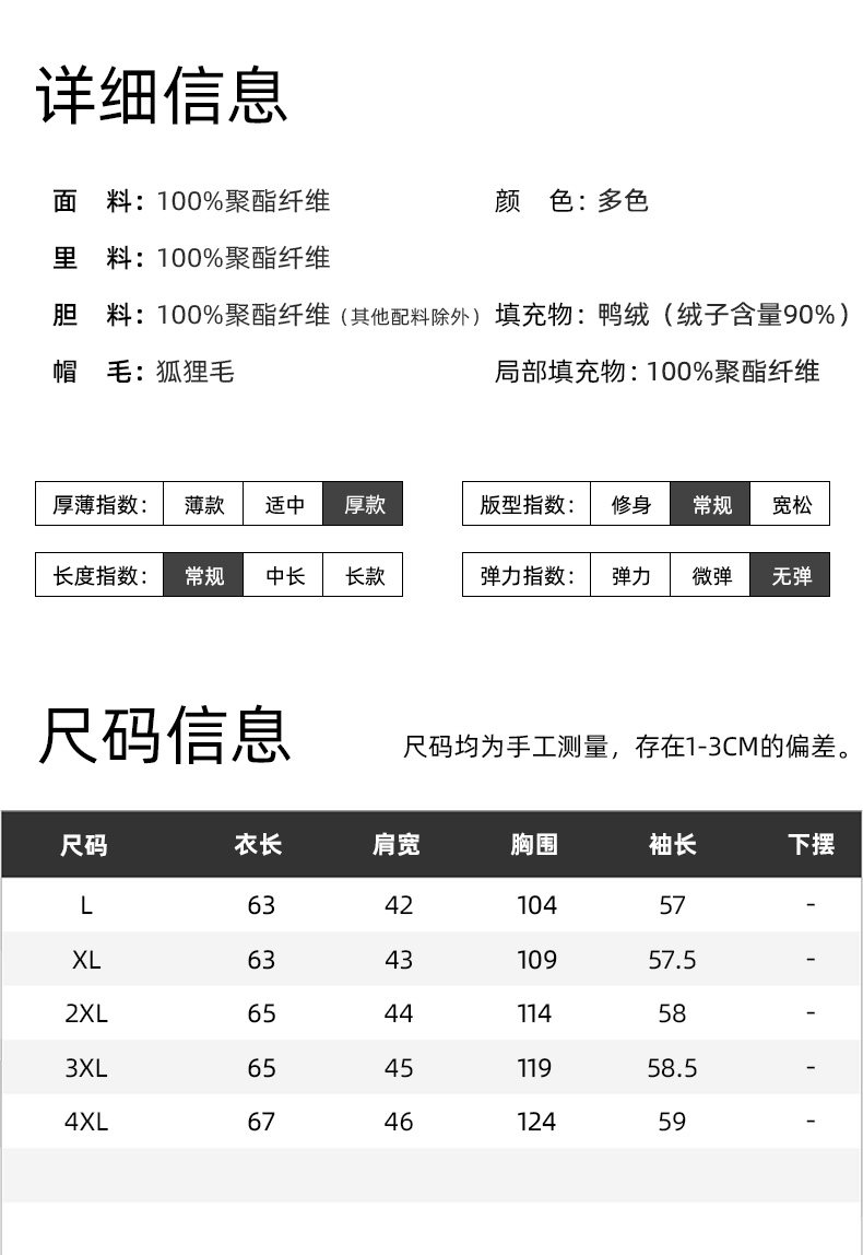 充绒量(g) 100-150g