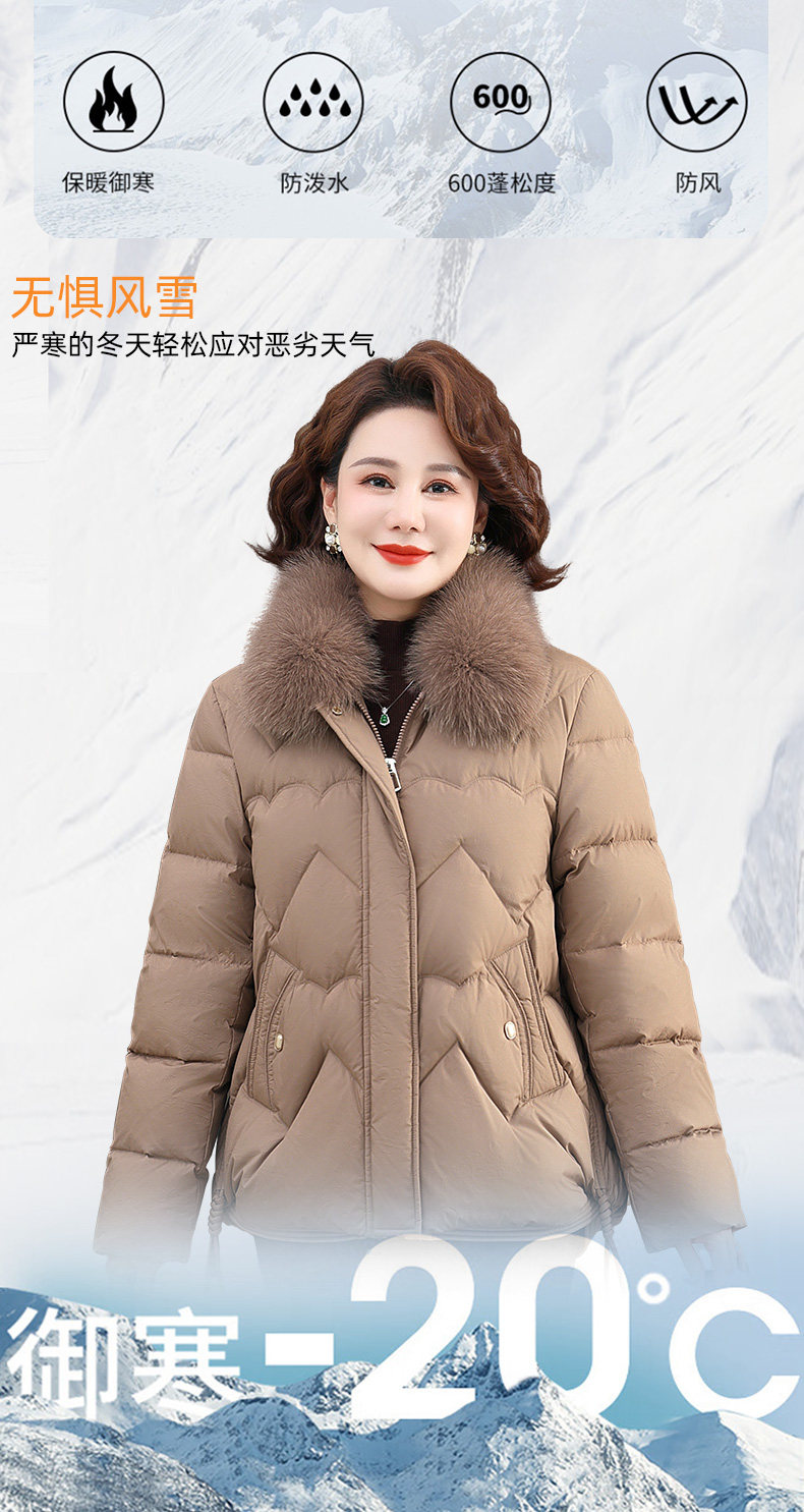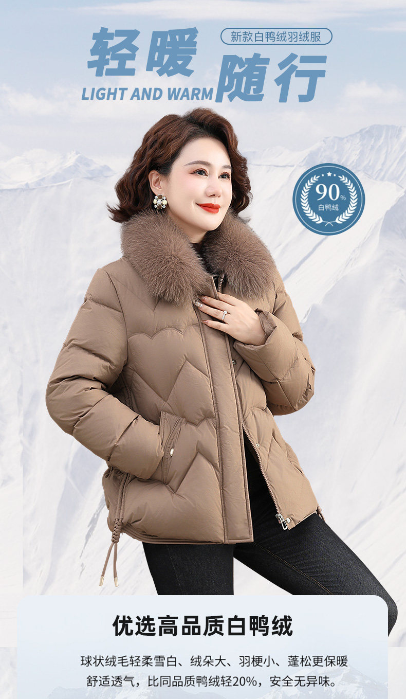 啄木鸟女士羽绒服冬季2025新款短款显瘦小个子妈妈狐狸毛领外套N