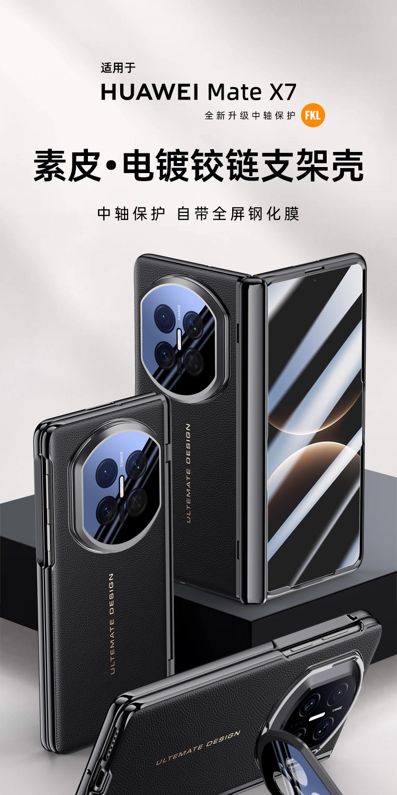 Suitable for Huawei Matex7 Phone Case, New X7 Collector's Edition Foldable Screen Protective Cover, Genuine Leather, Mate Lens Bracket, Hinge, 2026 Central Axis, Full Coverage, Ultra-Thin, Anti-Drop, Integrated Tempered Film Q