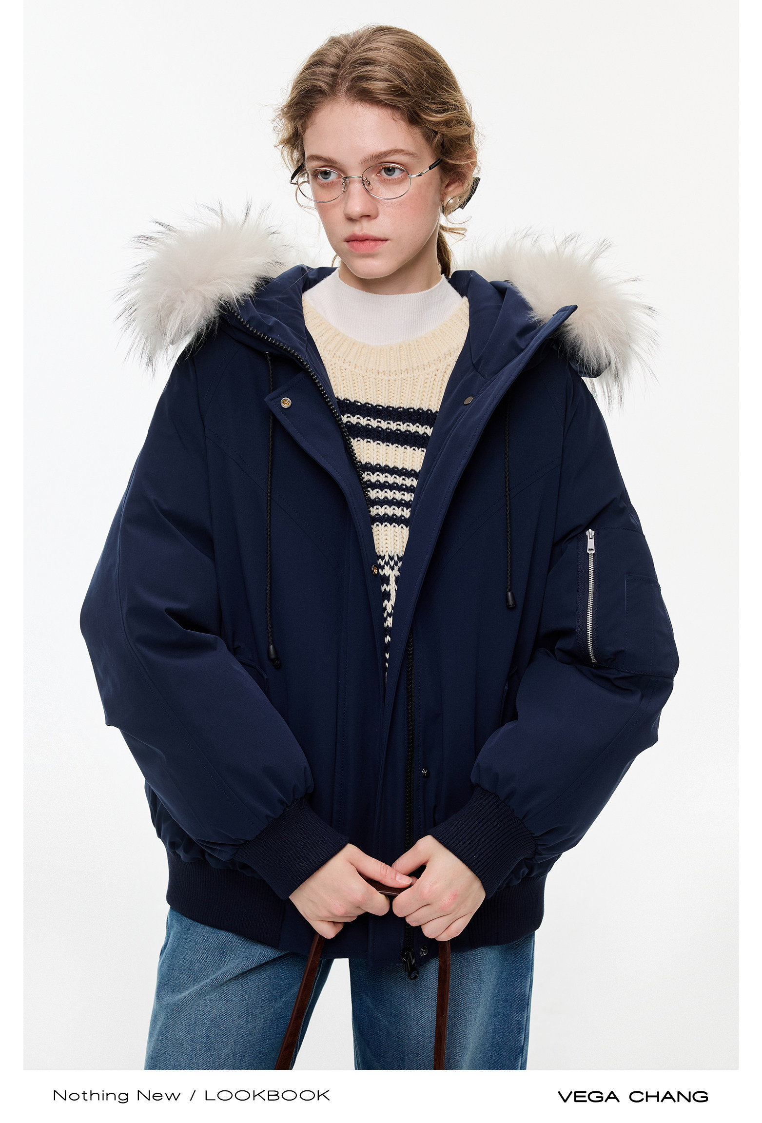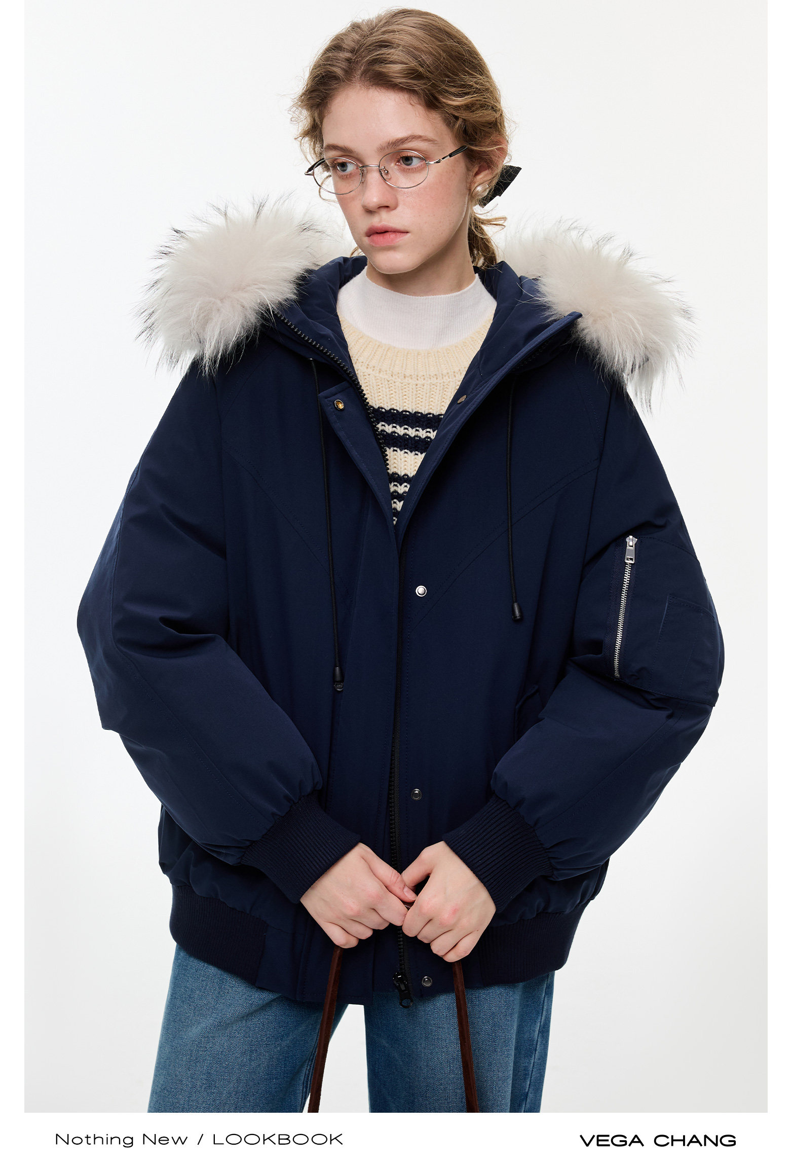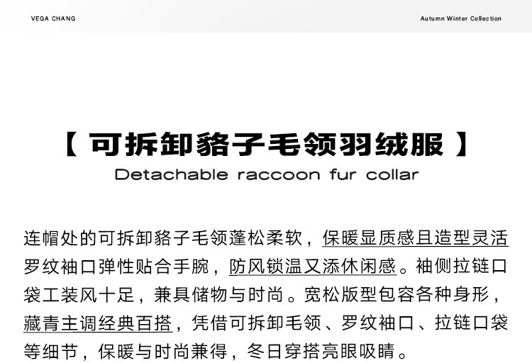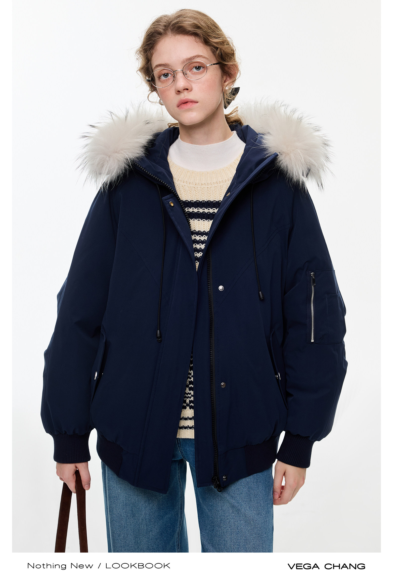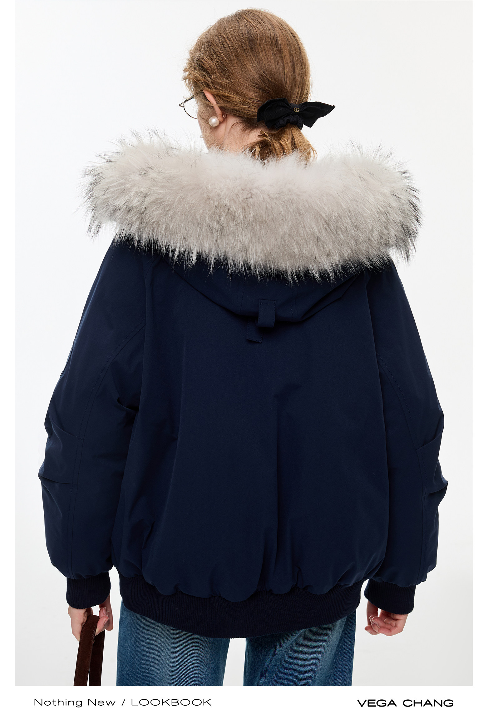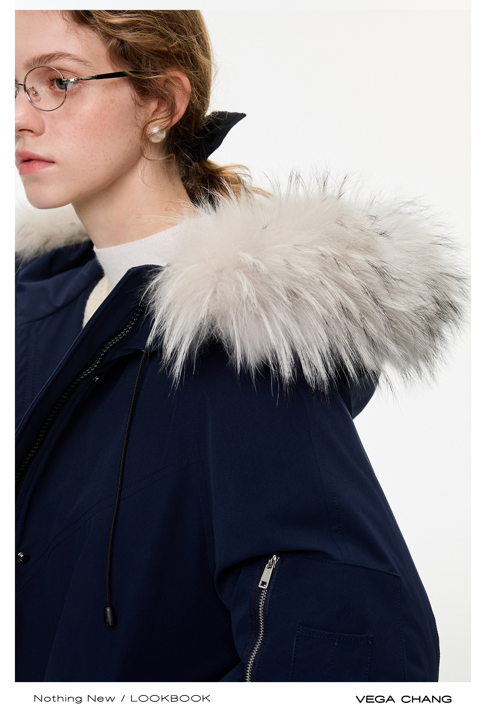 VEGA CHANG removable raccoon fur collar down jacket women's winter warm jacket
